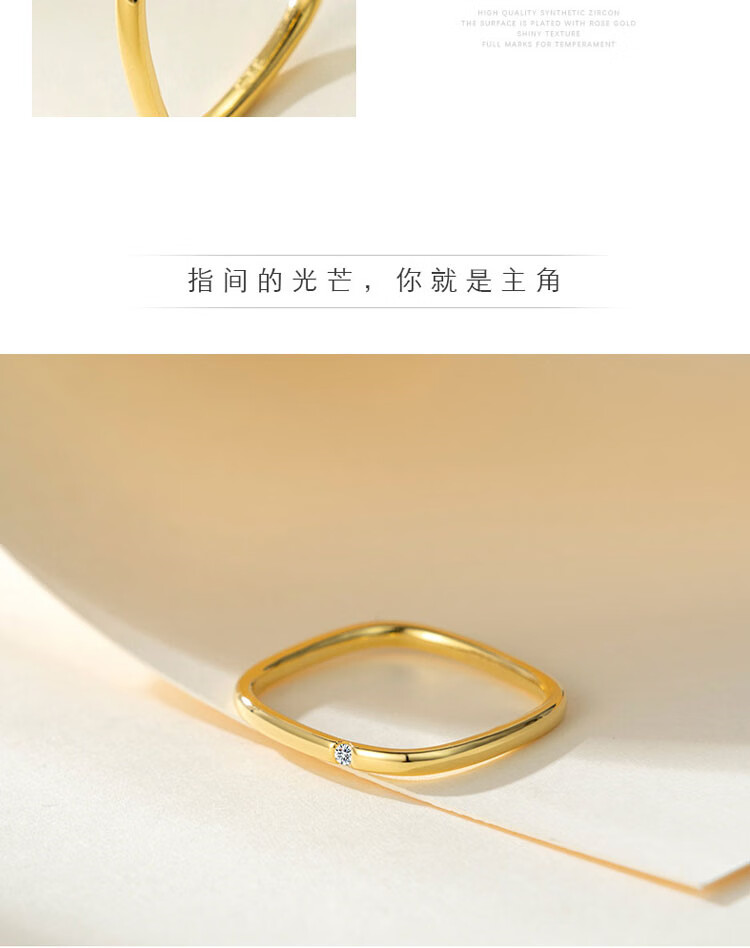 Fat Donglai's same color gold ring for women 18k rose gold 18K small square ring for couples gold plain ring for men a pair white rose gold size 15 (finger circumference 55MM)