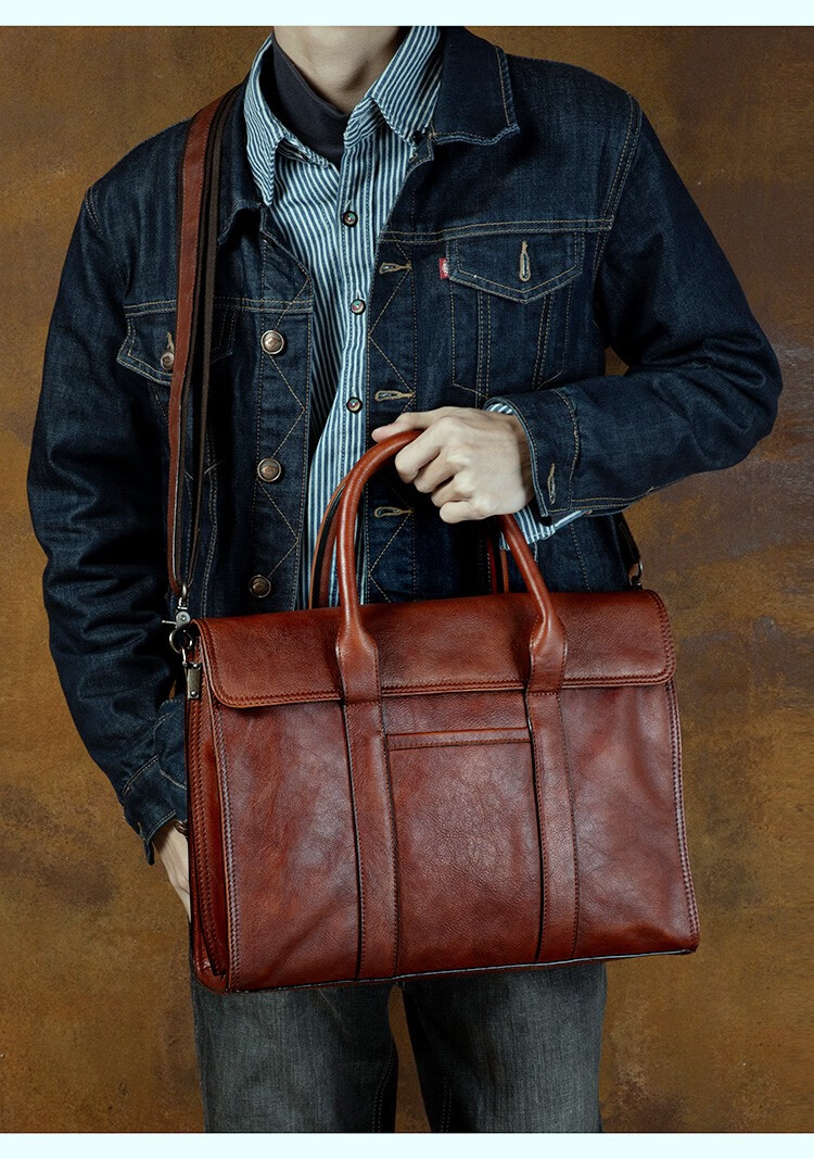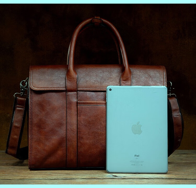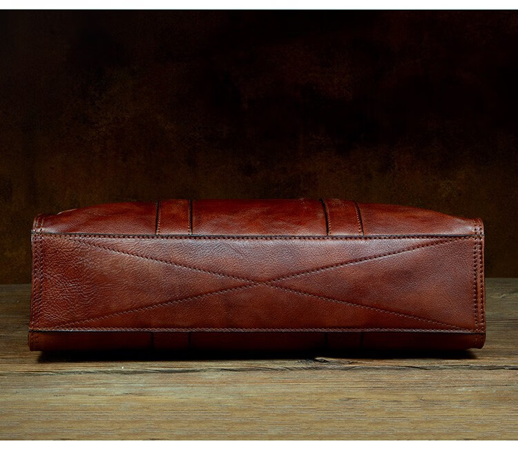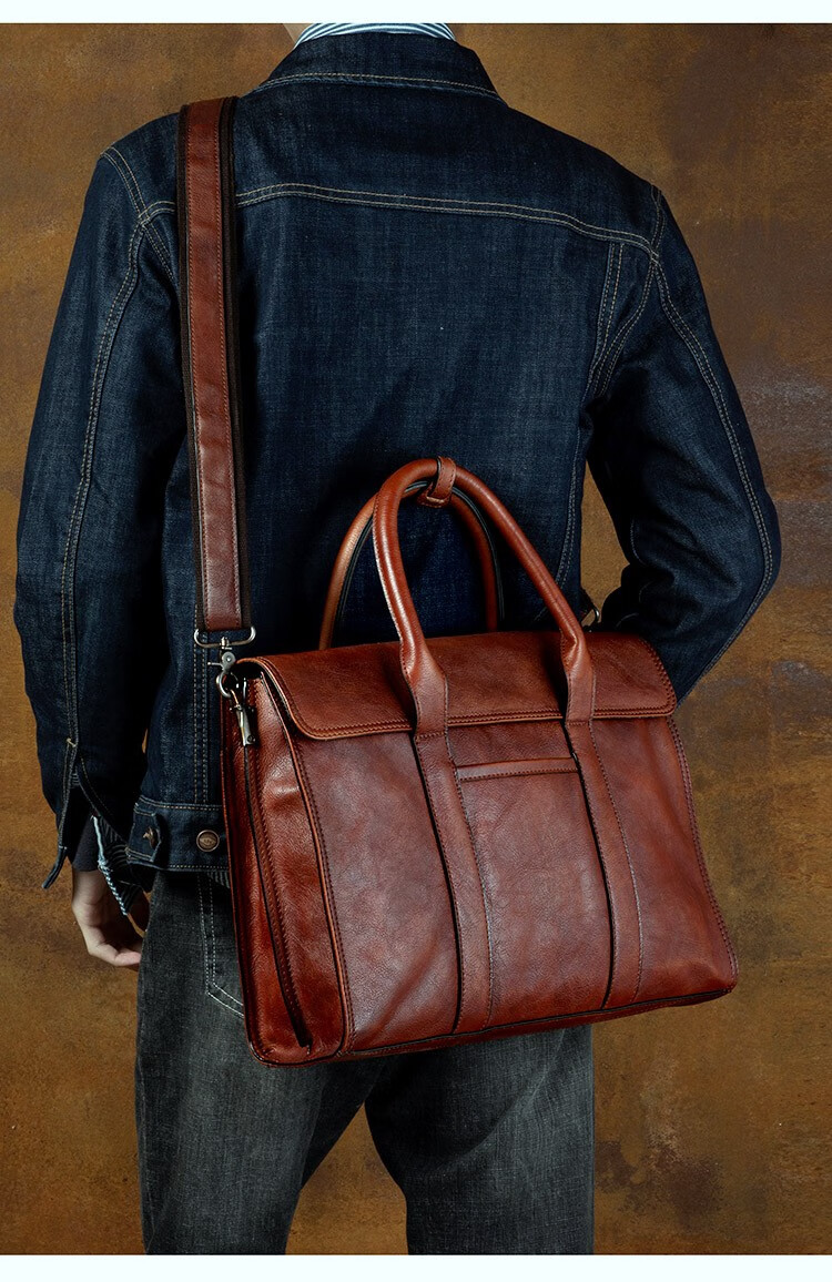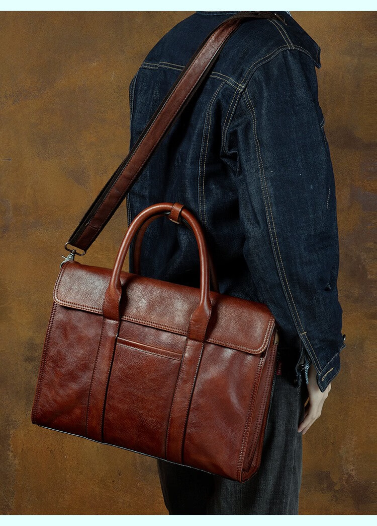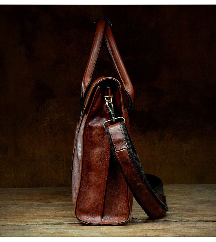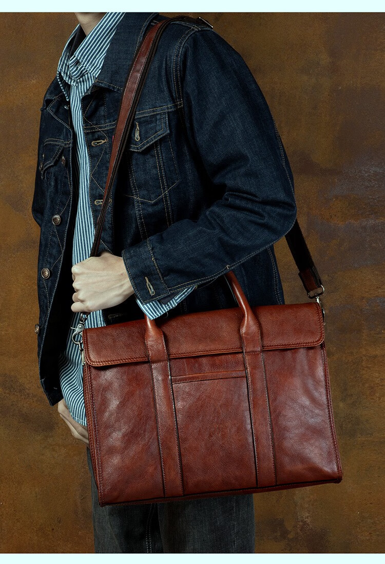 Slow Time Business Genuine Leather Briefcase Trendy Men's Leather Bag Horizontal Shoulder Bag Computer Bag First Layer Cowhide Handbag Document Bag Light Brown Briefcase