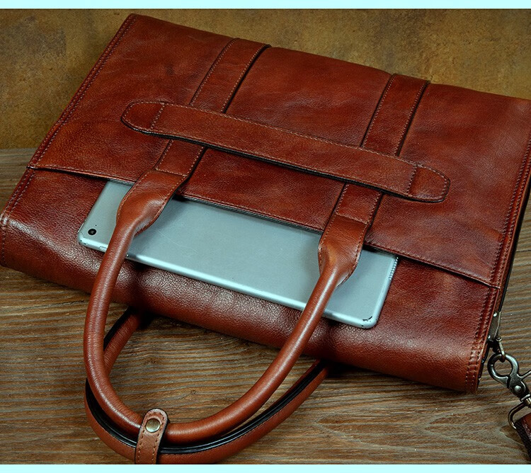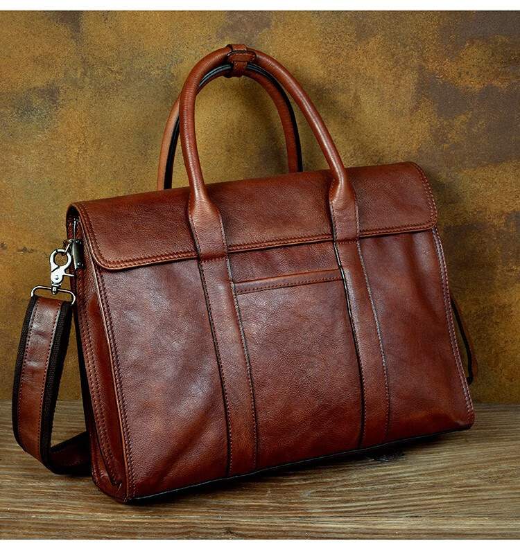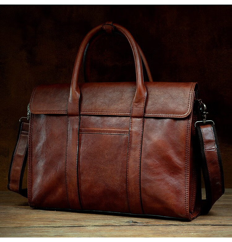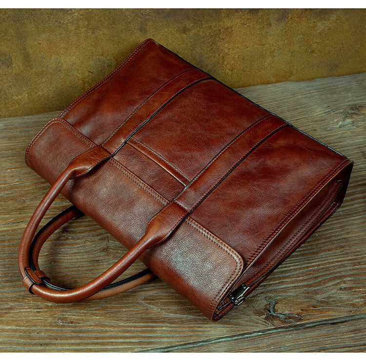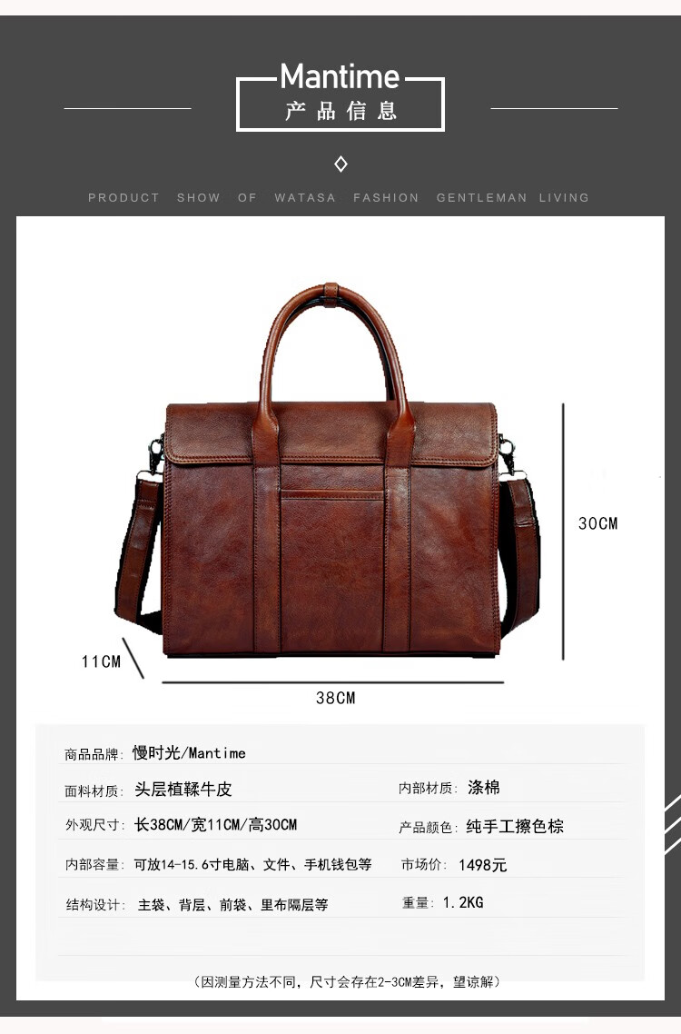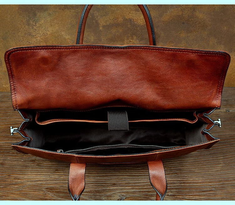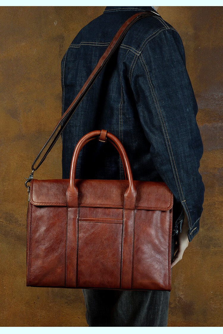 Slow Time Business Genuine Leather Briefcase Trendy Men's Leather Bag Horizontal Shoulder Bag Computer Bag First Layer Cowhide Handbag Document Bag Light Brown Briefcase
