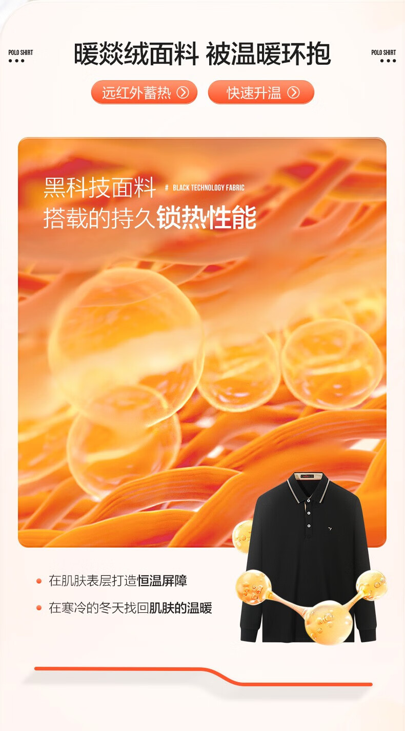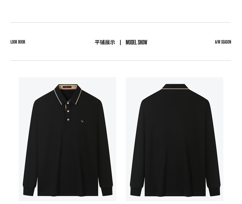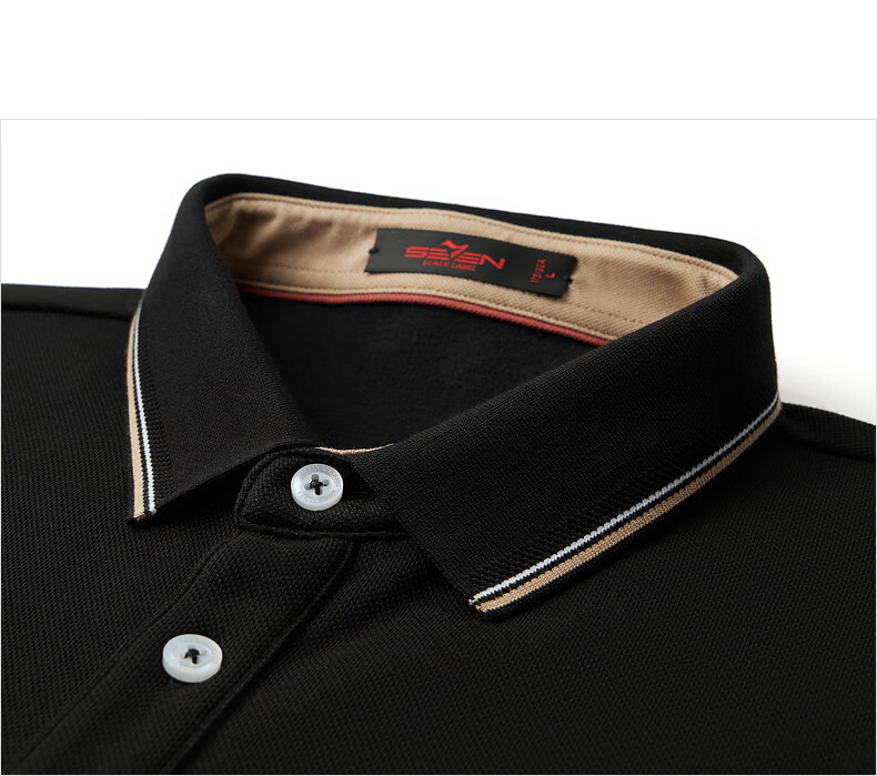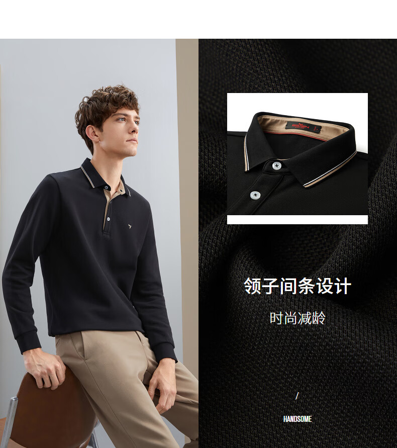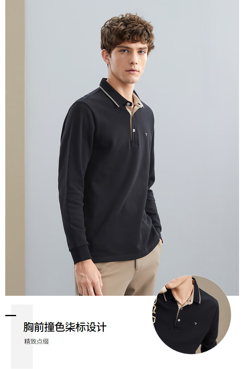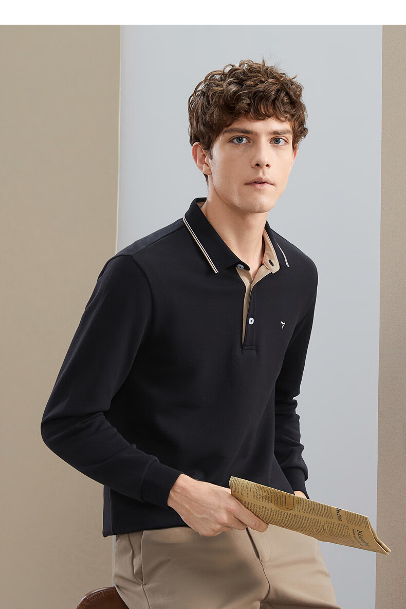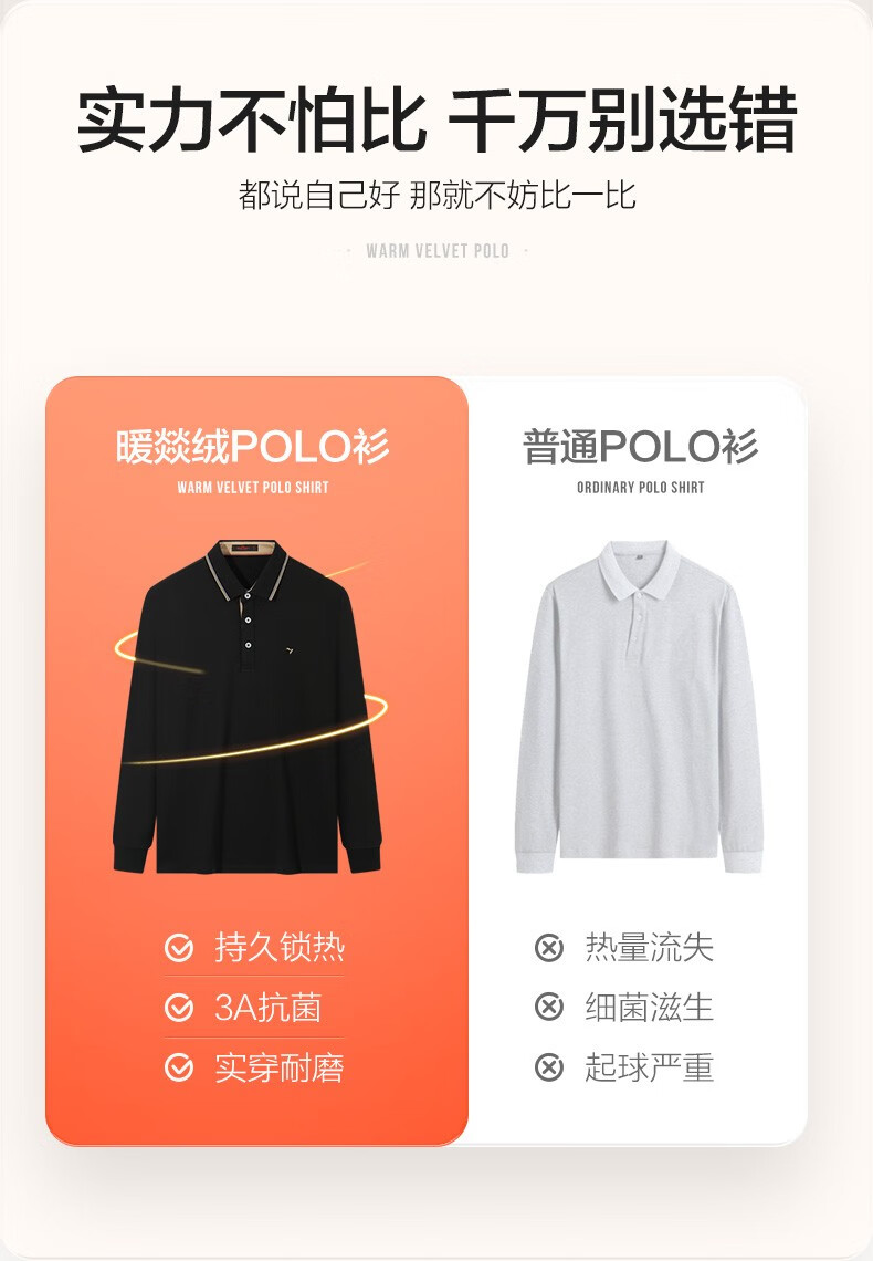Qi Brand Antibacterial Long Sleeve Polo Shirt Men's Spring and Summer Thick Contrast Color Lapel Top Warm Velvet 1JT70110 Black L (175)