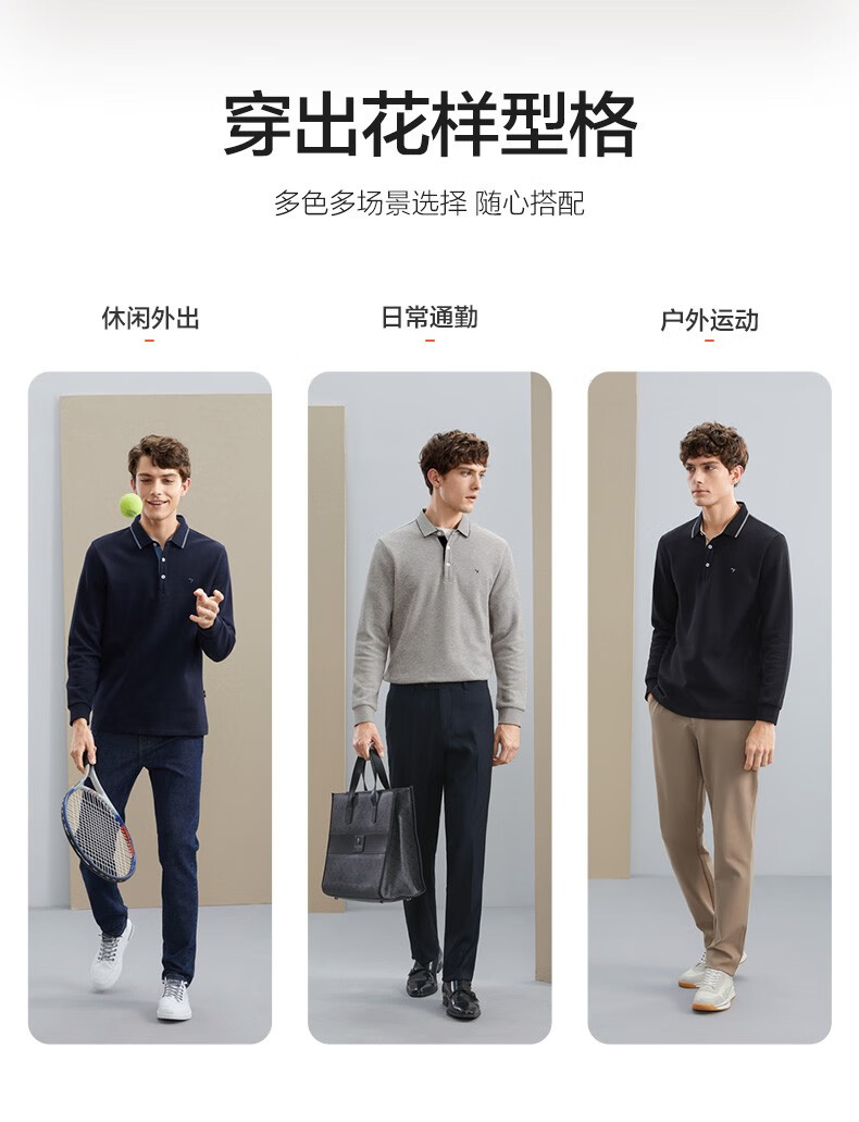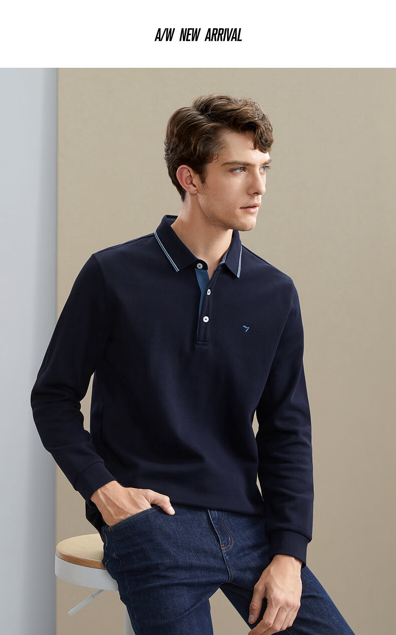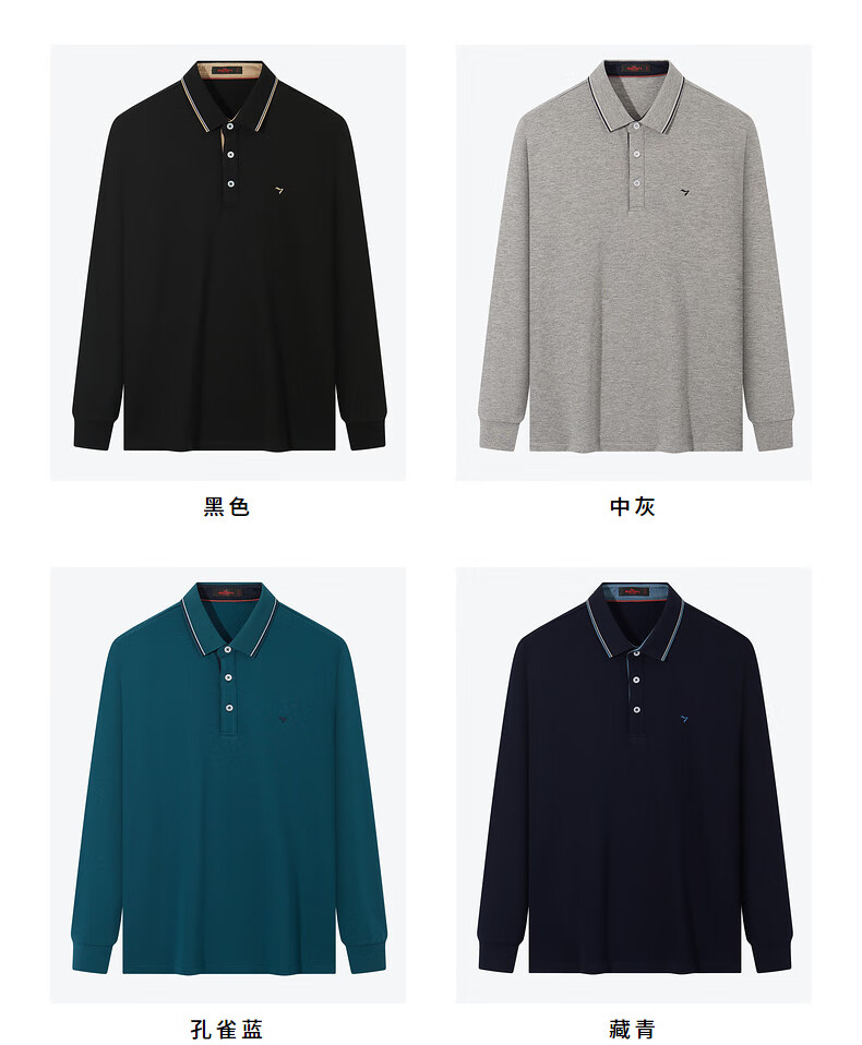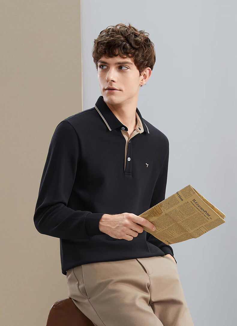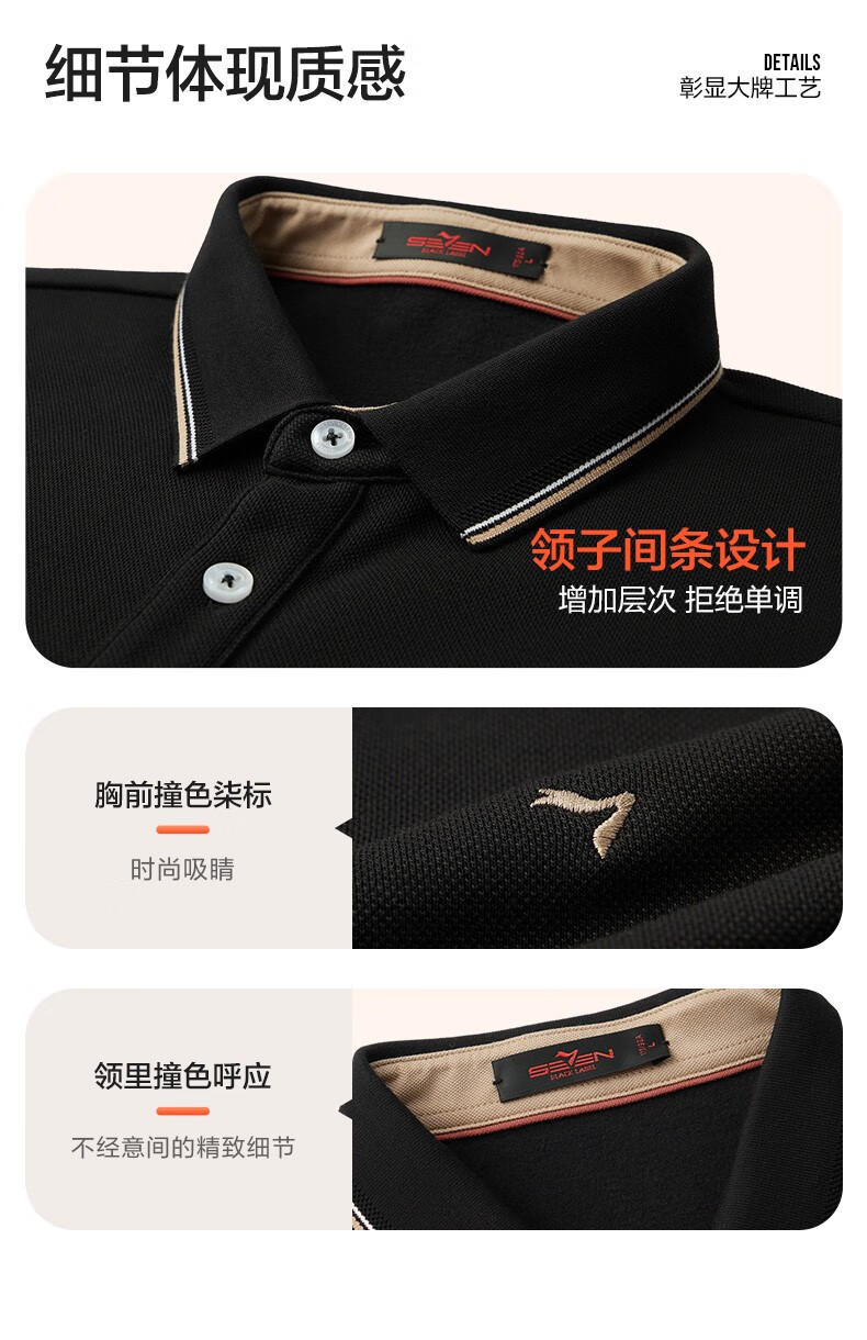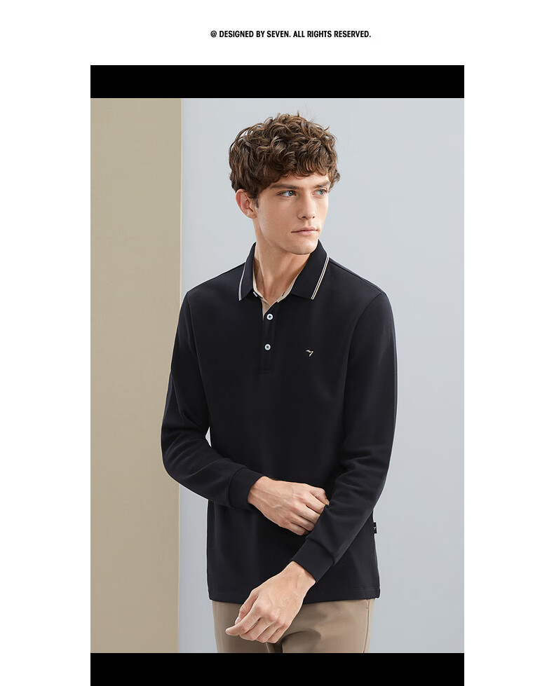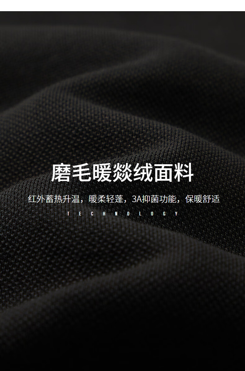 Qi Brand Antibacterial Long Sleeve Polo Shirt Men's Spring and Summer Thick Contrast Color Lapel Top Warm Velvet 1JT70110 Black L (175)