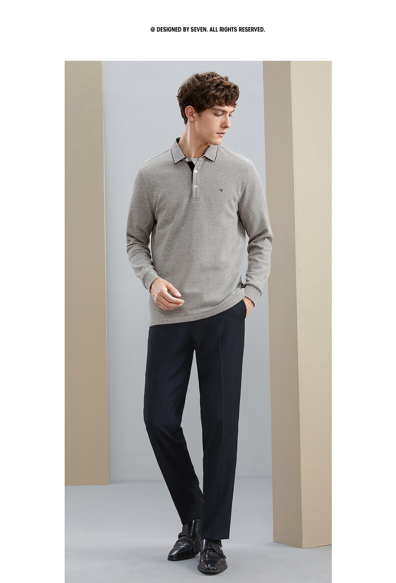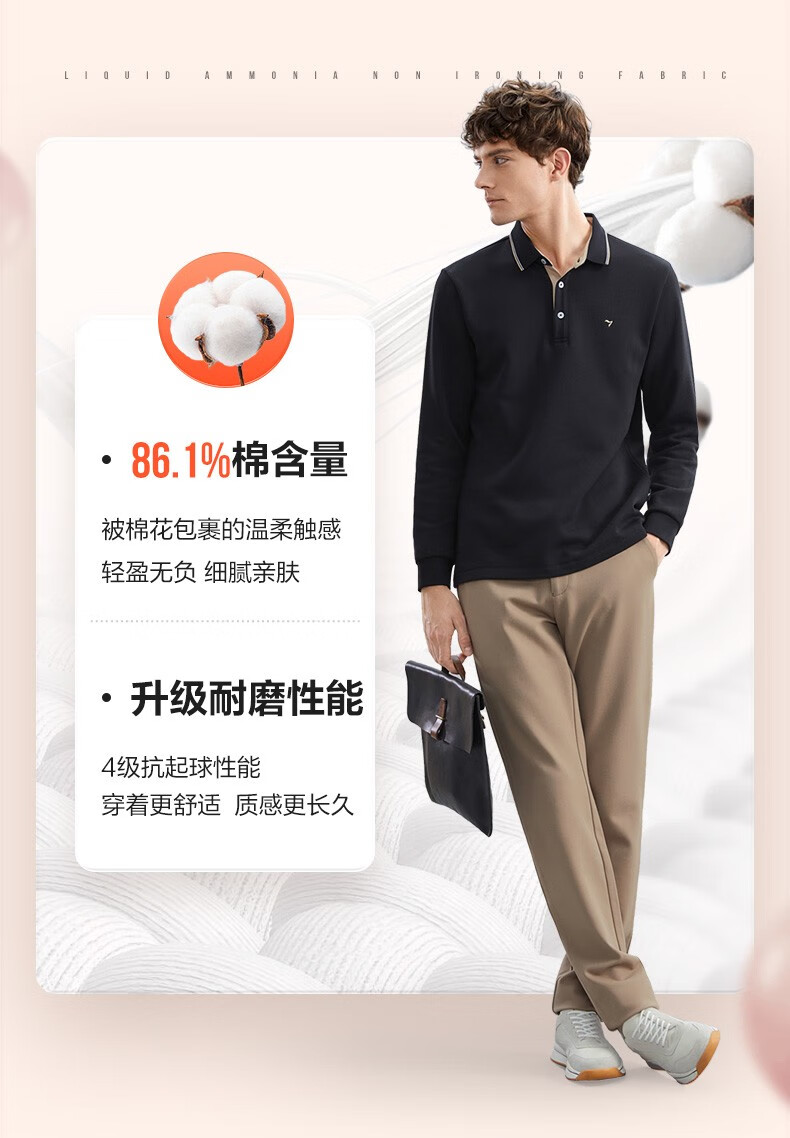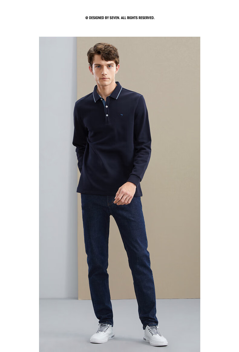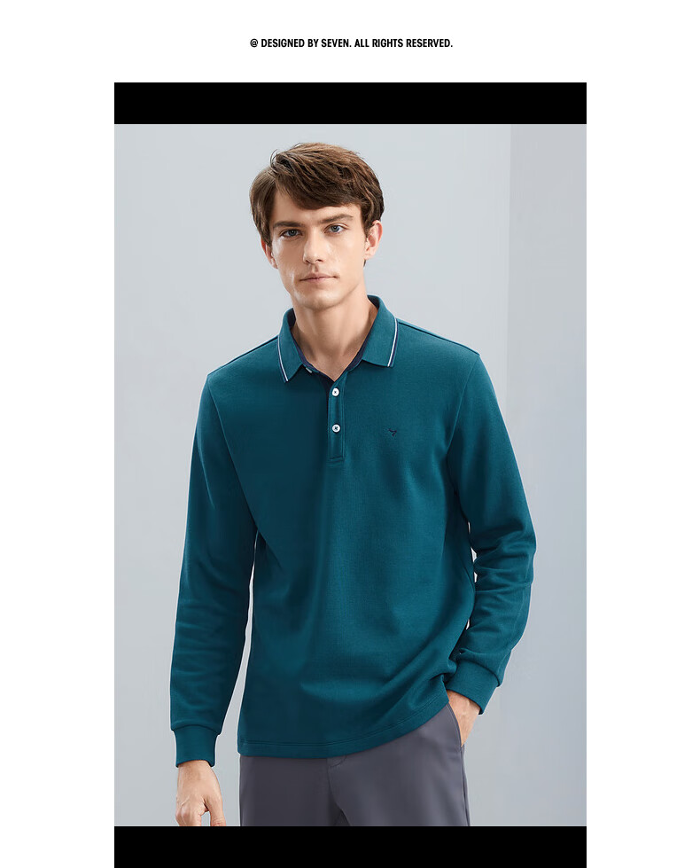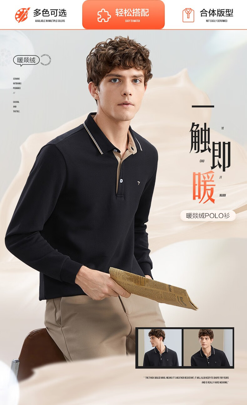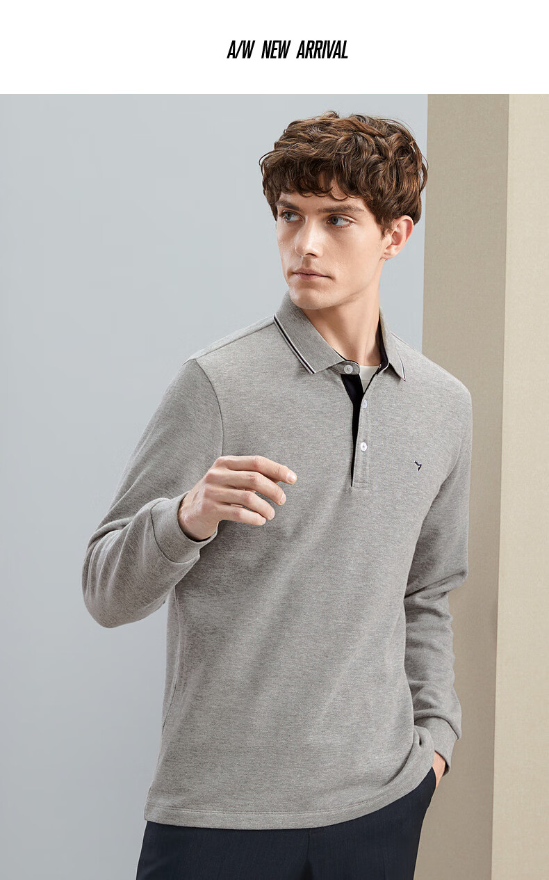 Qi Brand Antibacterial Long Sleeve Polo Shirt Men's Spring and Summer Thick Contrast Color Lapel Top Warm Velvet 1JT70110 Black L (175)