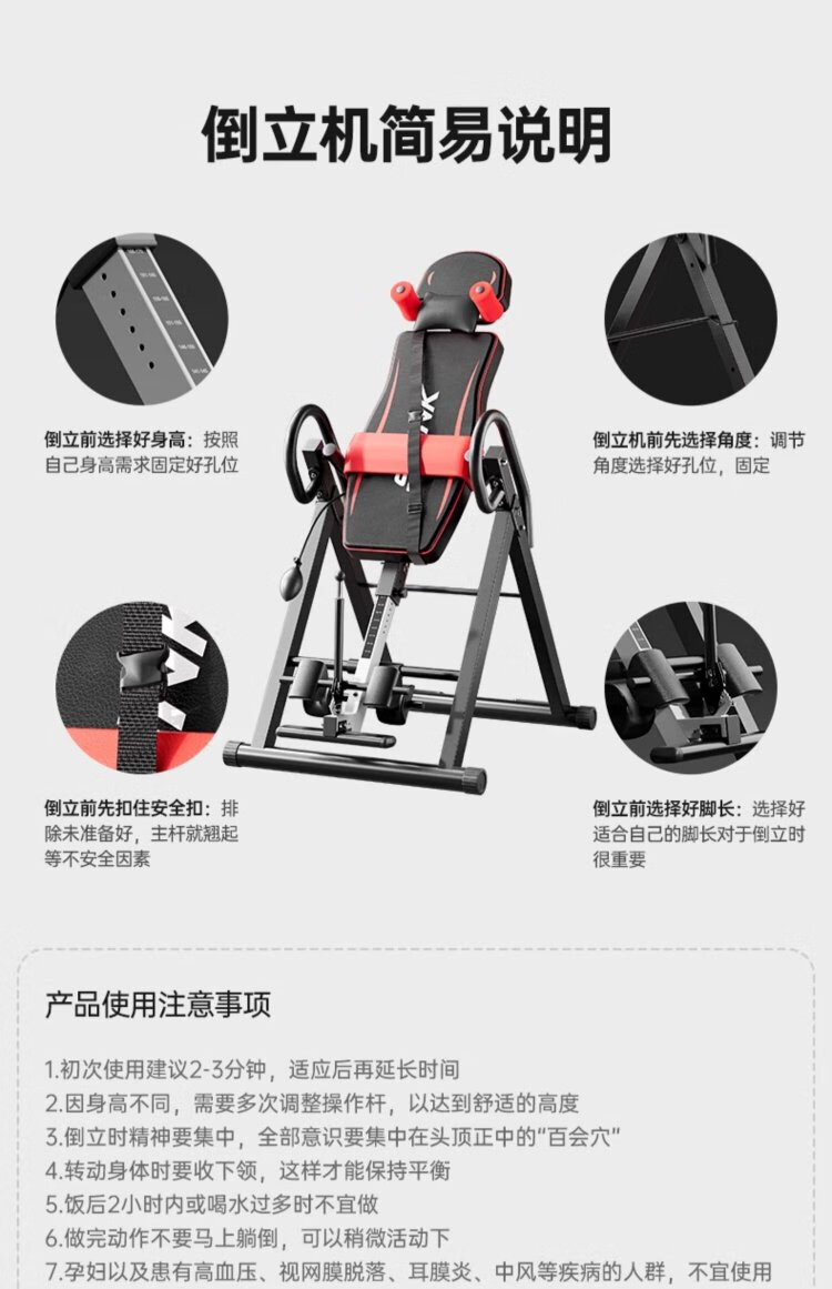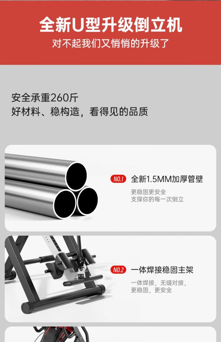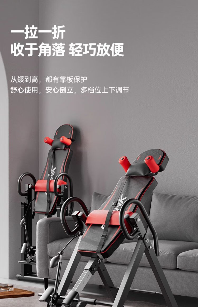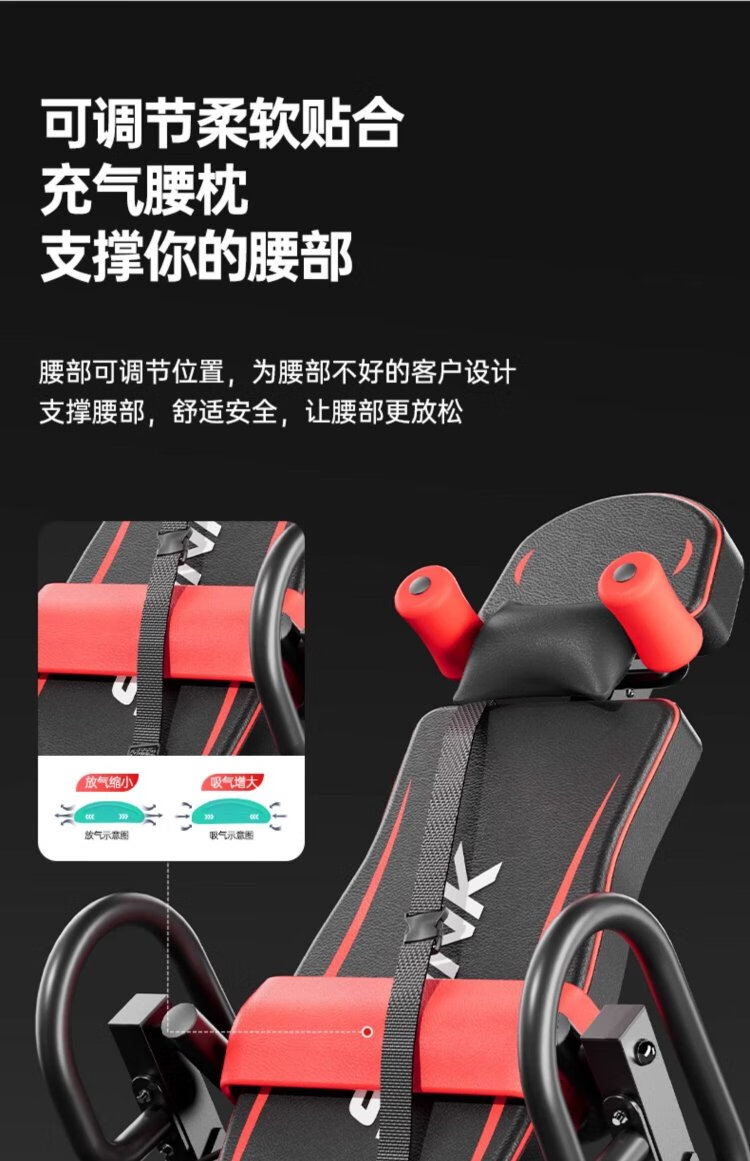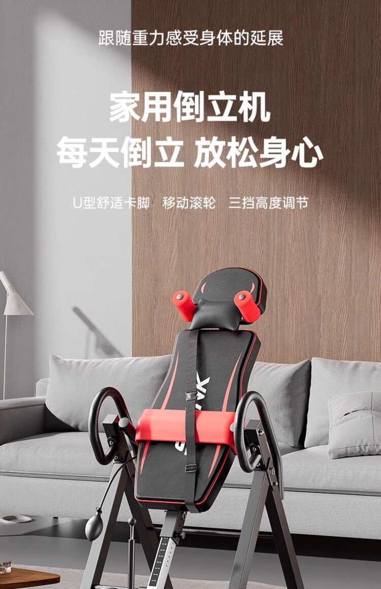 Bina inversion machine home fitness equipment inverted traction puller stretcher inverted lumbar chair inverted machine for elders and children flagship model red thickened square tube/shoulder rest/waist pad only inversion machine