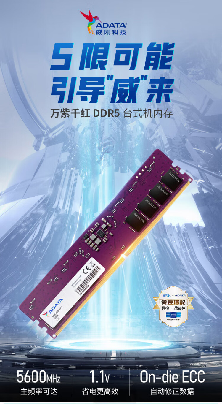 ADATA Colorful Colors Series DDR5 Desktop Memory 5600 Frequency Original Granules DDR5 Memory Bar Desktop Host Upgrade Special Adapted to Black Myth Wukong Colorful Colors 5600 16GB PC