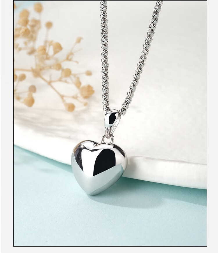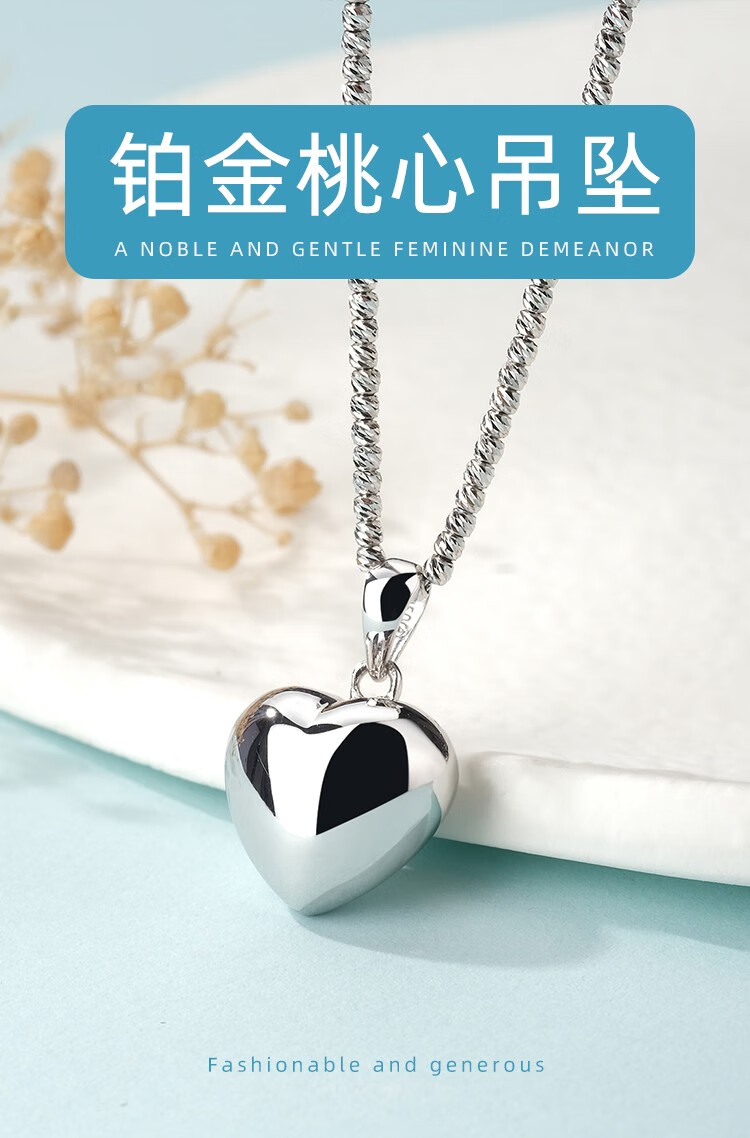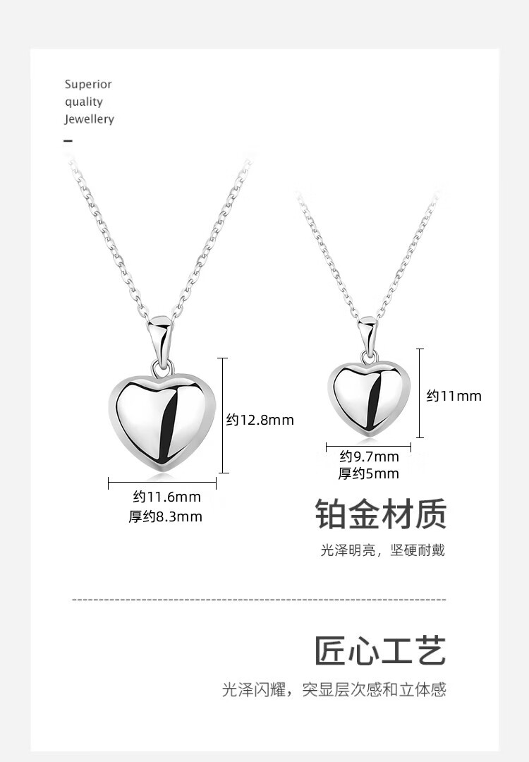 Centennial Baojinxiang 2023 new platinum pendant for women Pt950 smooth heart-shaped platinum necklace large heart pendant set chain for girlfriend (small size) weighs about 1.5-1.7 grams