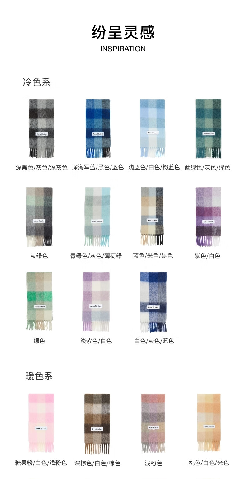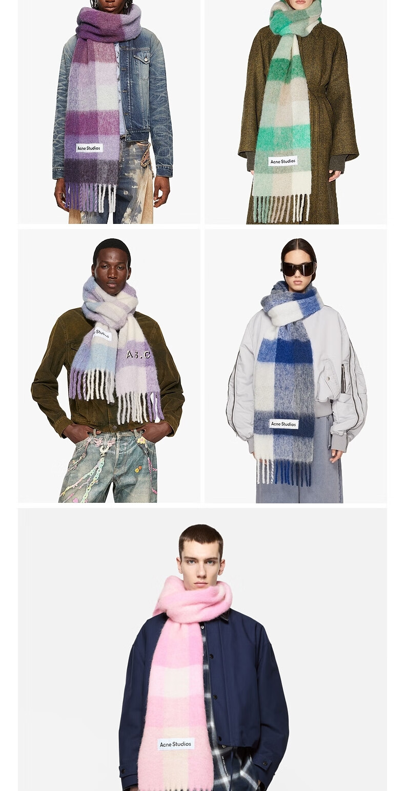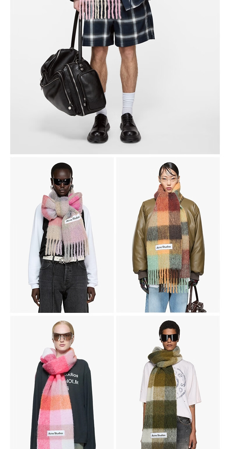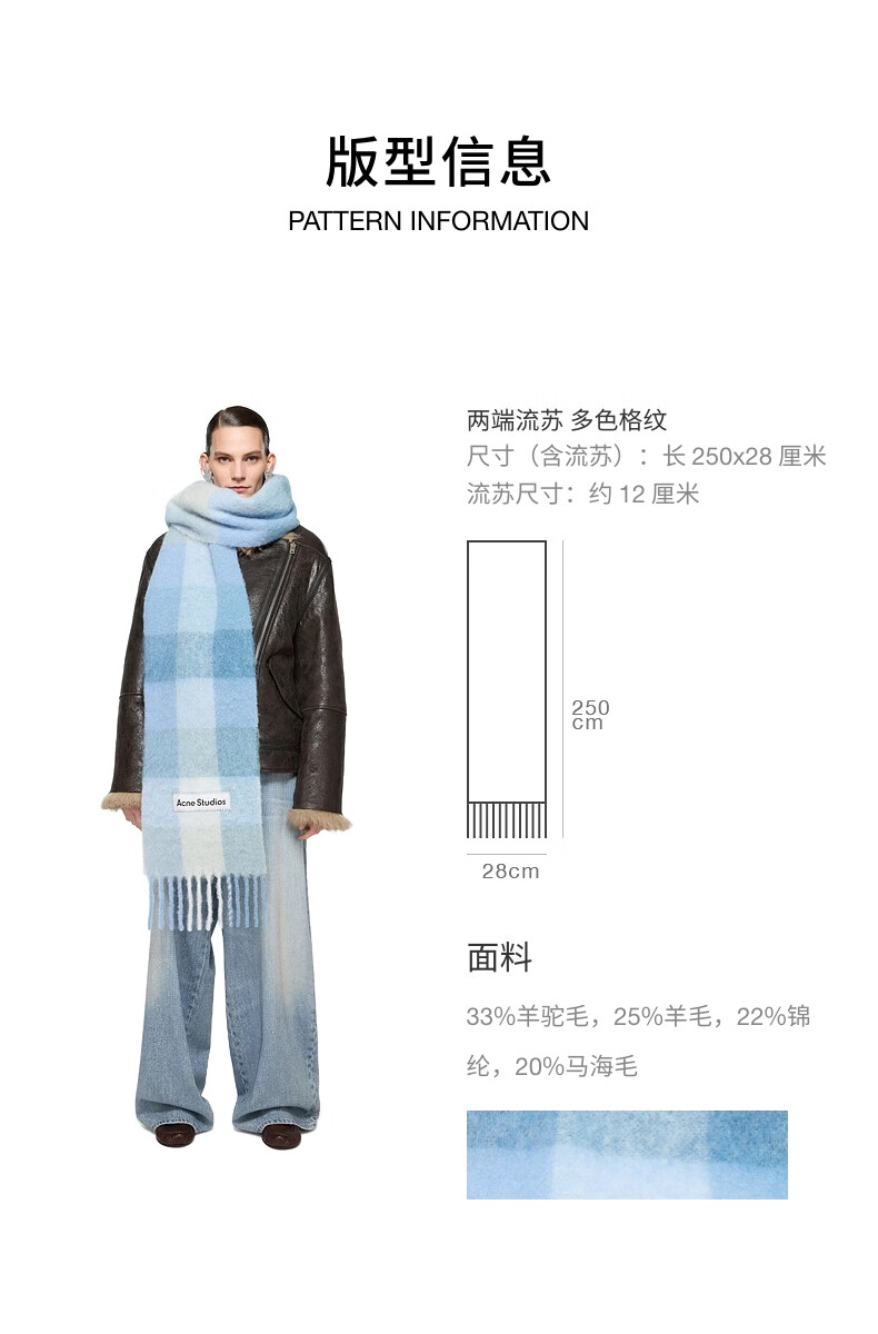 Acne Studios Unisex Plaid Tassel Rainbow Vally Scarf Wool Shawl CA0084 Blue/Beige/Black One Size
