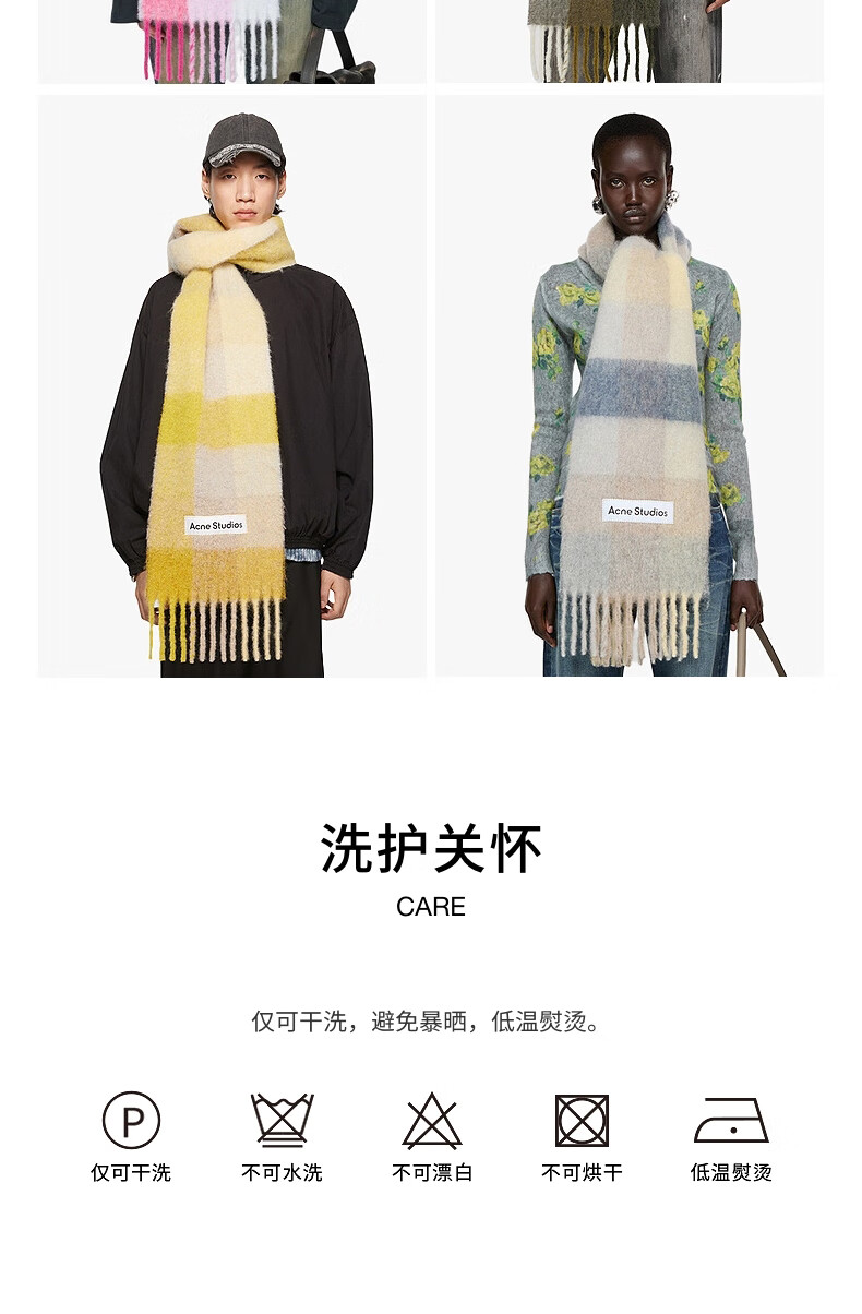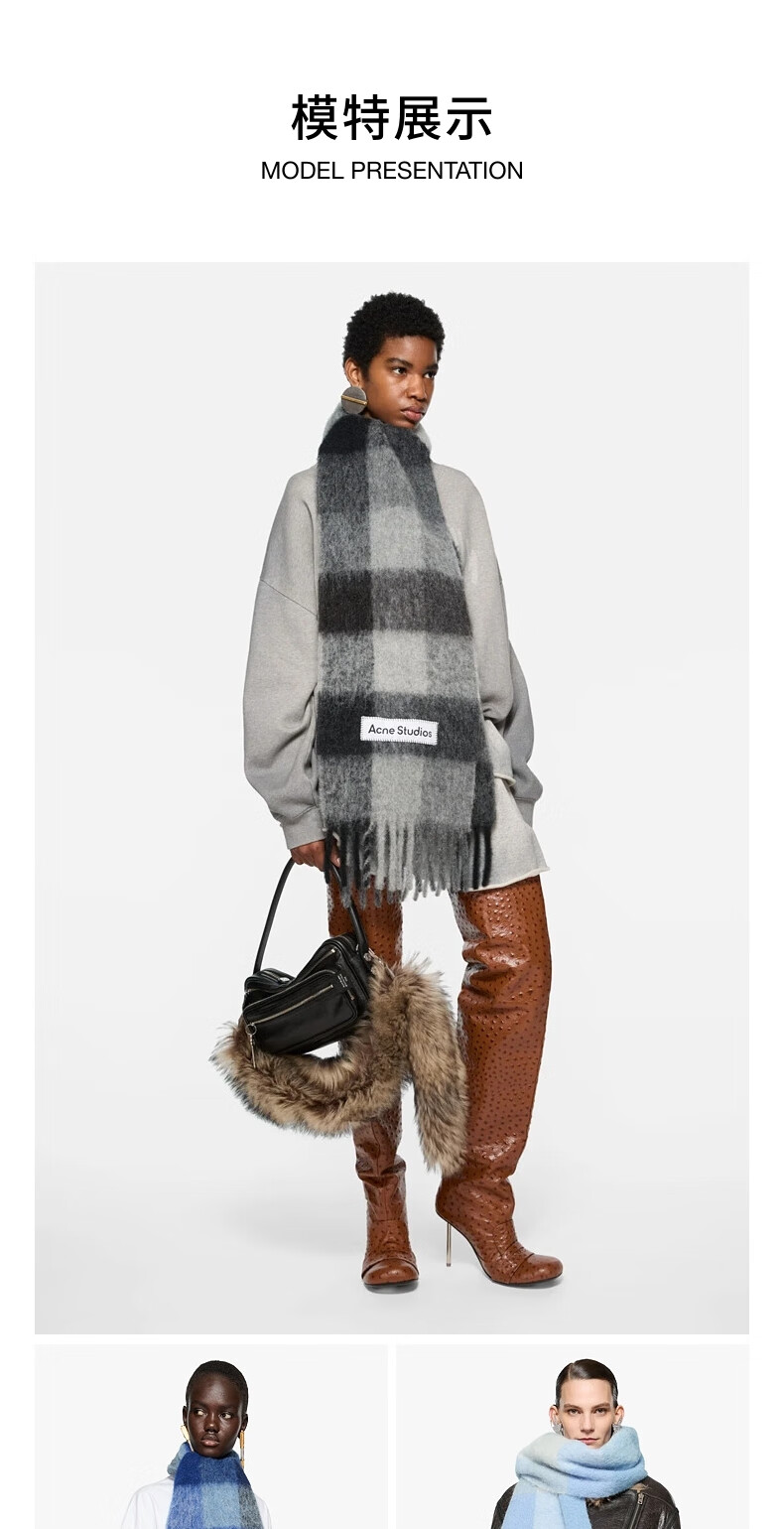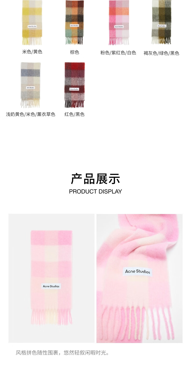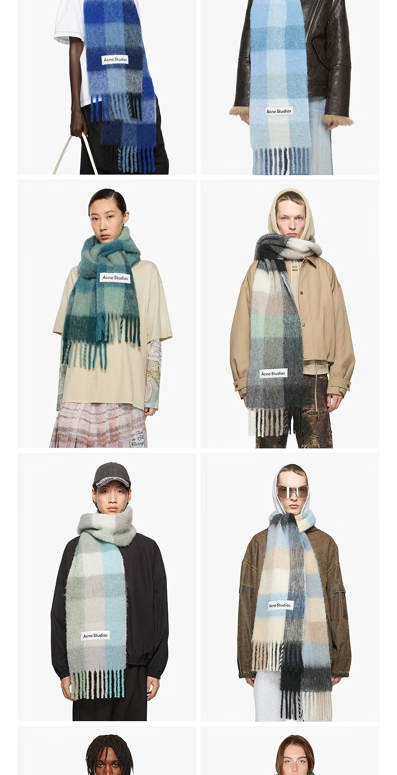Acne Studios Unisex Plaid Tassel Rainbow Vally Scarf Wool Shawl CA0084 Blue/Beige/Black One Size
