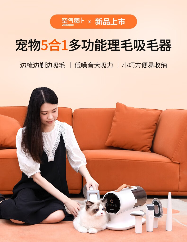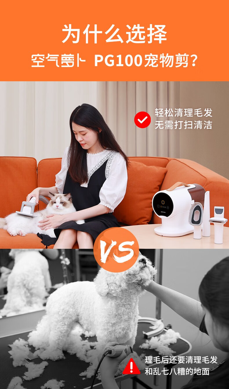 Air Carrot Pet Grooming Shaver Hair Suction Electric Clipper for Dogs and Cats Home Multifunctional Hair Grooming Suction Vacuum Sticky Hair Multifunctional Hair Cutter PG100