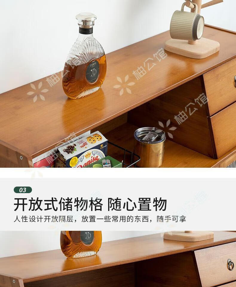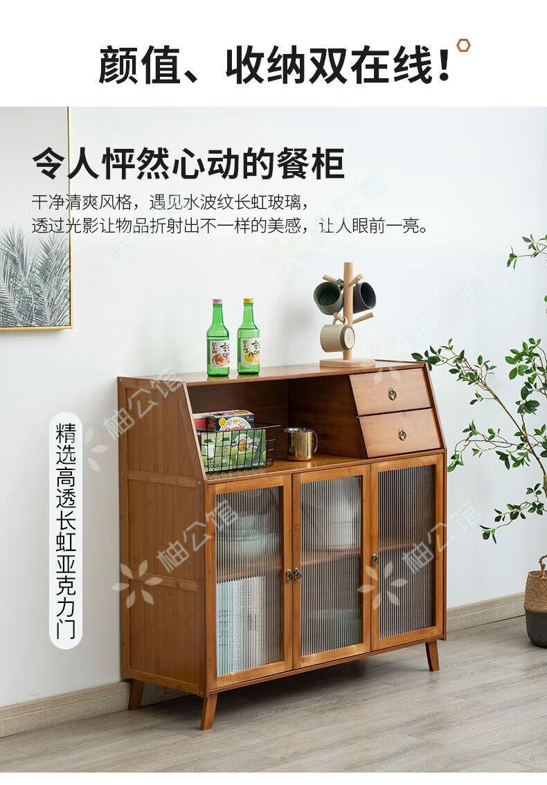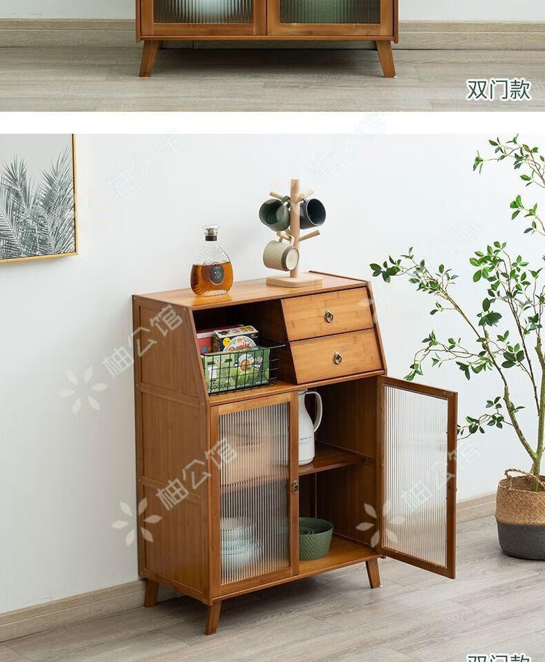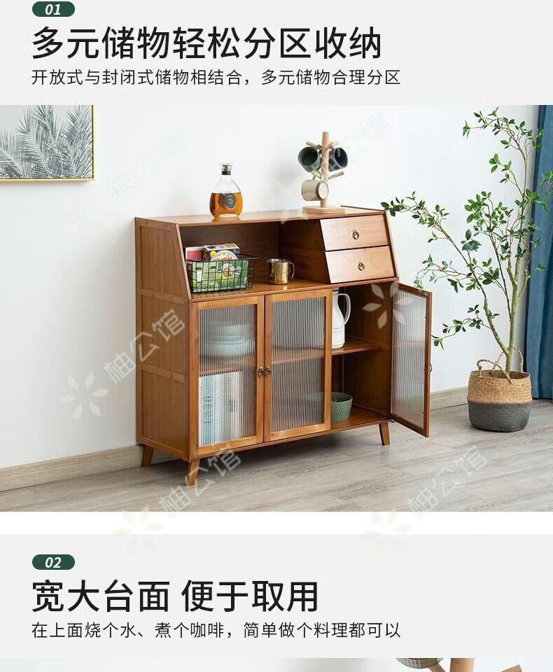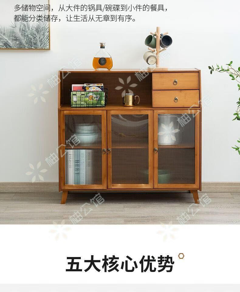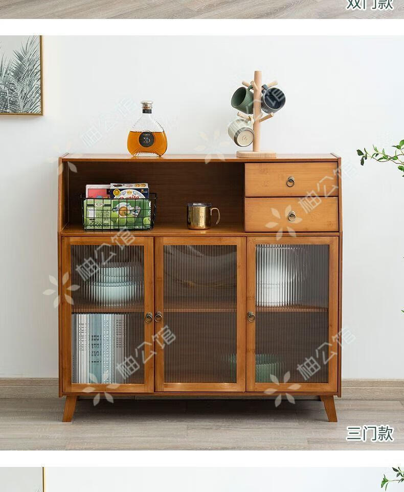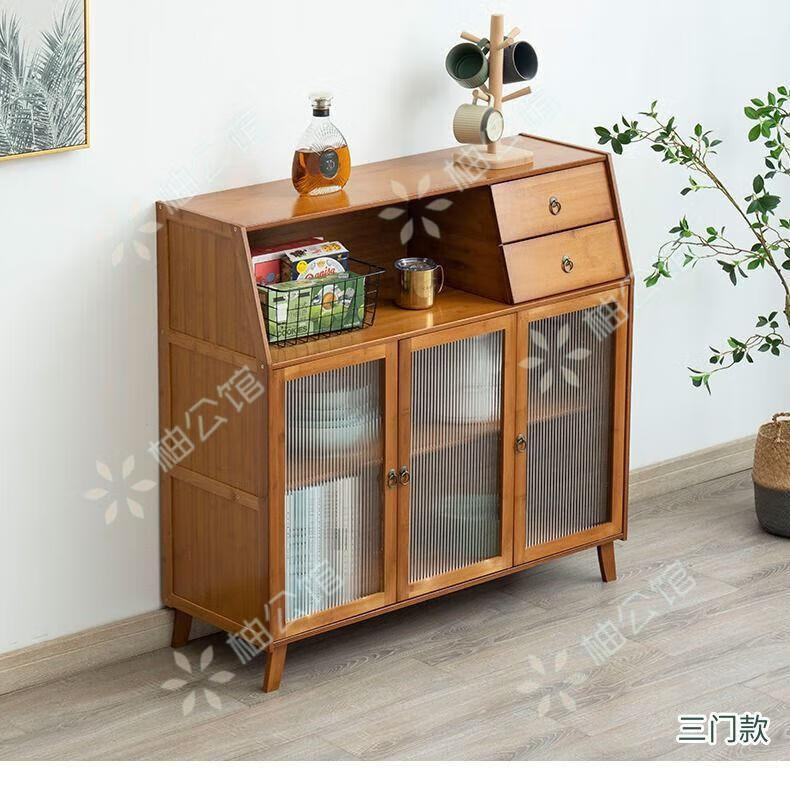 Pomelo Mansion Nordic Kitchen Sideboard Wine Cabinet Modern Simple Storage Living Room Cupboard Multifunctional Home Storage Cabinet Tea Cabinet Brown Three Doors Double Draw