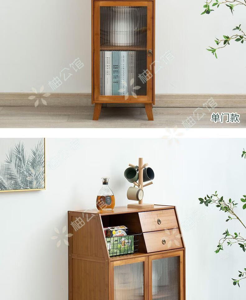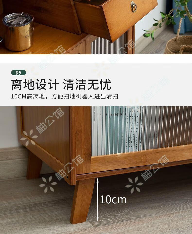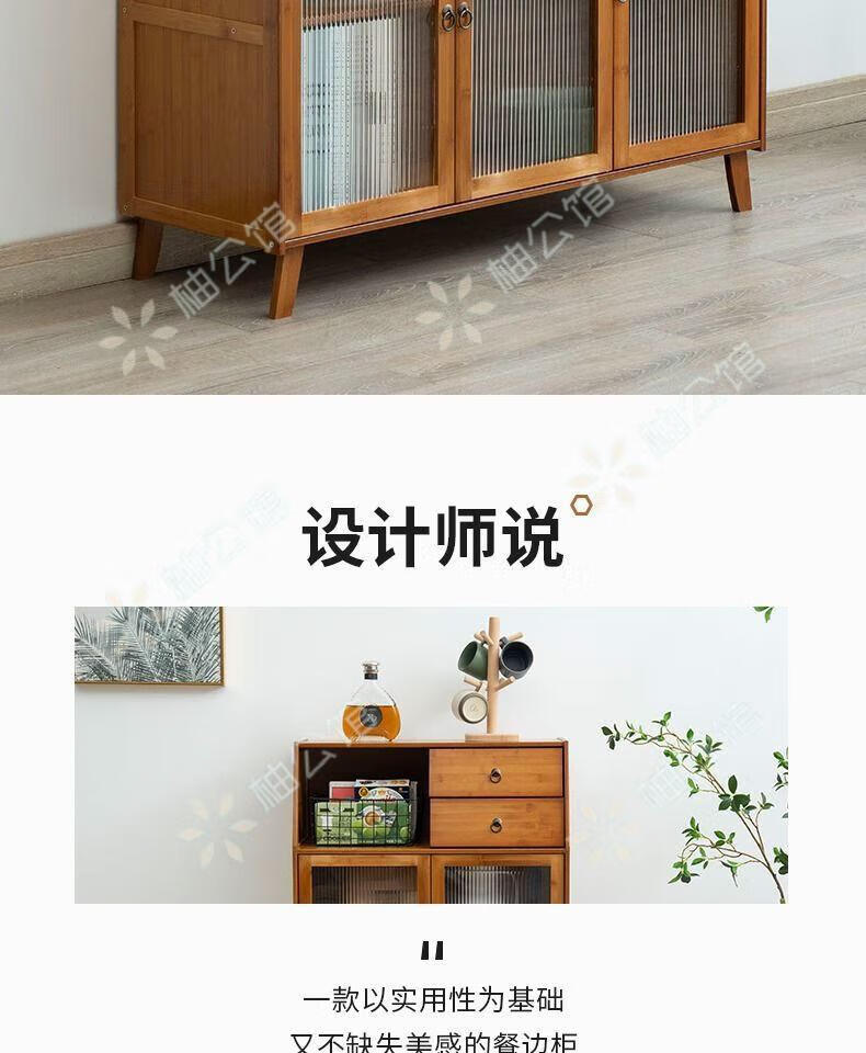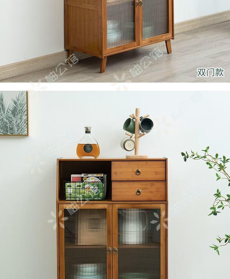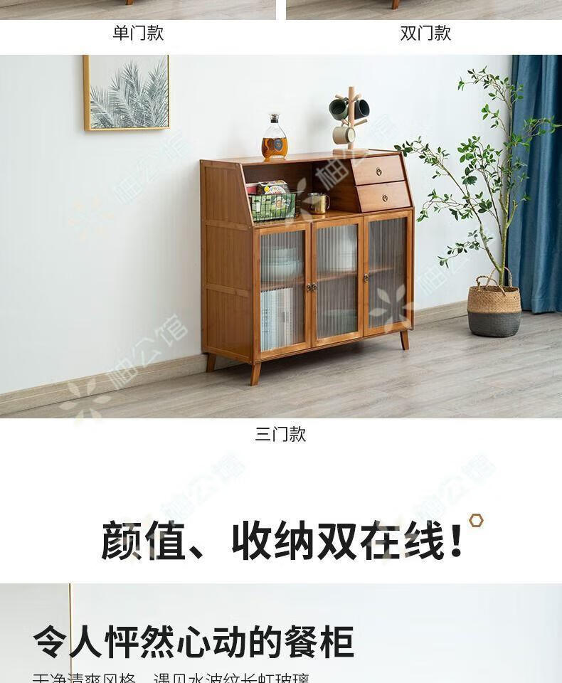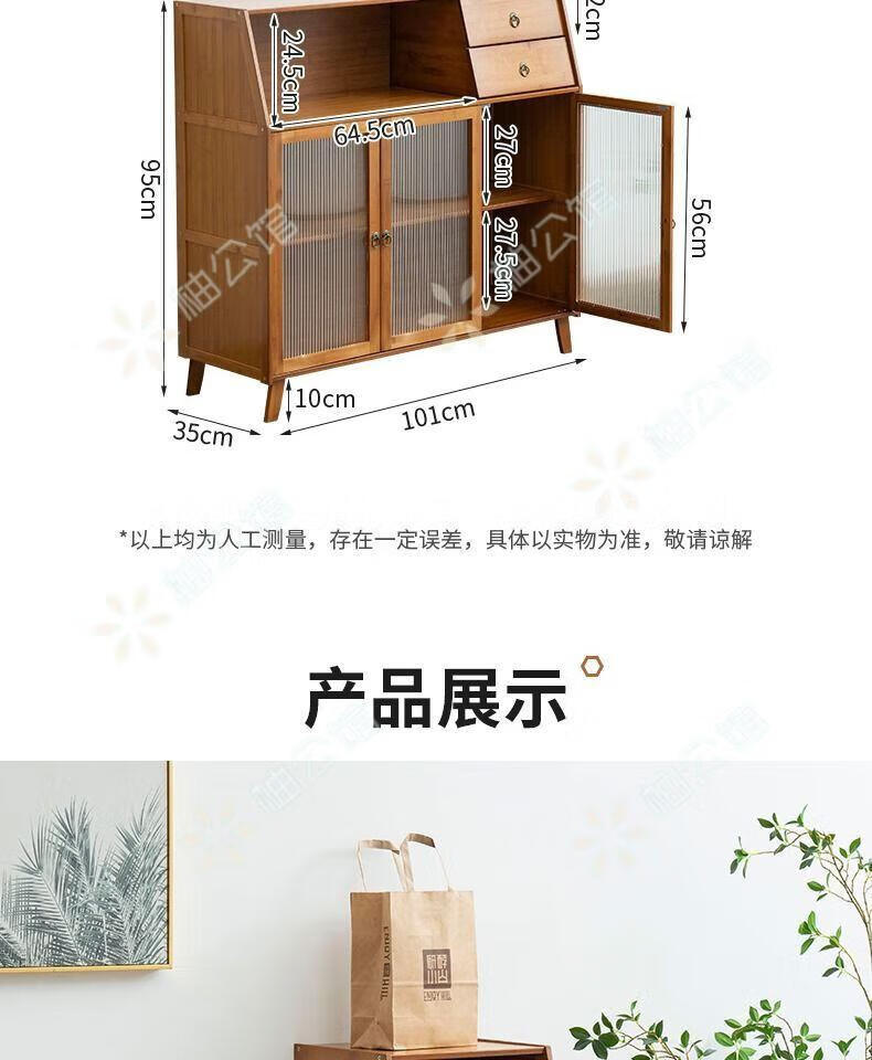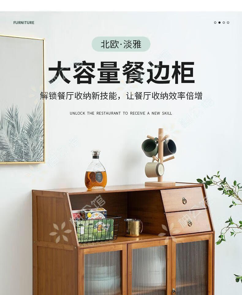 Pomelo Mansion Nordic Kitchen Sideboard Wine Cabinet Modern Simple Storage Living Room Cupboard Multifunctional Home Storage Cabinet Tea Cabinet Brown Three Doors Double Draw