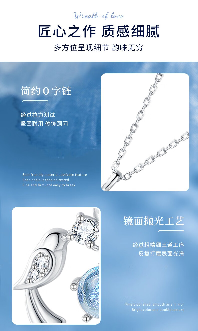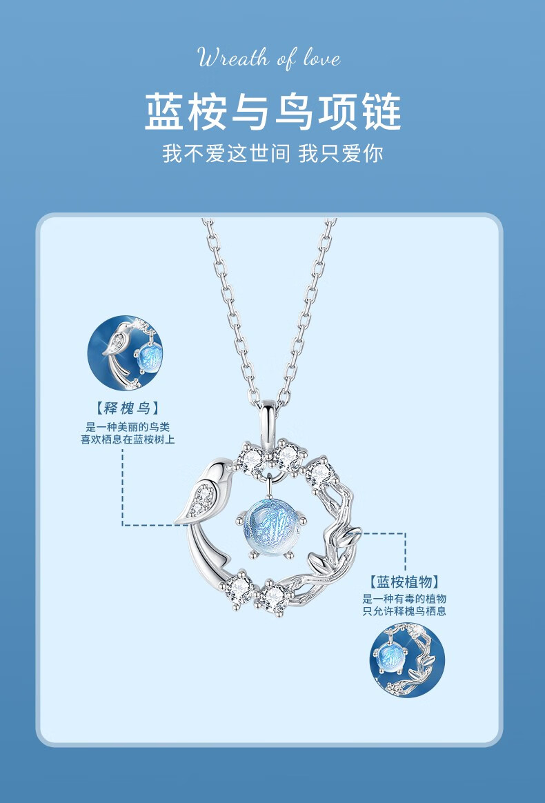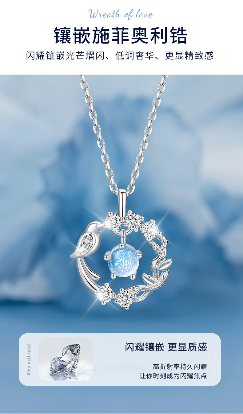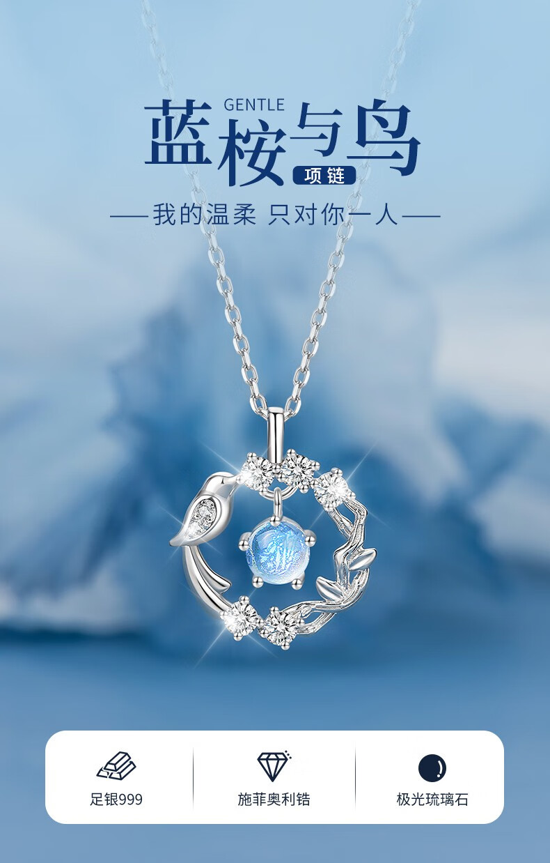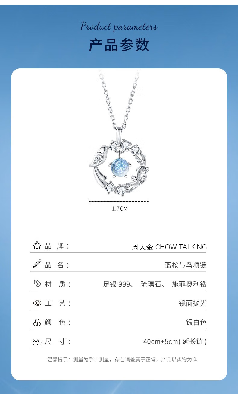 Zhou Dajin CHOW TAI KING999 pure silver eucalyptus and bird sterling silver necklace girls high-end pendant birthday Valentine's Day gift for girlfriend eucalyptus and bird/brand gift box/free engraving
