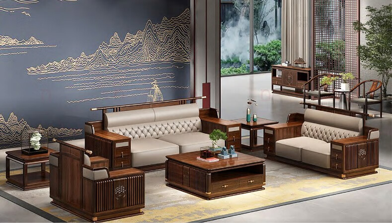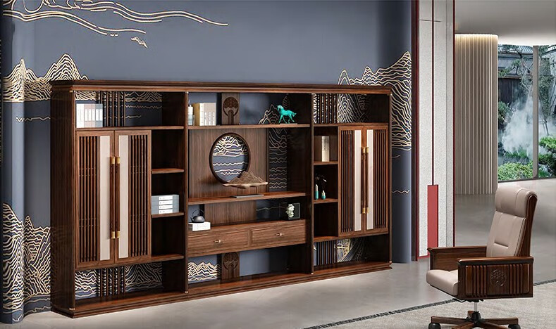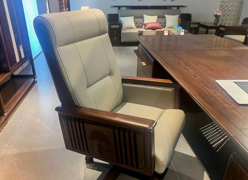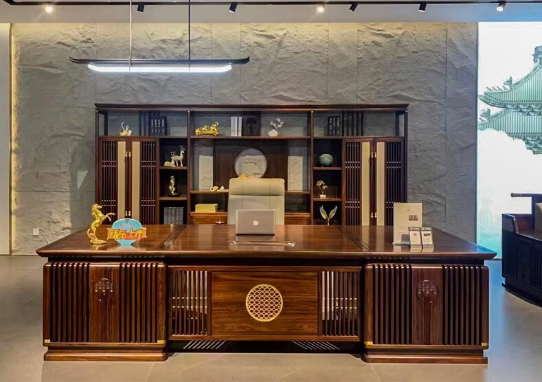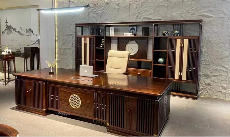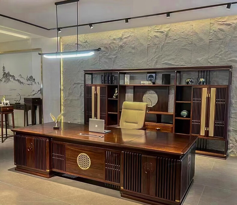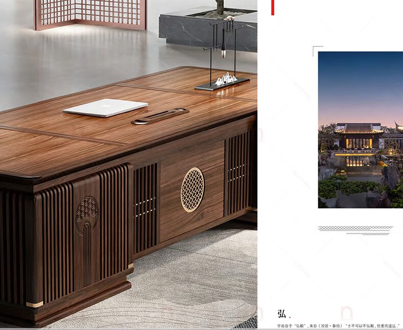 Three Furniture Black Gold Wood Desk Boss Desk New Chinese Style Solid Wood Executive Desk Light Luxury Chairman's Desk Office Furniture 3.6 Meter Black Gold Wood Desk