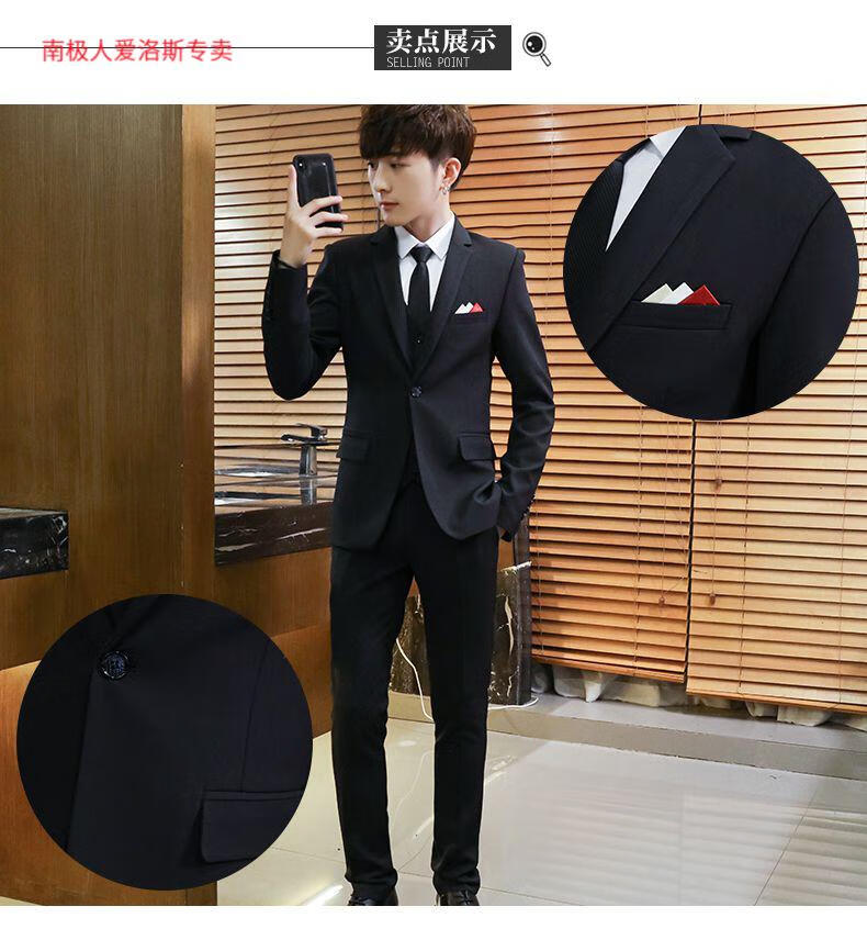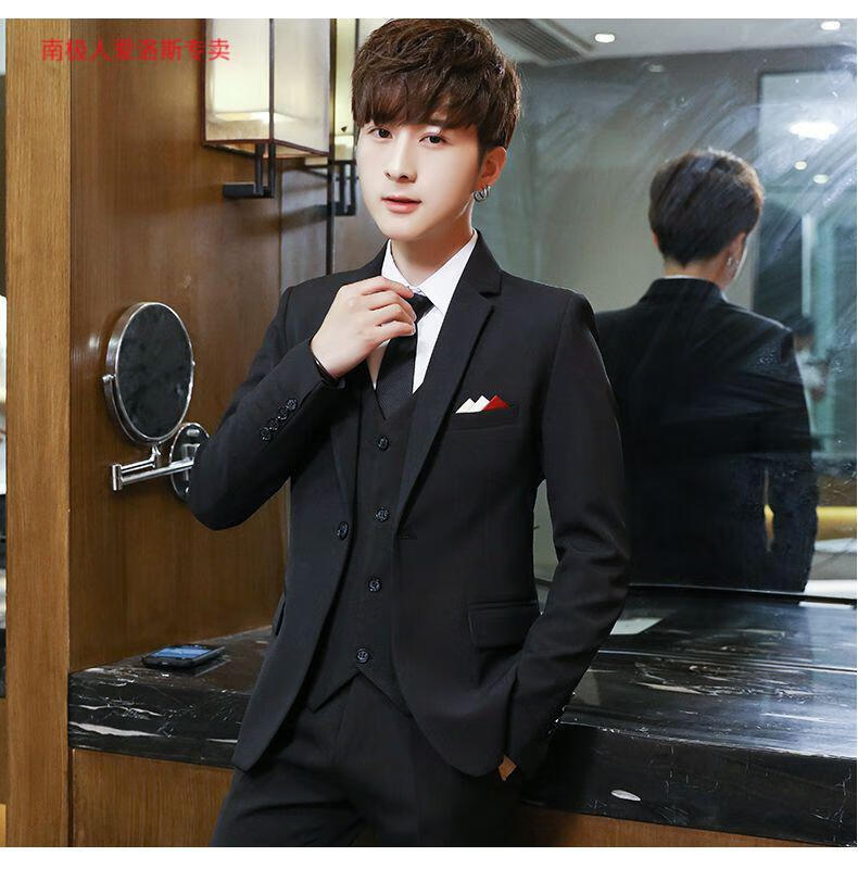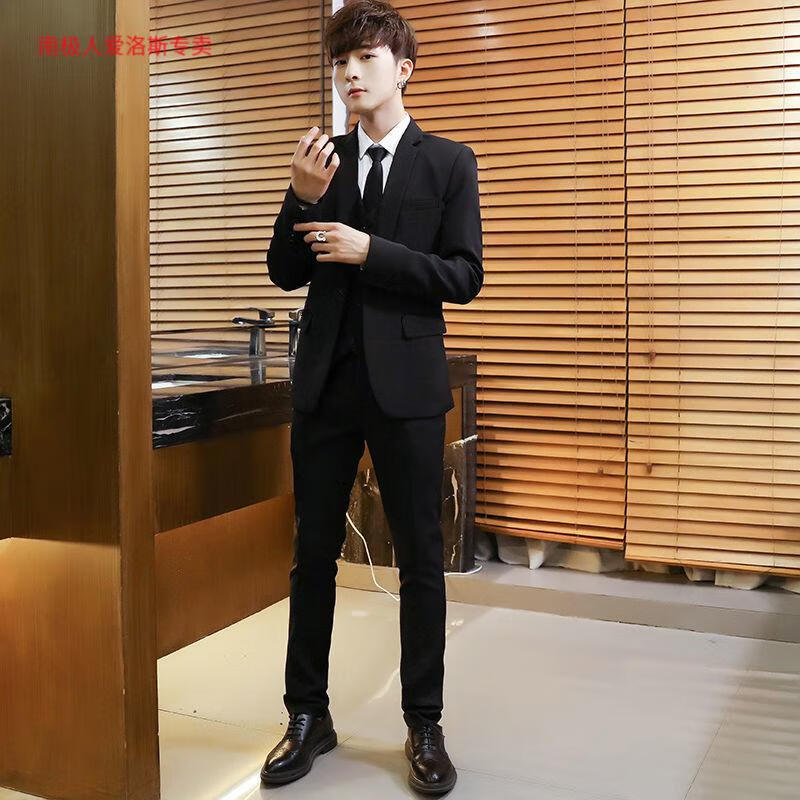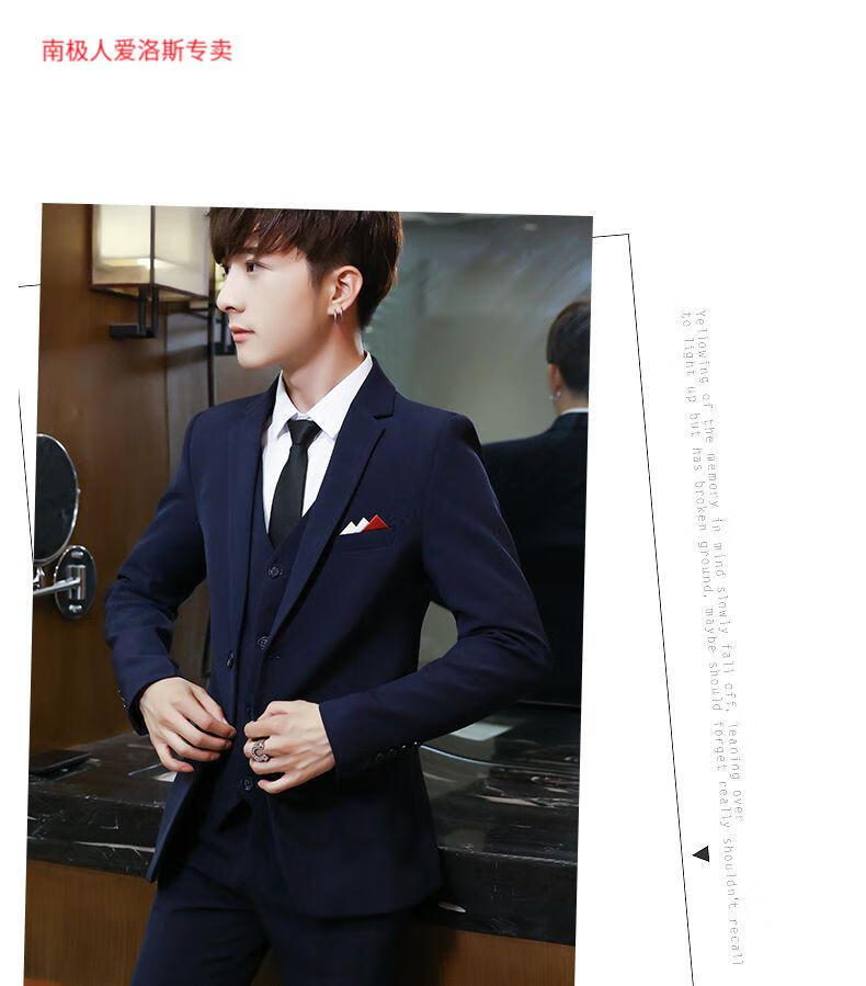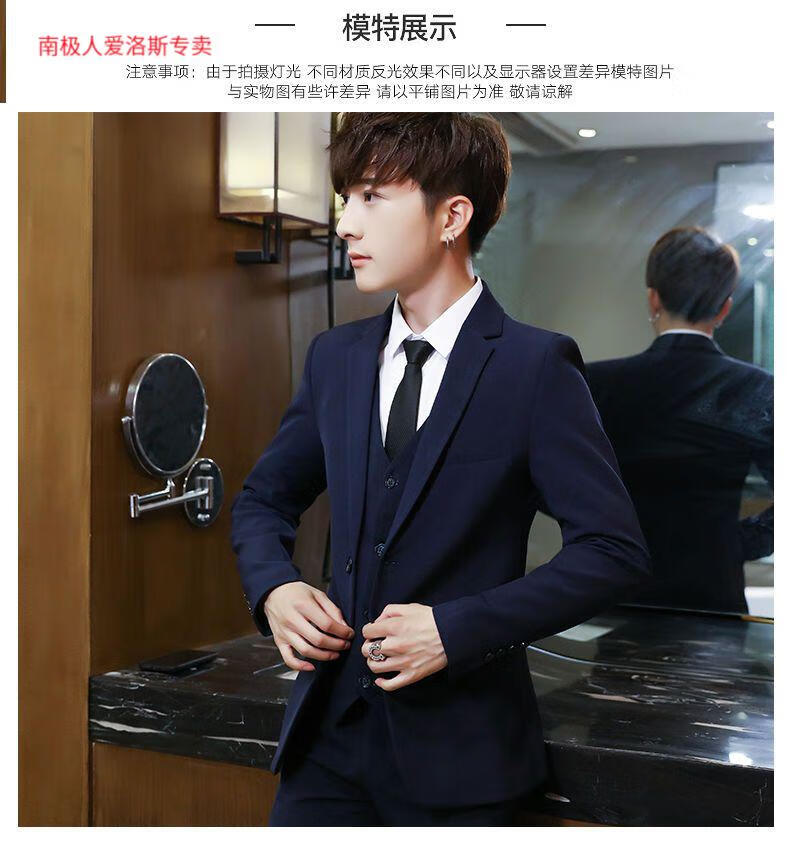 Woodpecker (TUCANO) Suit Suit Men's Business Formal Groom Groomsman Wedding Dress Korean Slim Teen Student Suit Complete Set 1 Button Navy (Seven-piece Set) XL (127-137 Jin Jin equals 0.5 kg)