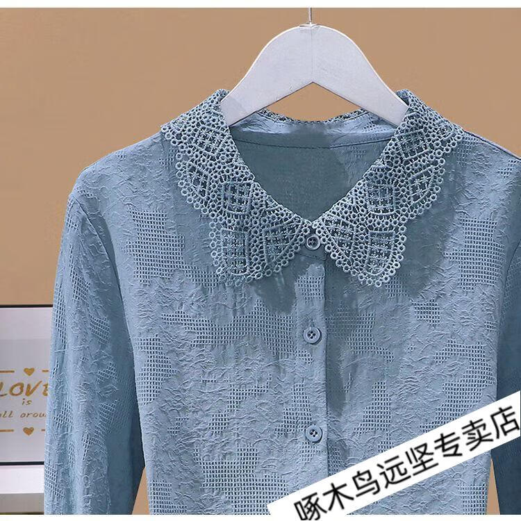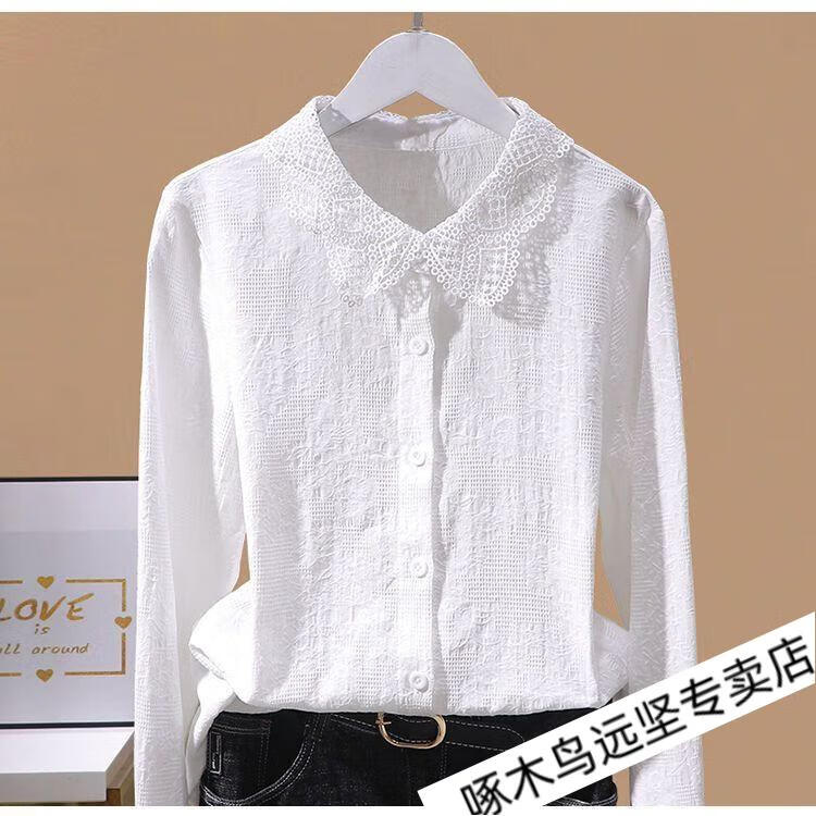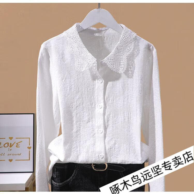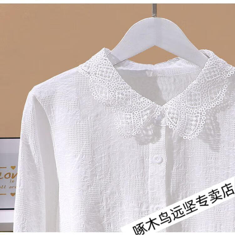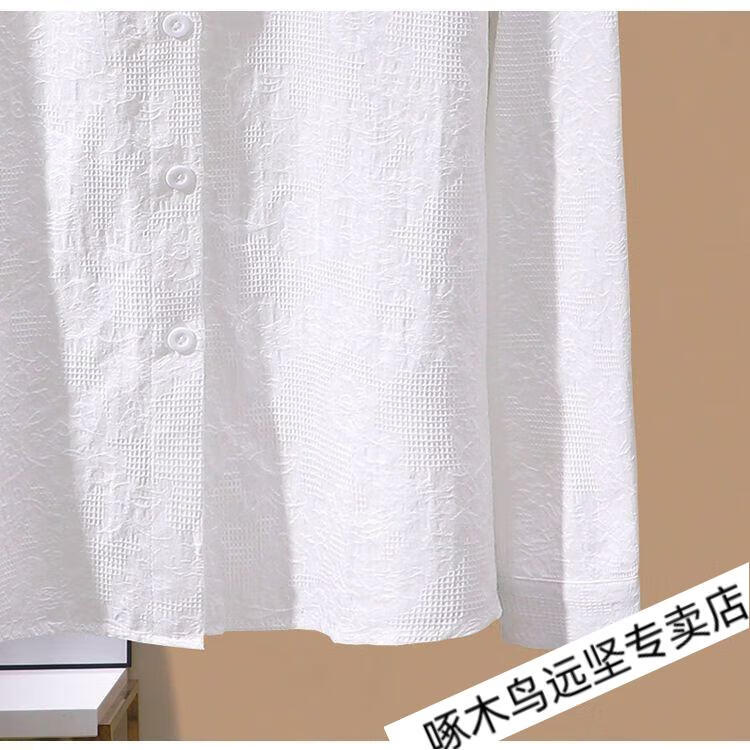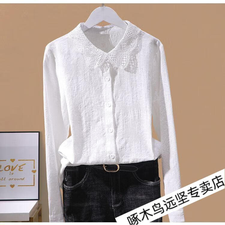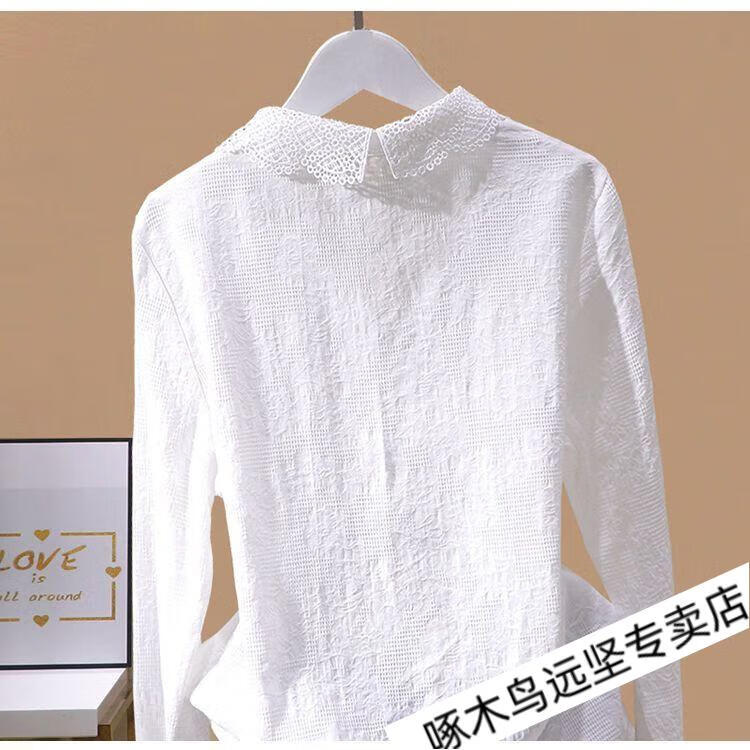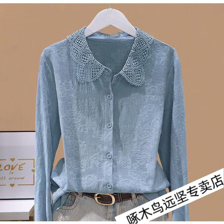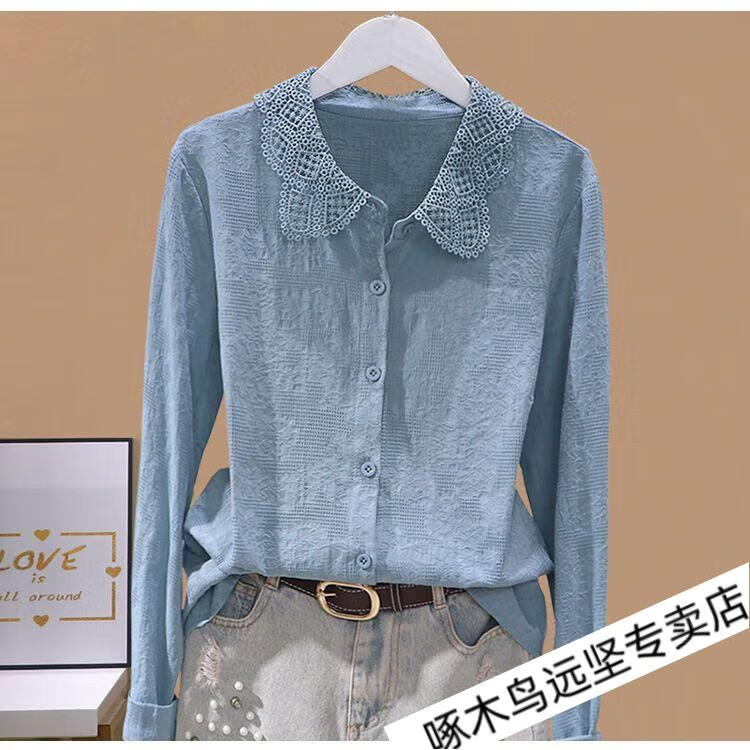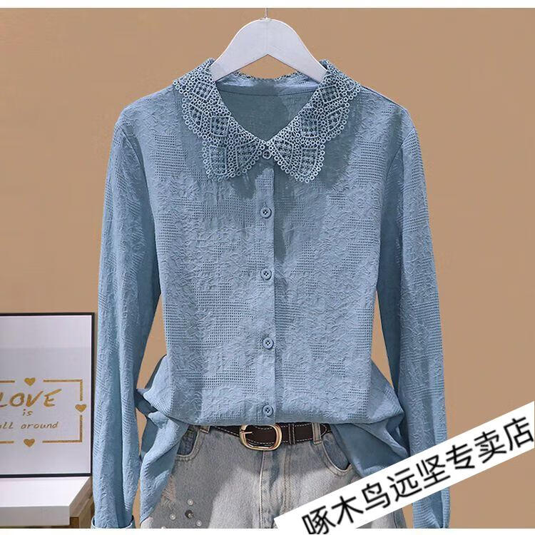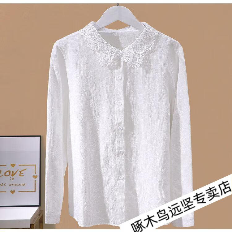Woodpecker Ramie Long Sleeve White Shirt Women's Cotton Linen Linen High-end Top Shirt Women's 2026 New Spring and Autumn New Korean Version Blue Long/Sleeve (Ready Stock Quick Delivery) L Recommendation 115-130Jin Jin equals 0.5 kg