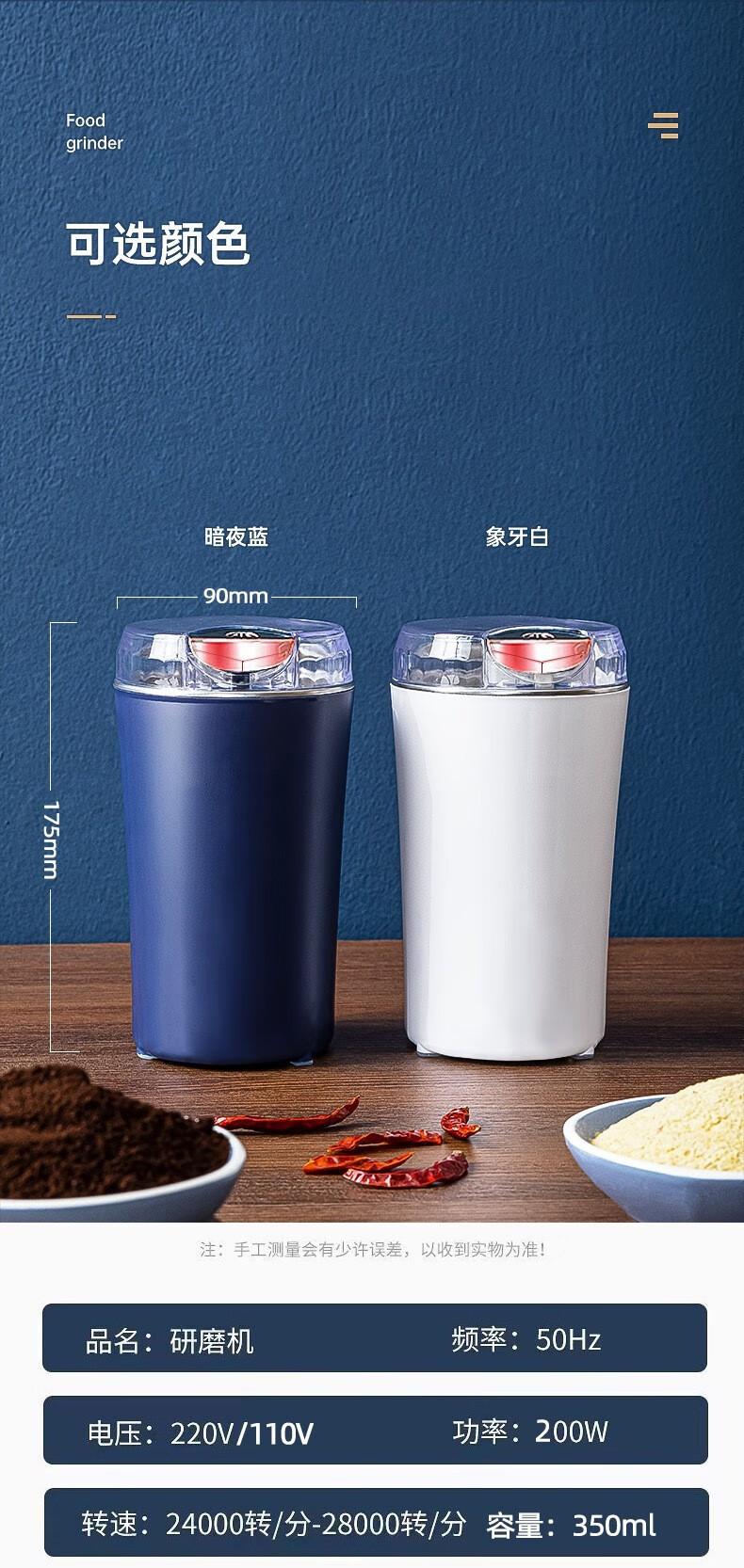 Lehongjun German grinding machine Western pill grinder ultra-fine household small electric grinder dry grinding pill grinder electric grinding artifact blue 250ml