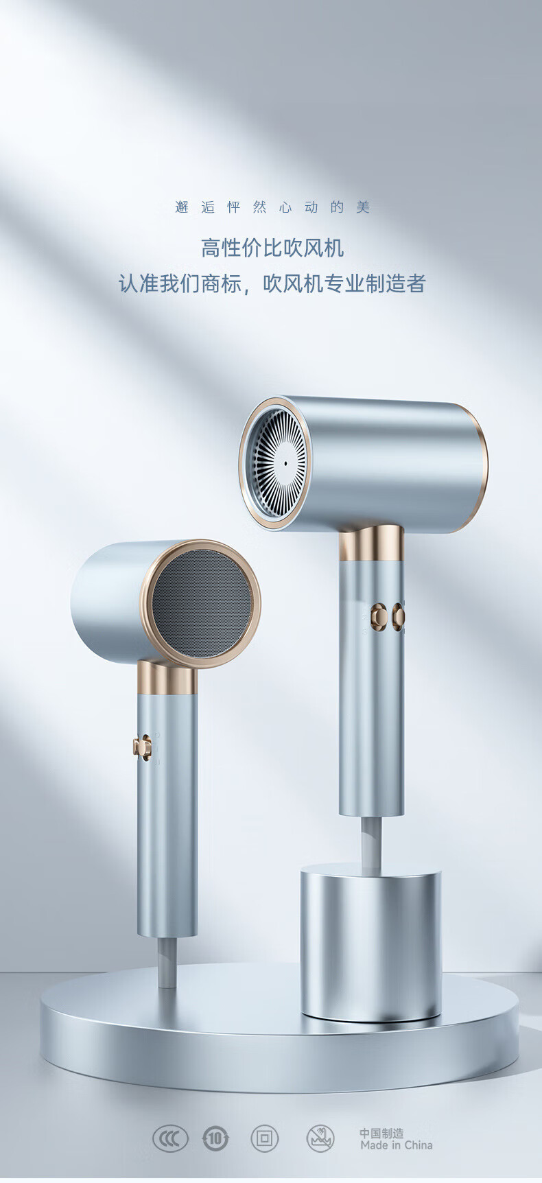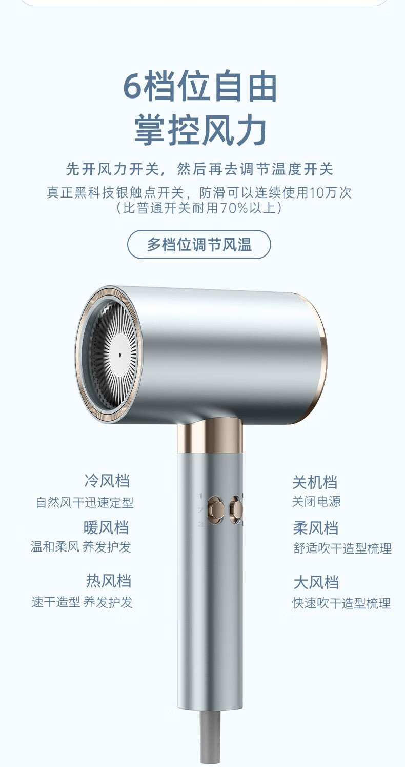 Sangsha high-speed hair dryer for hair use, household hair dryer, light sound, negative ions, high power, no harm to hair, high wind power, constant temperature, large air volume, quick drying electric air blower 2400W hair care hair dryer, high configuration and high rotation 2400w, porcelain white