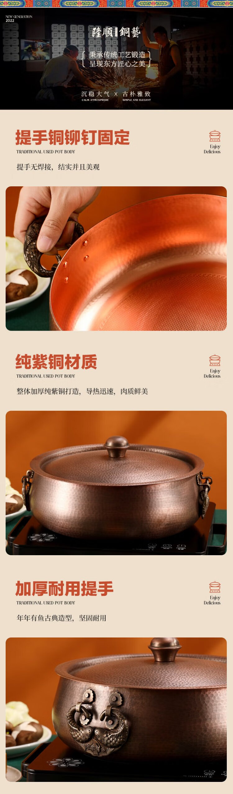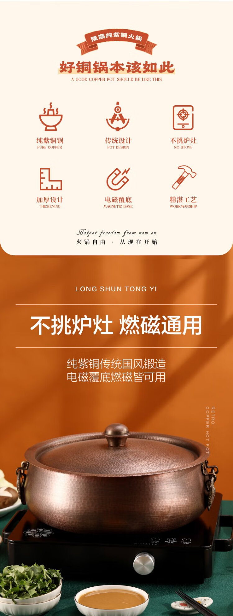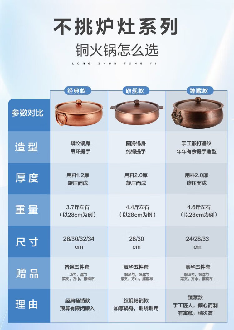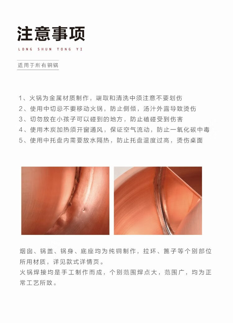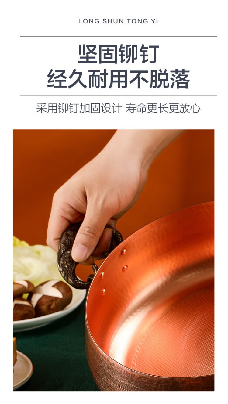 Longshun copper art thickened pure copper hot pot pot induction cooker flat bottom donkey hide gelatin copper pot hot pot Chongqing Sichuan hot pot household and commercial 28cm clear soup pot (more than every year) 6 people 28cm