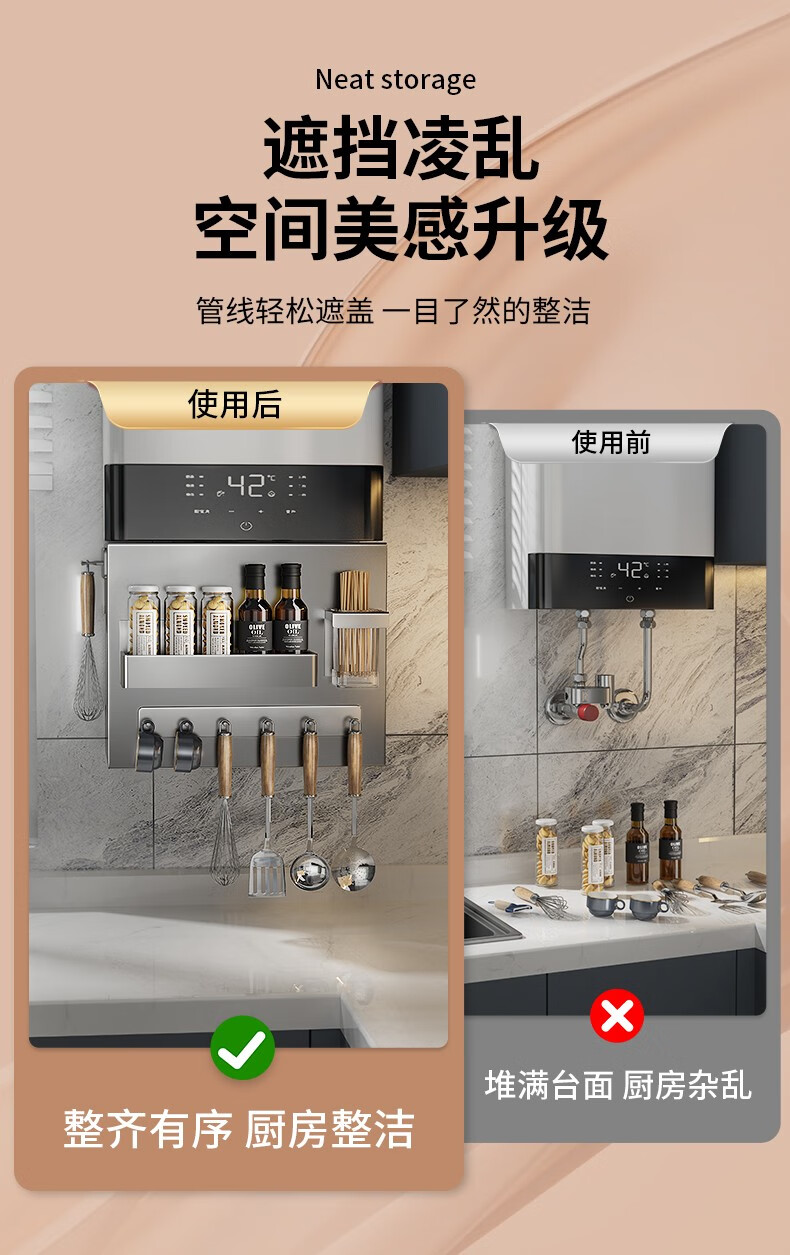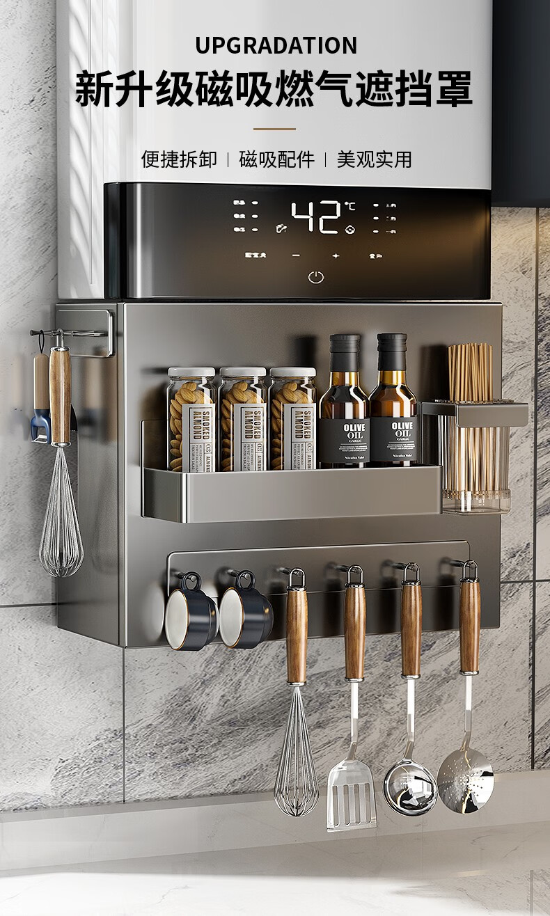 Duopeng gas hot water shielding cover free of punching hole board storage rack kitchen utensil hooks to hide ugly pipe decoration supplies holeless magnetic suction 35 wide * 40 high five-piece set 2