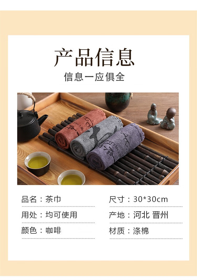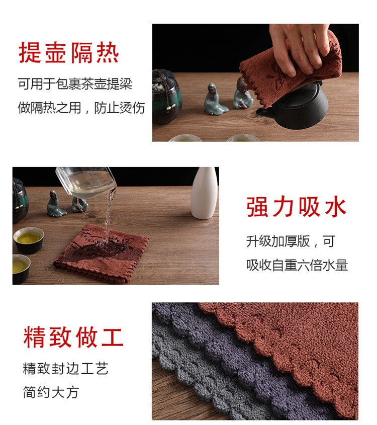 Baxi (BAXI) high-end tea towel cloth thickened absorbent towel tea table cloth rag pad tea set accessories tea wiping table tea table Zen coffee color one tea one world thickened absorbent 30*30cm