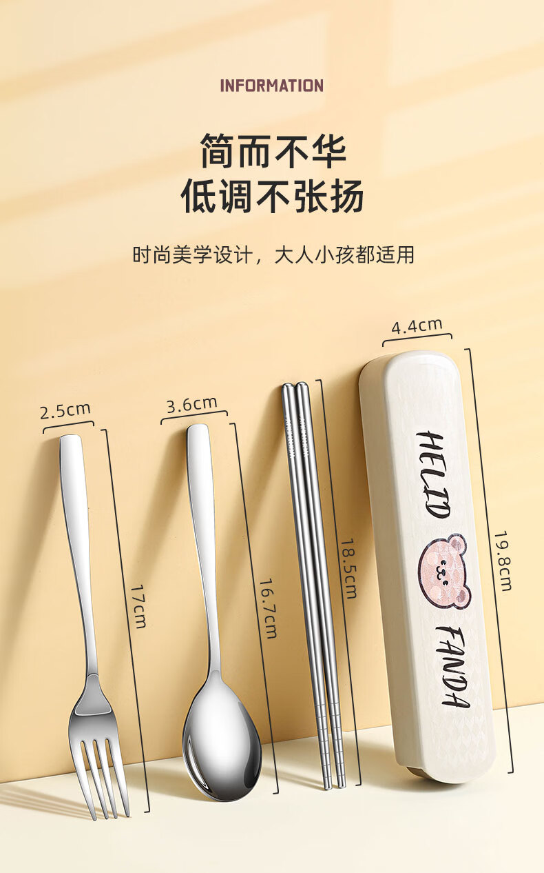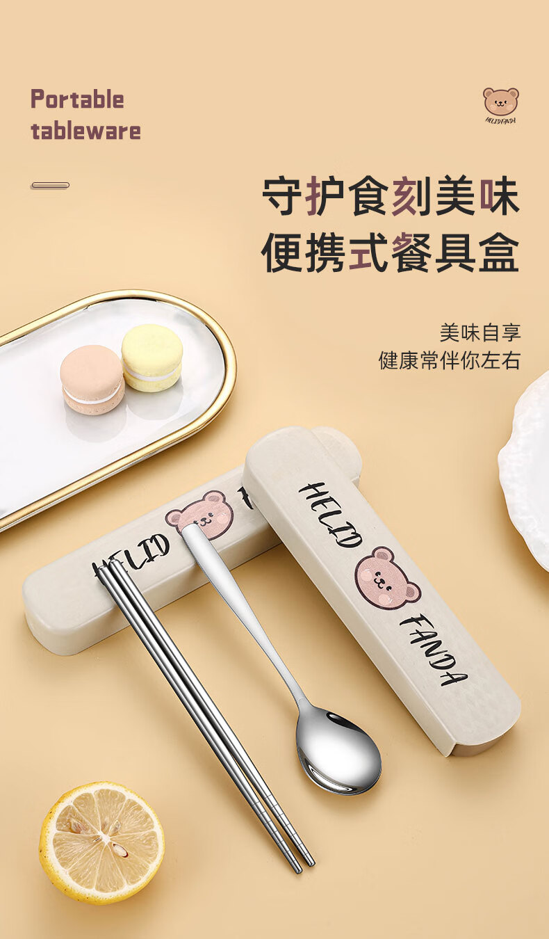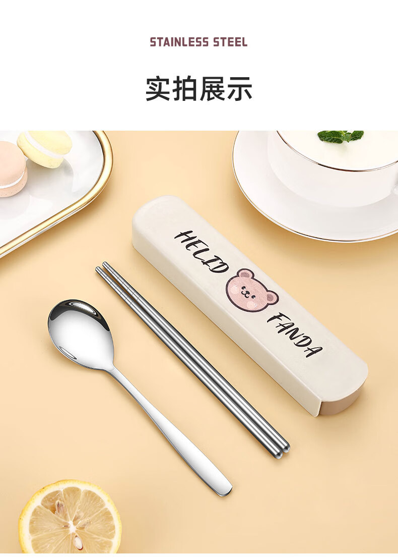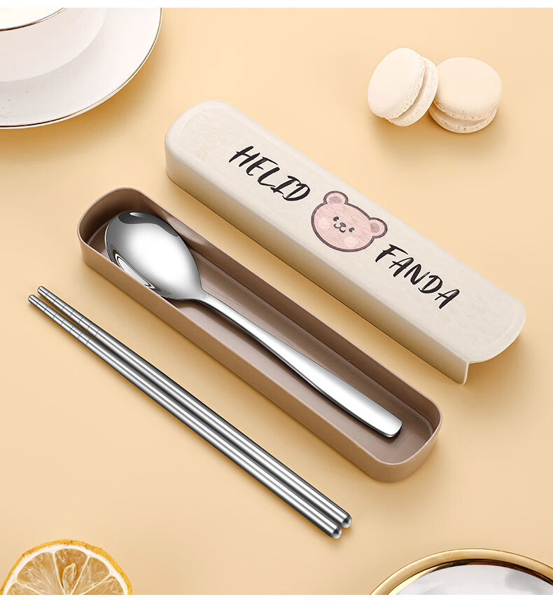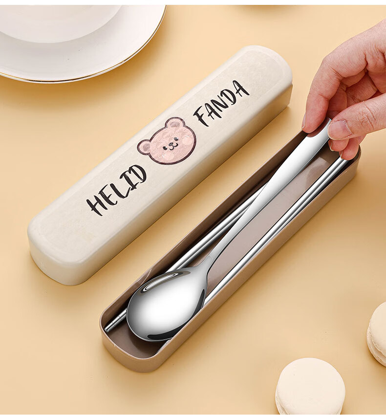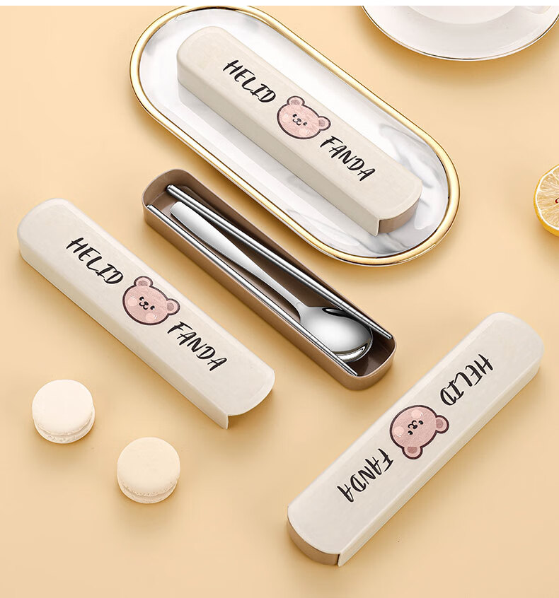 WORTHBUY student cutlery box storage empty box portable take-out travel student chopstick box children's household spoon single pack D style Mika bear