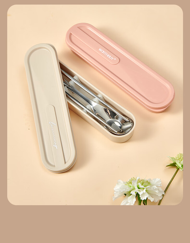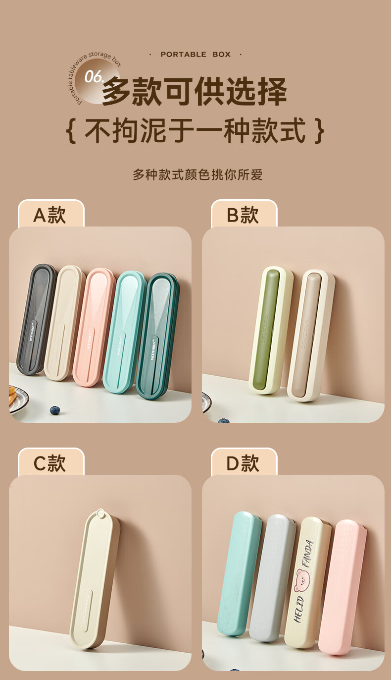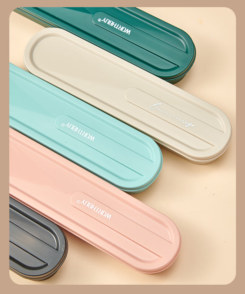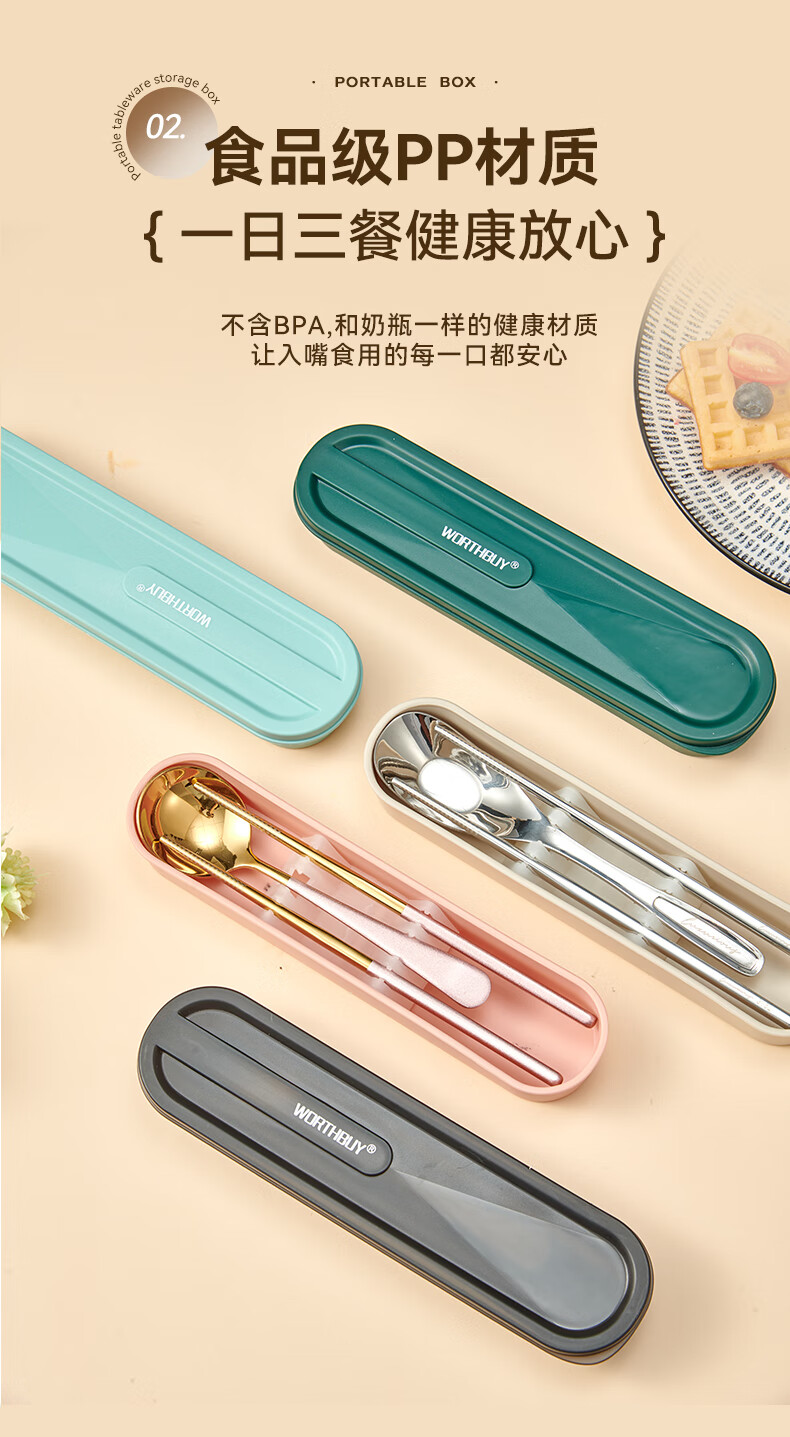 WORTHBUY student cutlery box storage empty box portable take-out travel student chopstick box children's household spoon single pack D style Mika bear