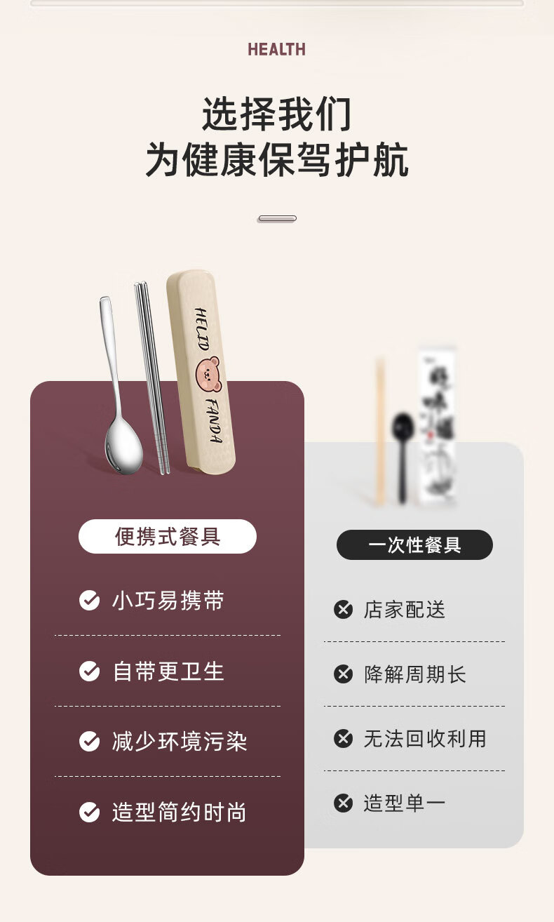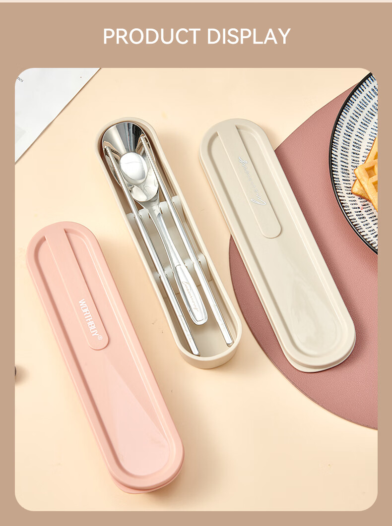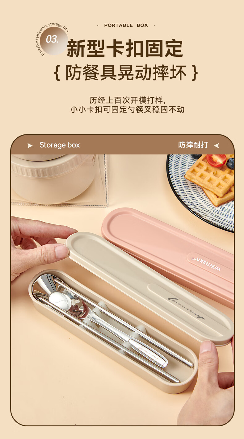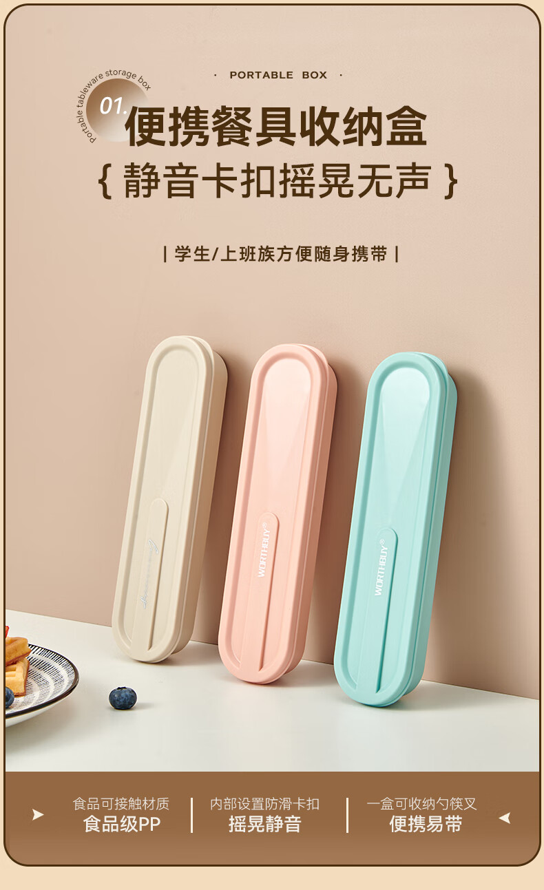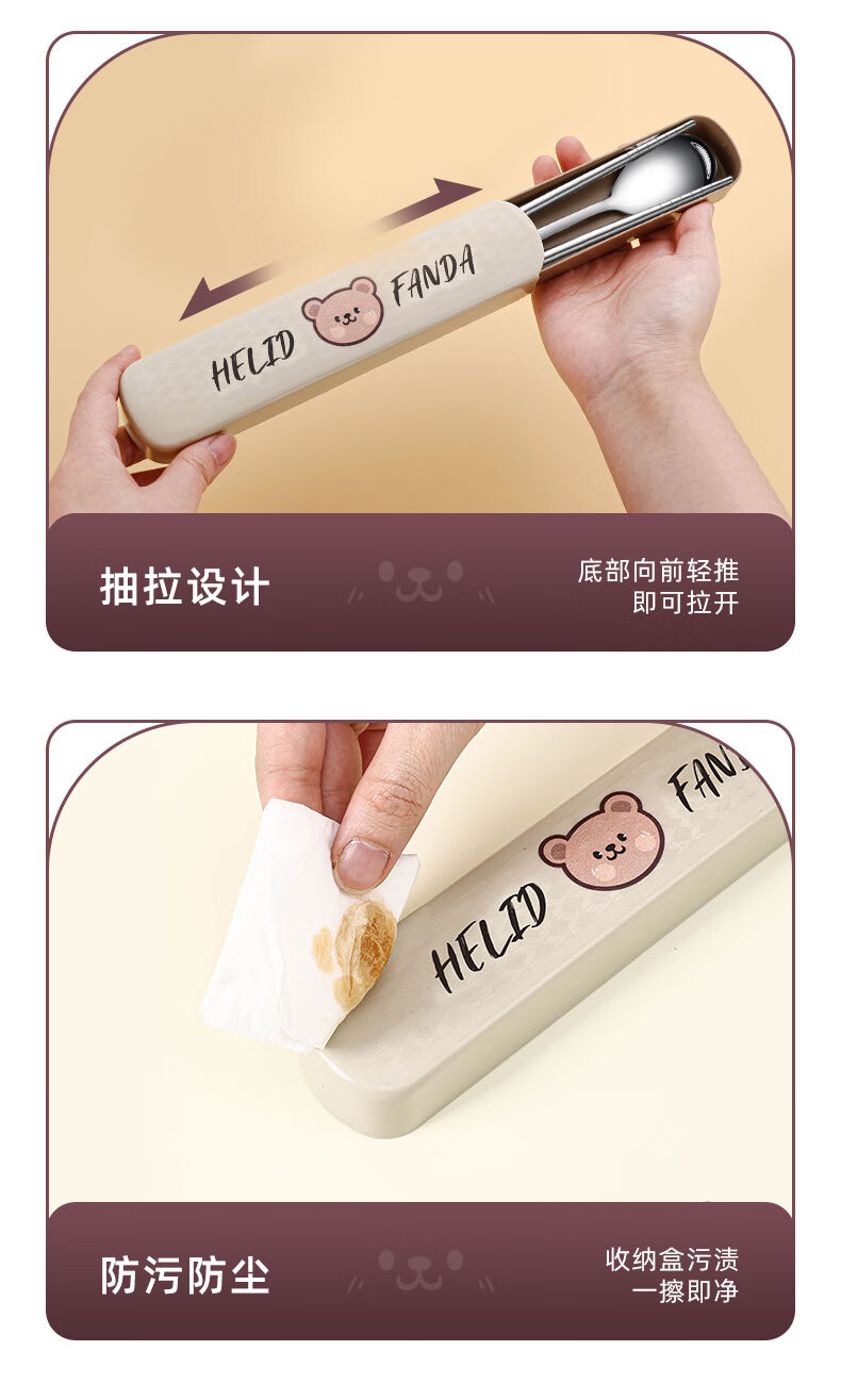 WORTHBUY student cutlery box storage empty box portable take-out travel student chopstick box children's household spoon single pack D style Mika bear