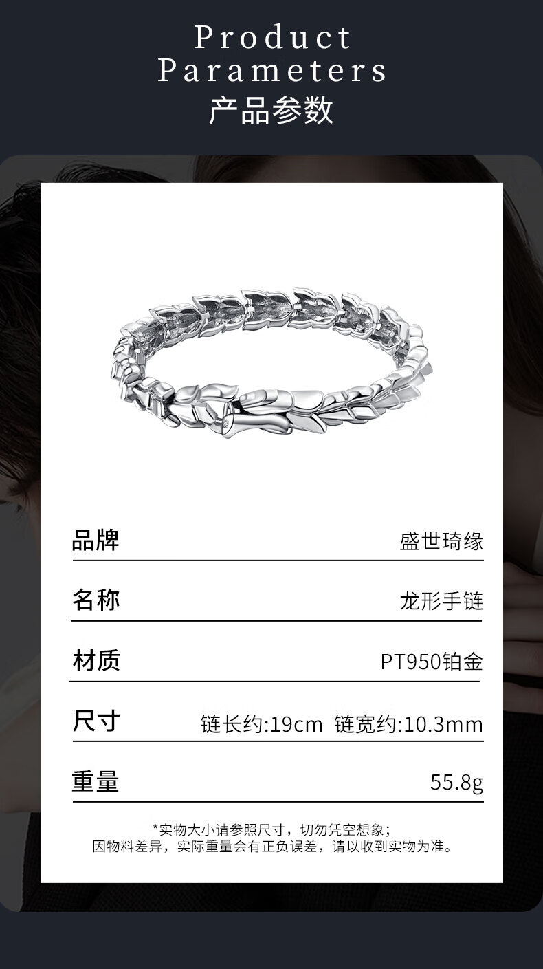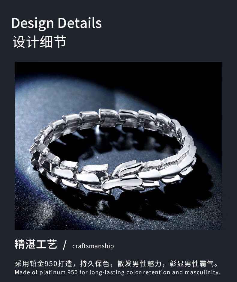 Shengshi Qiyuan pt950 platinum bracelet for men, high-end, generous and domineering platinum bracelet for men, trendy dragon-shaped bracelet, 18 cm, 44-46 g, about 10.3mm