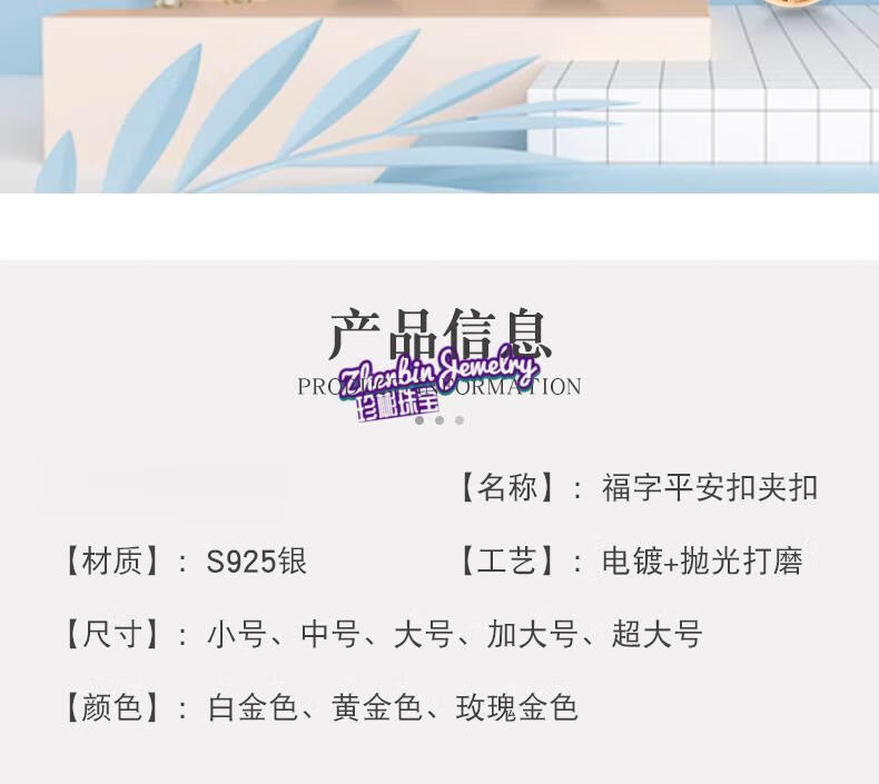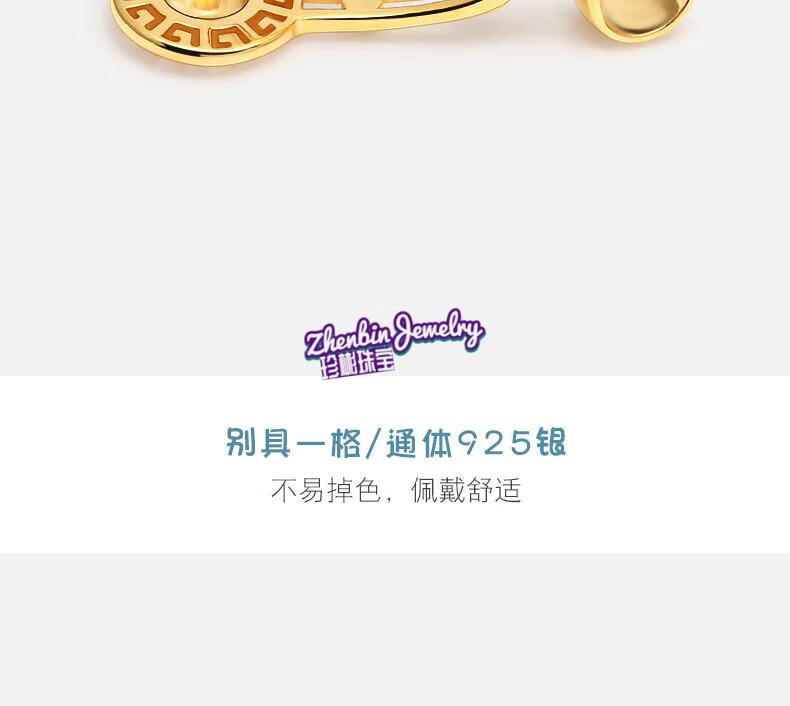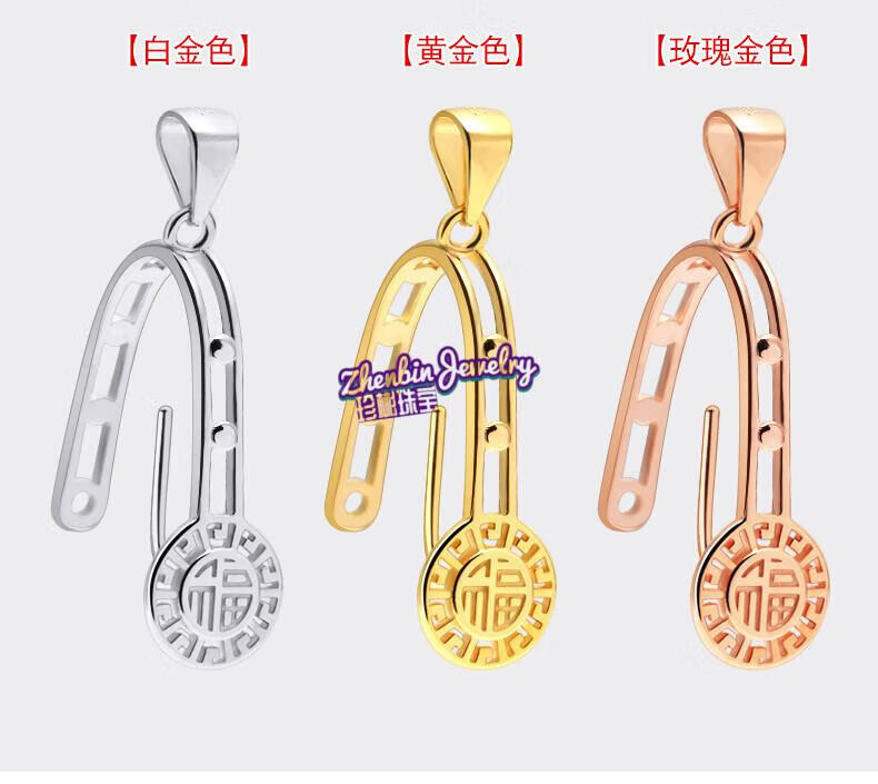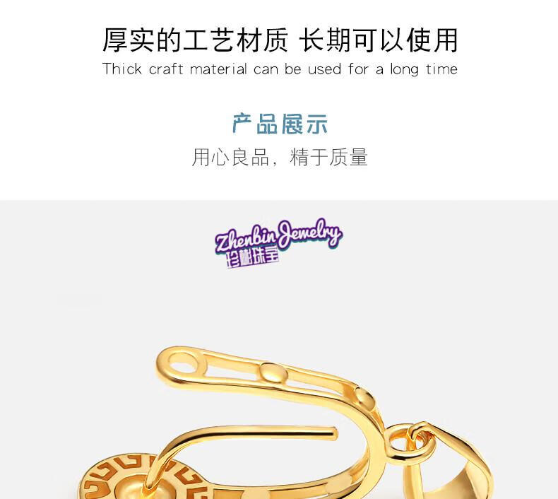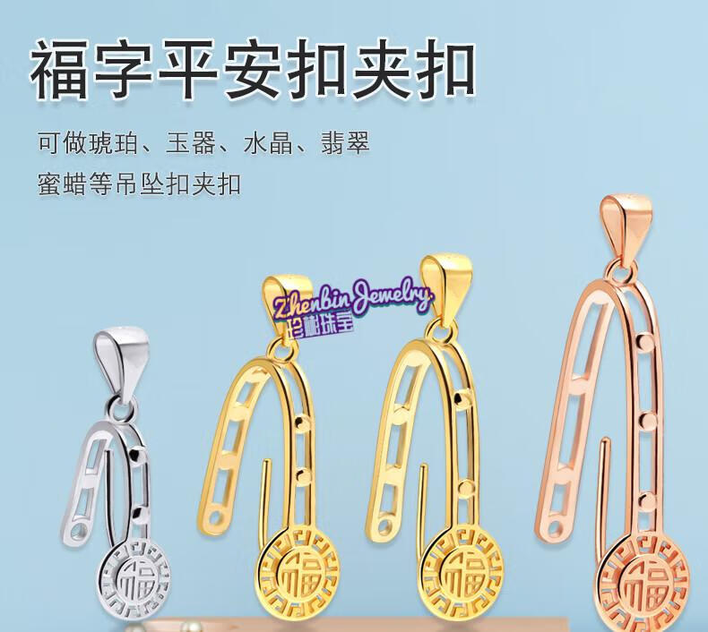 Fat Donglai's same Ping An buckle 18K gold Fu clip buckle amber 925 degree gold buckle head button large (gold color)