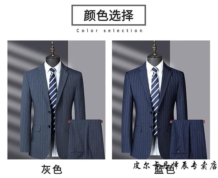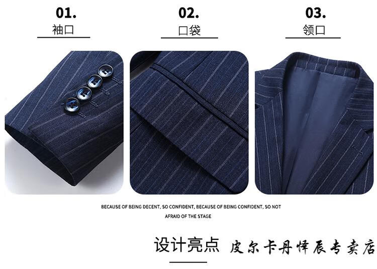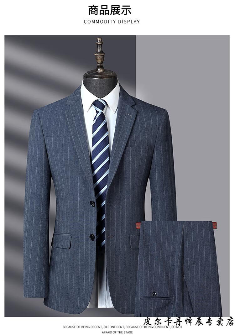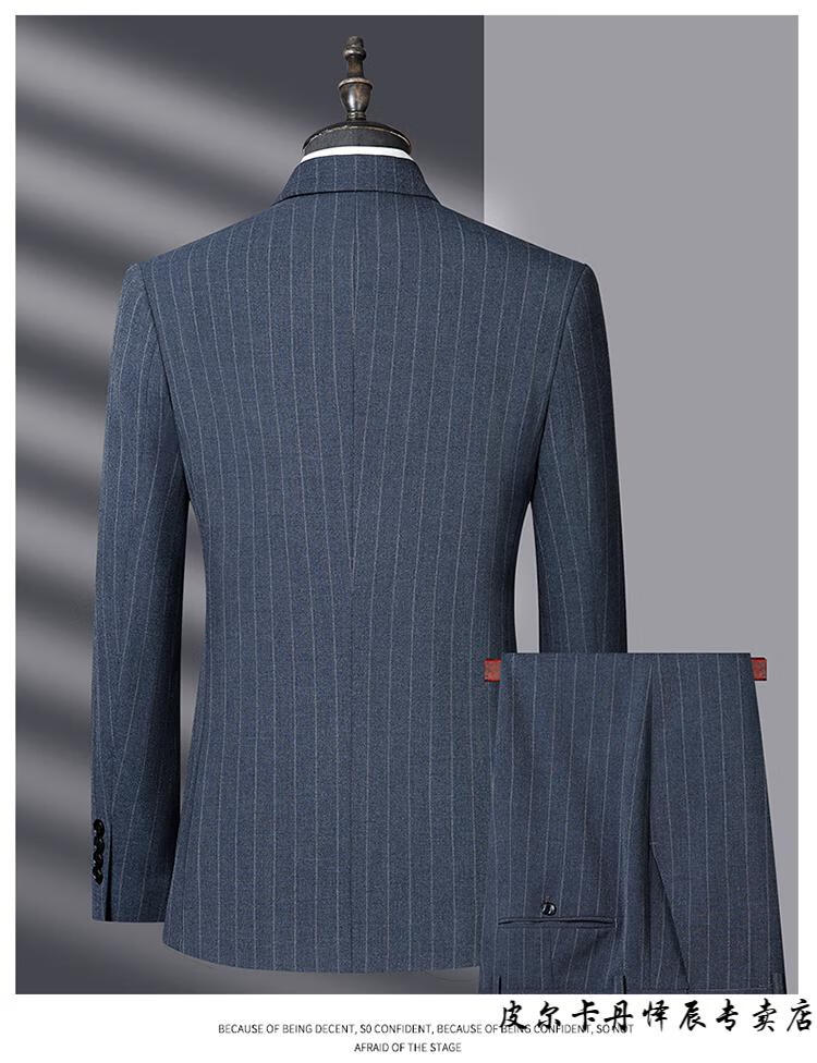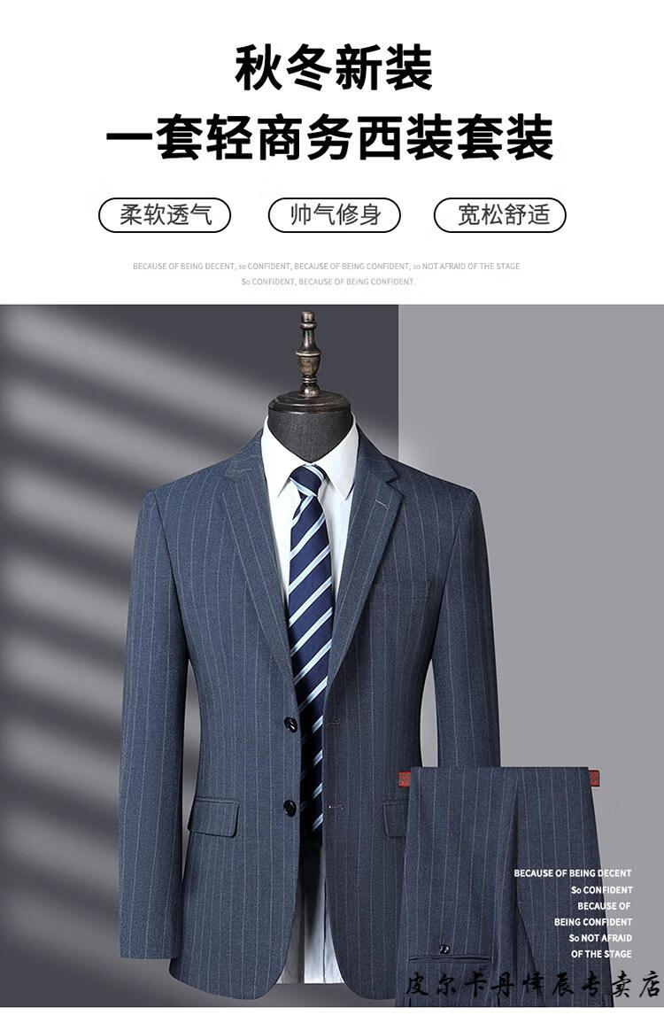 Pierre Cardin Striped Suit Men's Two-piece Suit Middle-aged Men's Business Dress Blue L 175 Size Recommended 125 Jin Jin is equal to 0.5 kg -135 Jin Jin is equal to 0.5 kg