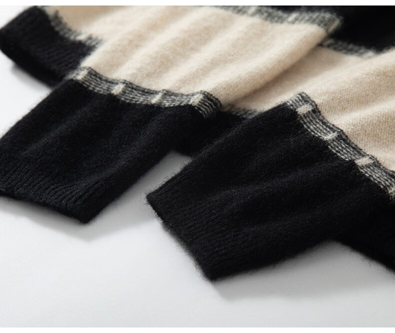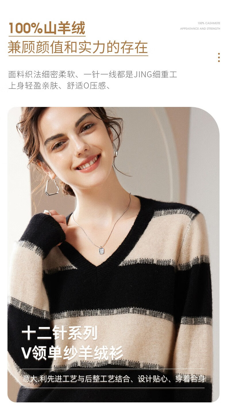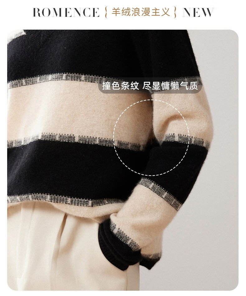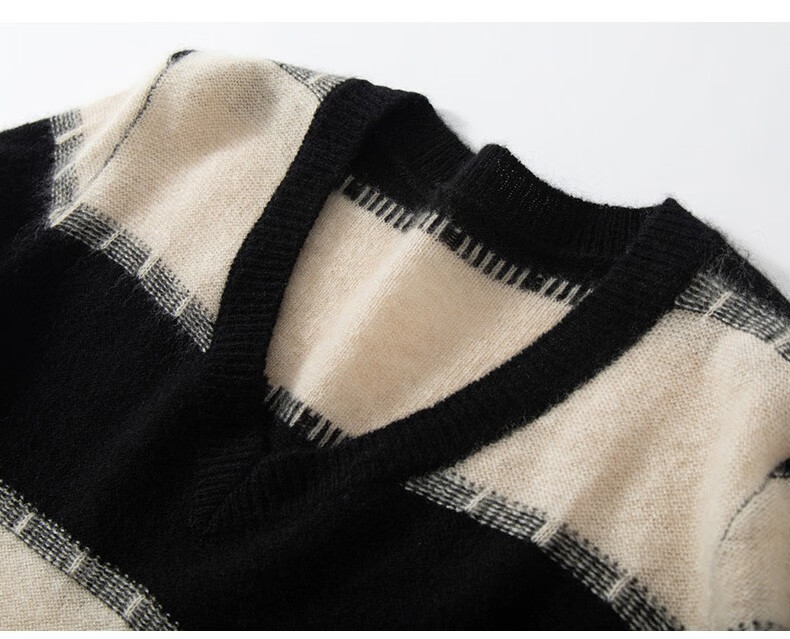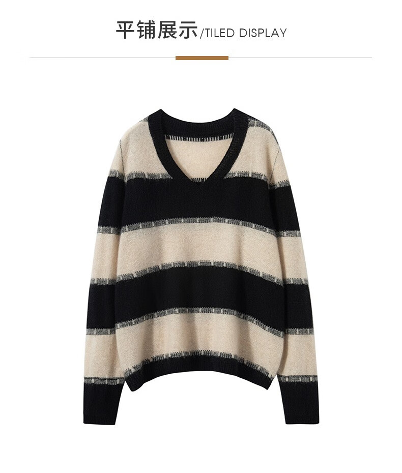Pash Cashmere Sweater Women's 100% Cashmere Autumn and Winter V-neck Single Yarn Loose Striped Knitted Sweater TY-3134 Green Velvet + Black One Size