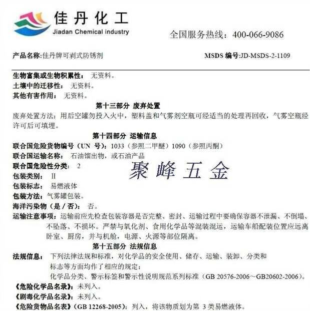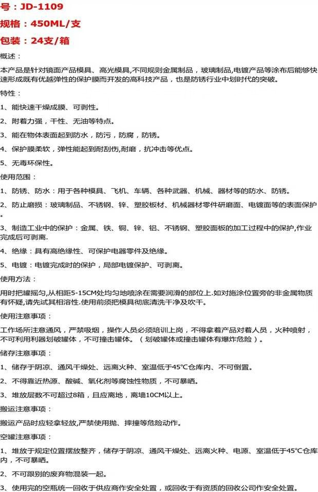 Anti-rust agent JD-1109 peelable anti-rust film anti-rust agent anti-rust oil waterproof anti-fouling anti-corrosion