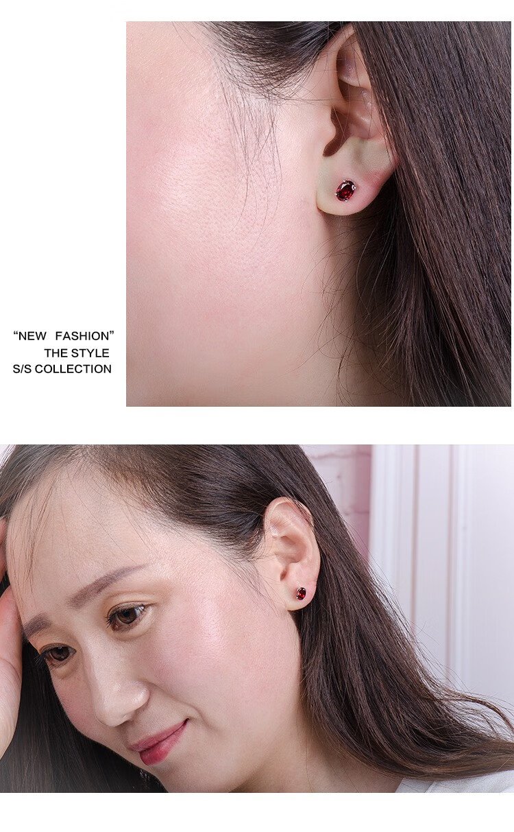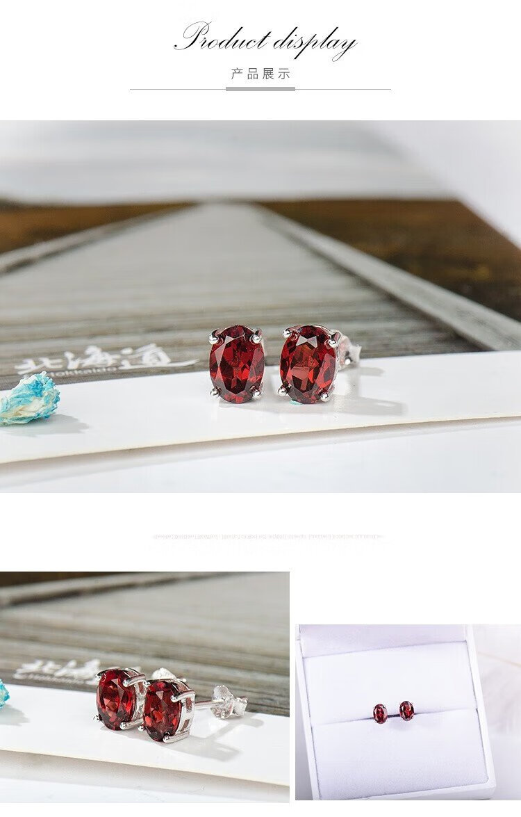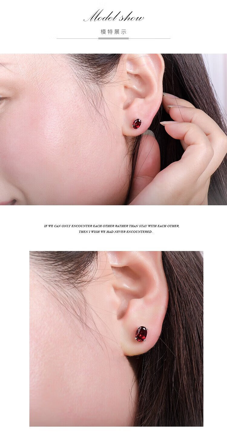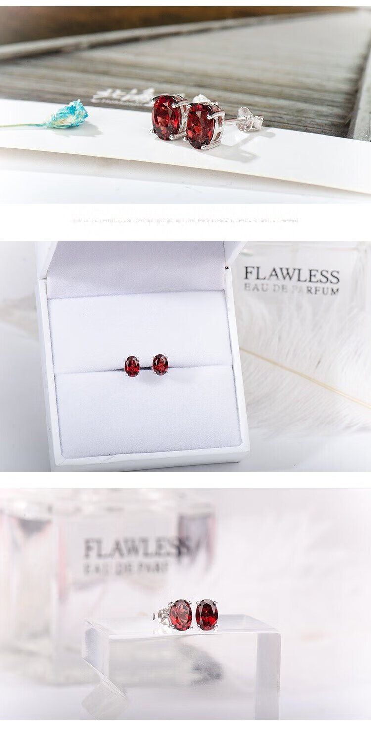 PHWULEE natural garnet earrings for women 925 silver women's earrings red gemstone light luxury simple exquisite simple versatile gift 2 carats