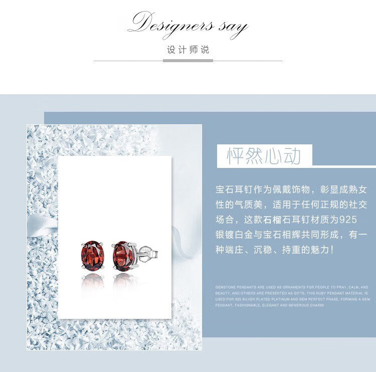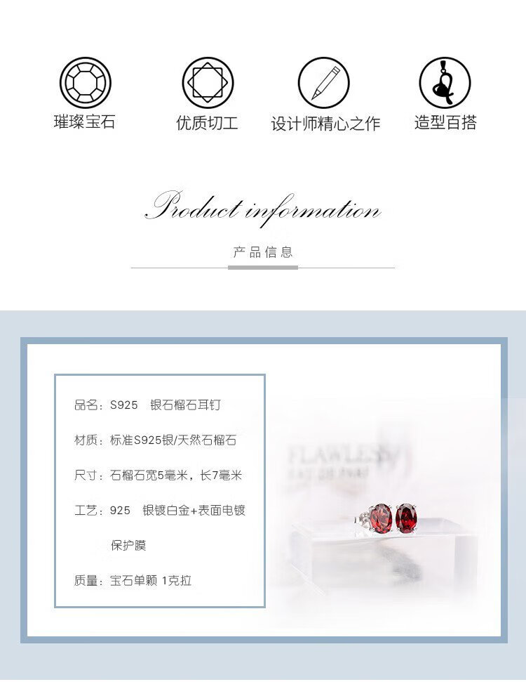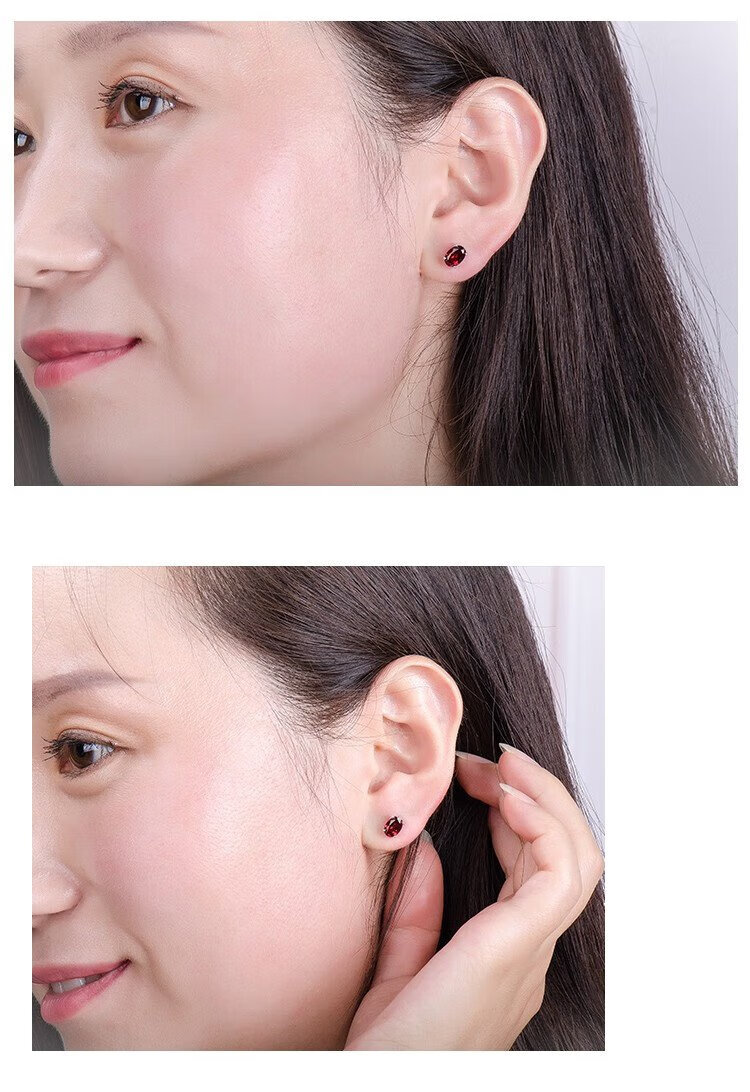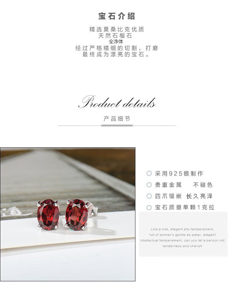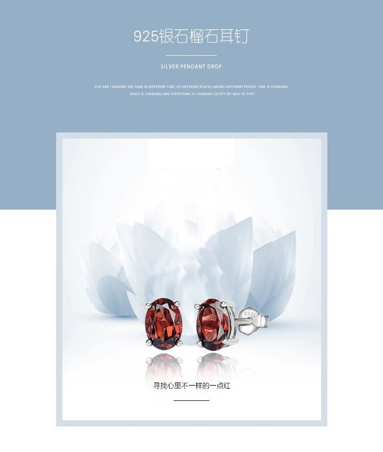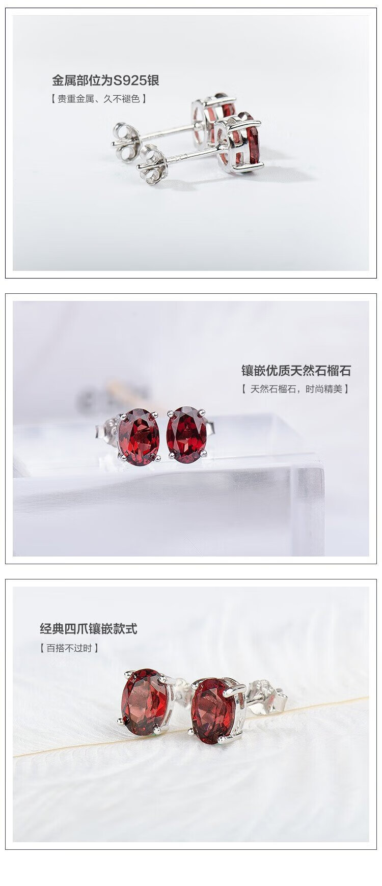 PHWULEE natural garnet earrings for women 925 silver women's earrings red gemstone light luxury simple exquisite simple versatile gift 2 carats