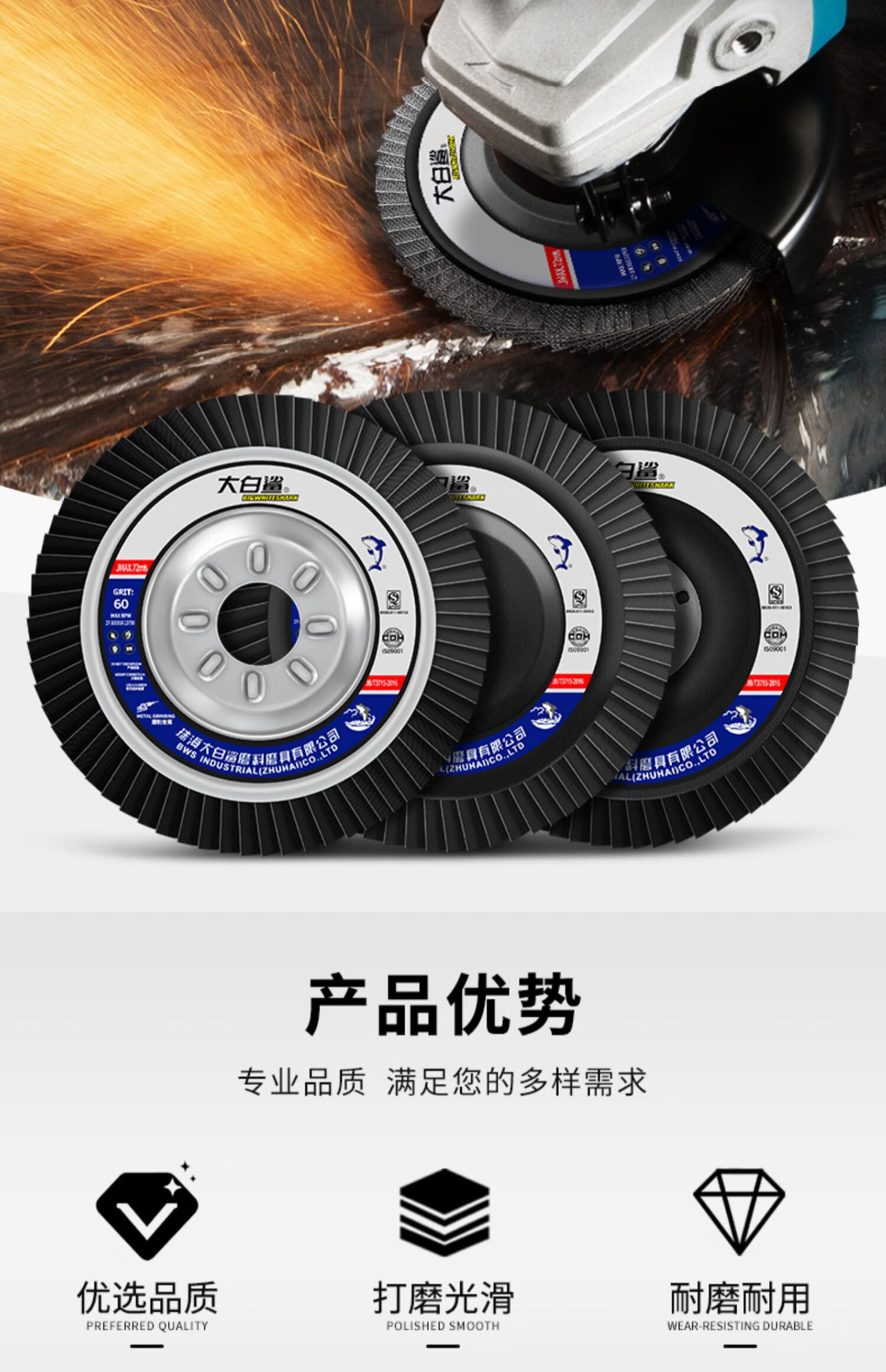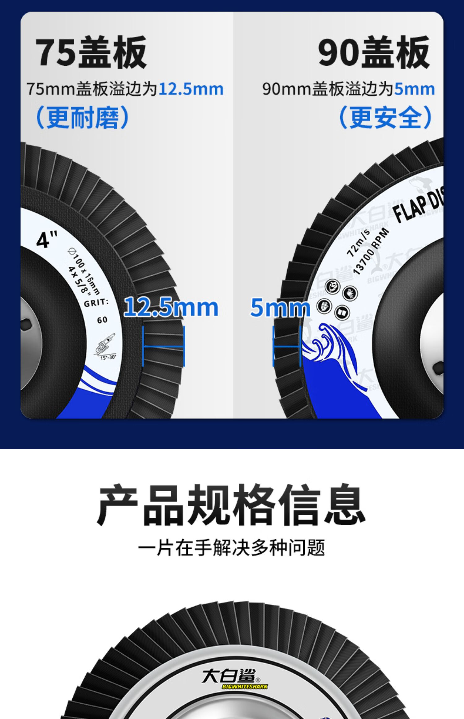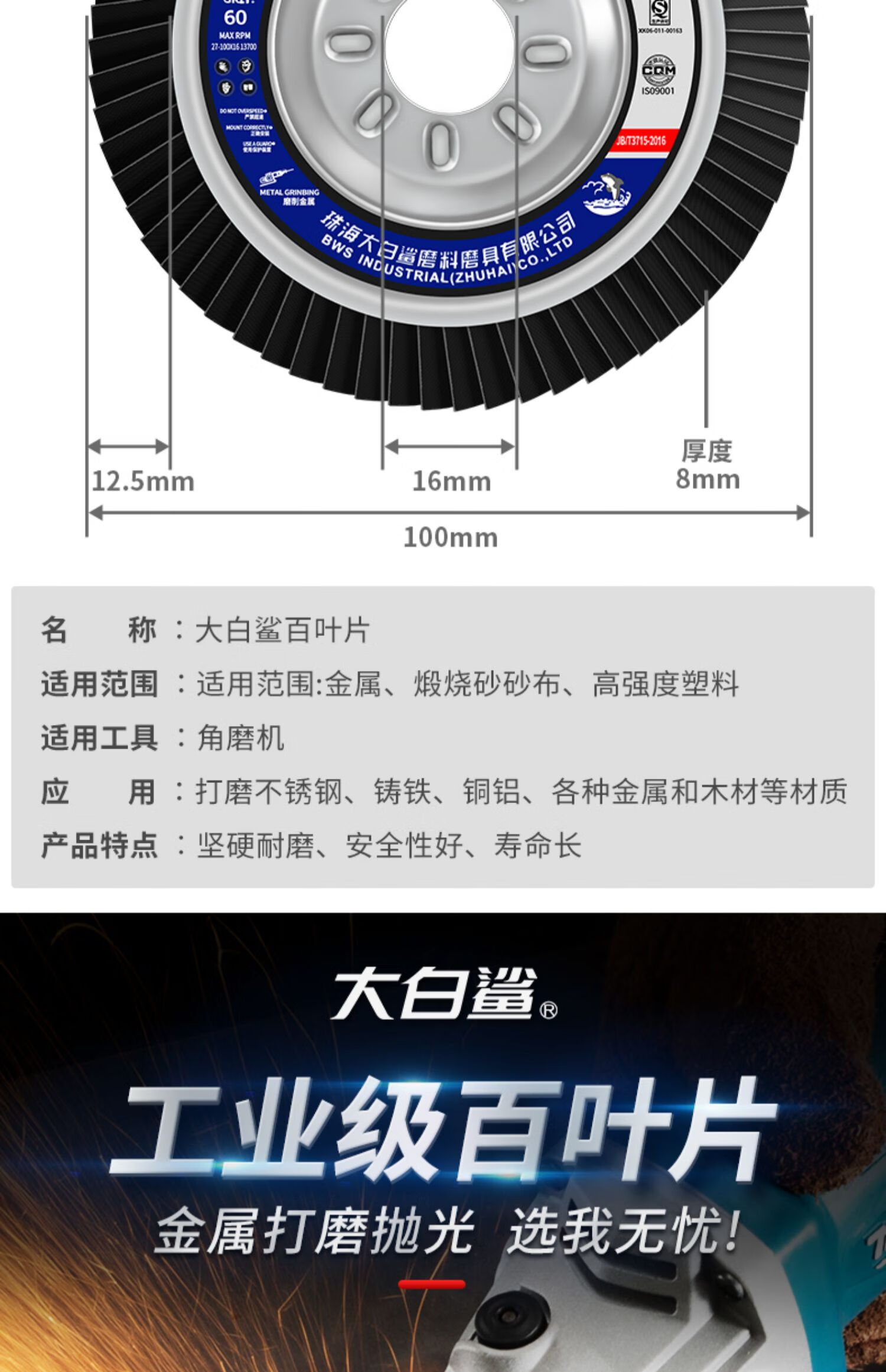 BIGWHITESHARK Great White Shark Louver Blade Stainless Steel Polishing Blade Louver Wheel Polishing Blade Angle Grinder Polishing Wheel Flower Impeller Abrasive Cloth Wheel 75 Plastic Cover 60 Mesh 40 Pieces