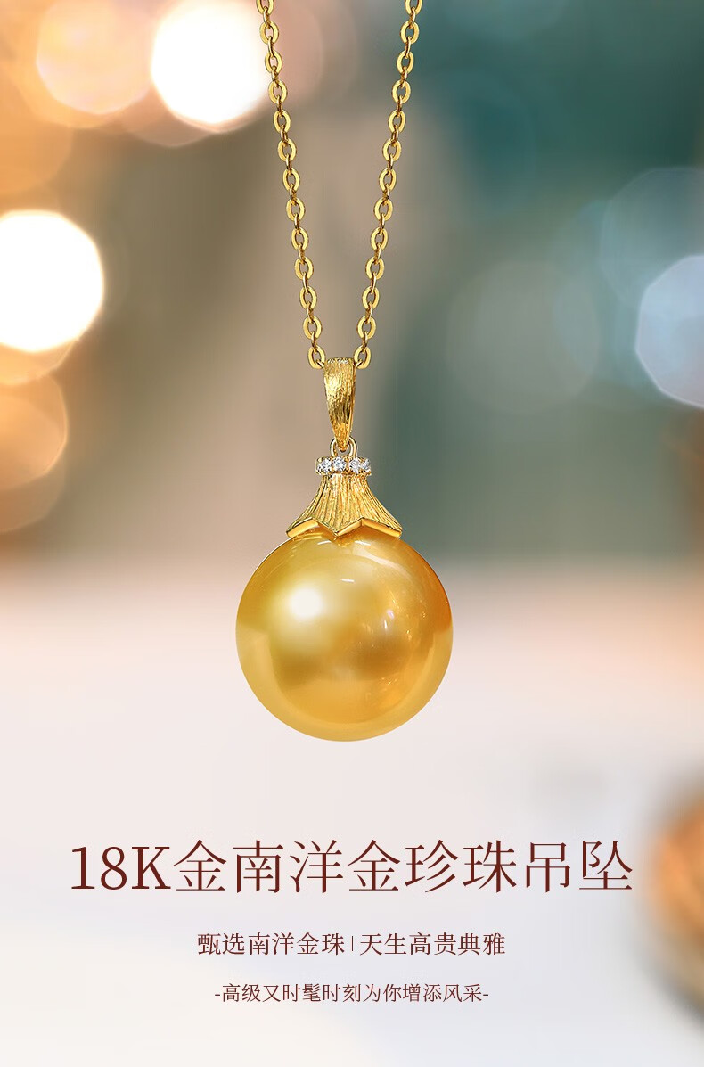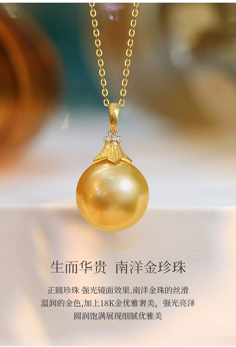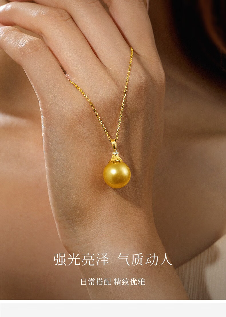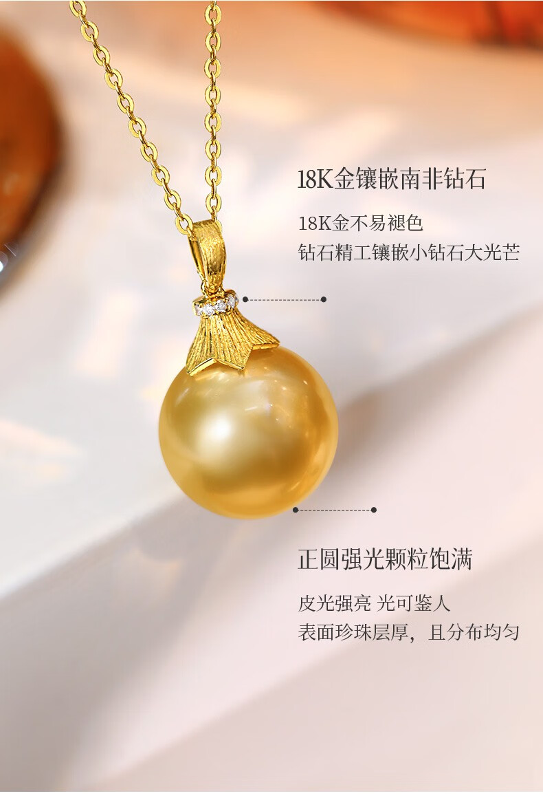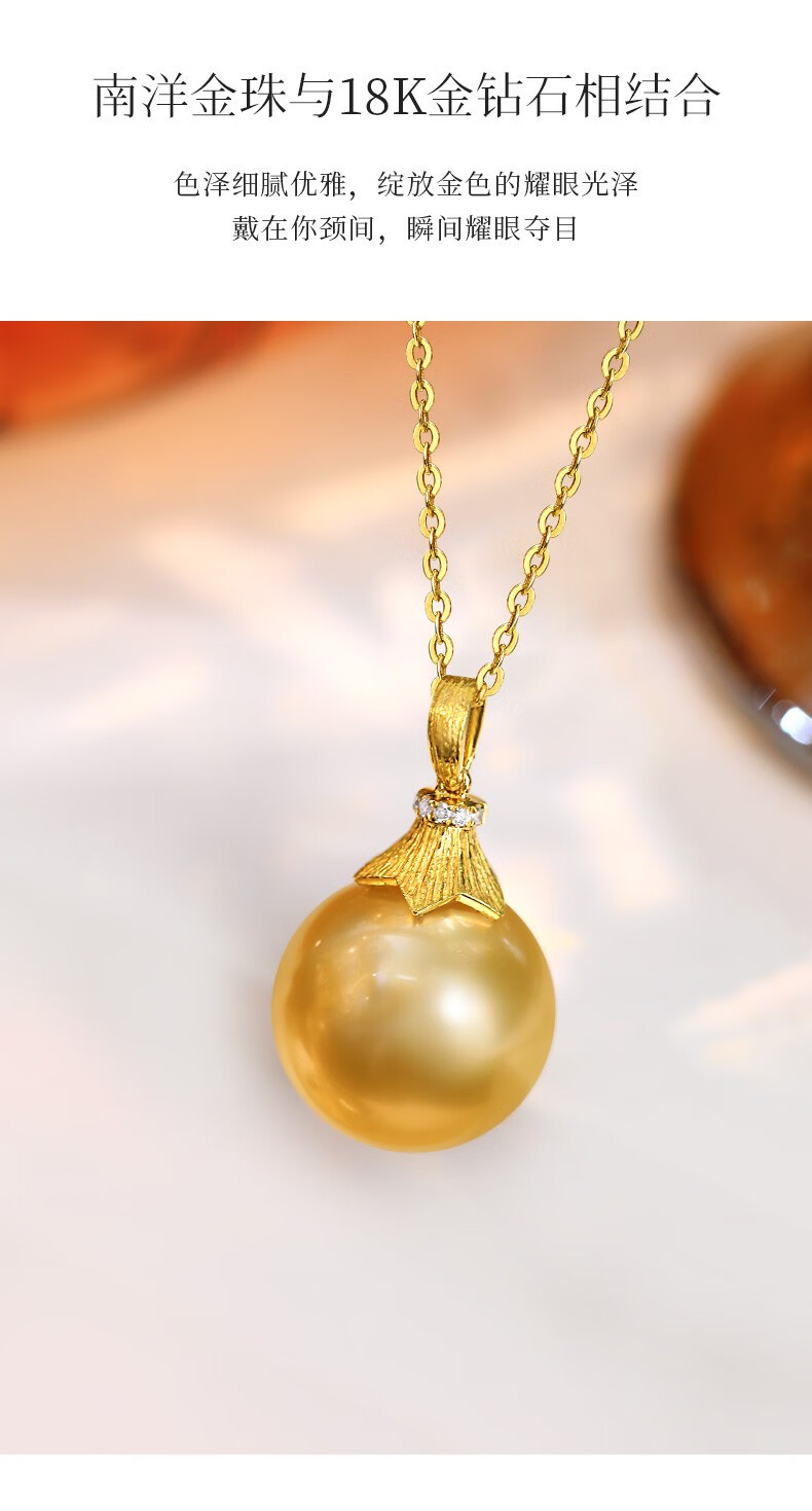 Happy Diamond Yellow 18K Gold South Sea Gold Pearl Pendant Women's Silk Gold Pearl Necklace Clavicle Chain Birthday Gift Yellow 18K Gold South Sea Silk Gold 12.5-13mm