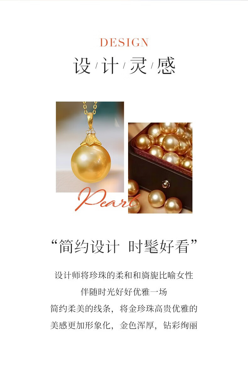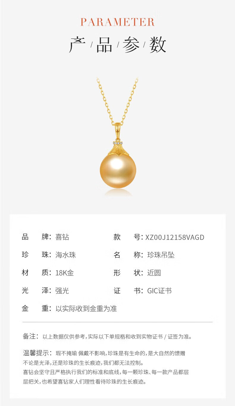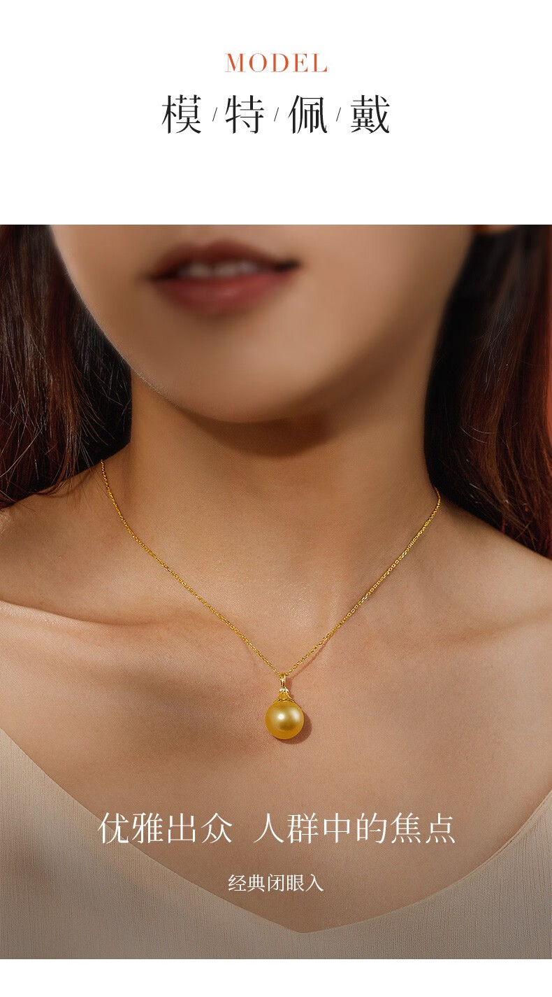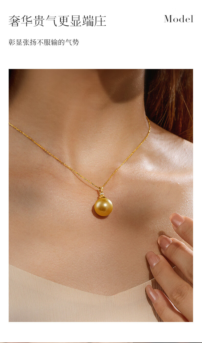 Happy Diamond Yellow 18K Gold South Sea Gold Pearl Pendant Women's Silk Gold Pearl Necklace Clavicle Chain Birthday Gift Yellow 18K Gold South Sea Silk Gold 12.5-13mm