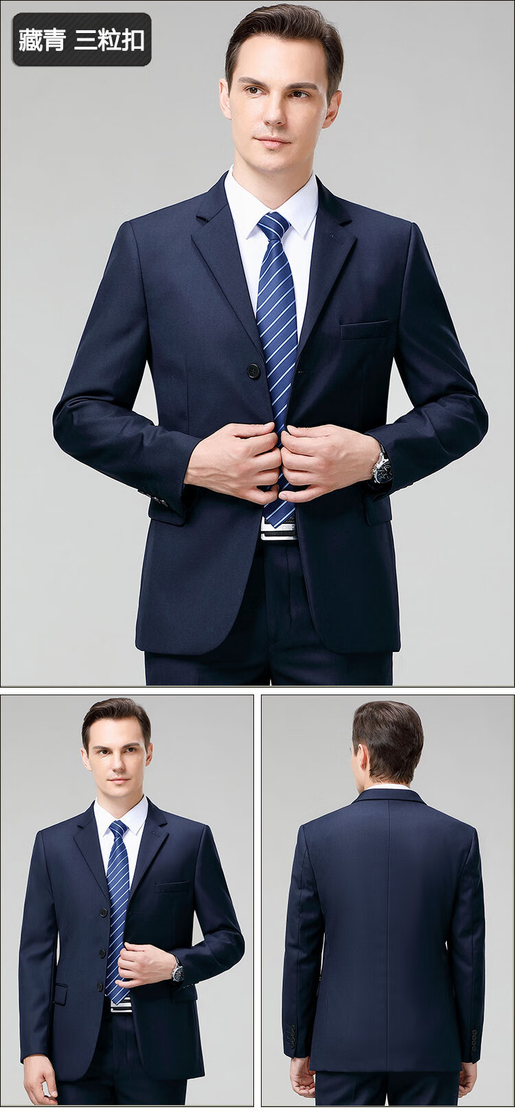 Pierre Cardin high-end men's suit suit middle-aged business casual professional formal wear spring and autumn groom wedding jacket no-iron dress 8810 navy (two buttons) four seasons style without slit 175/92A