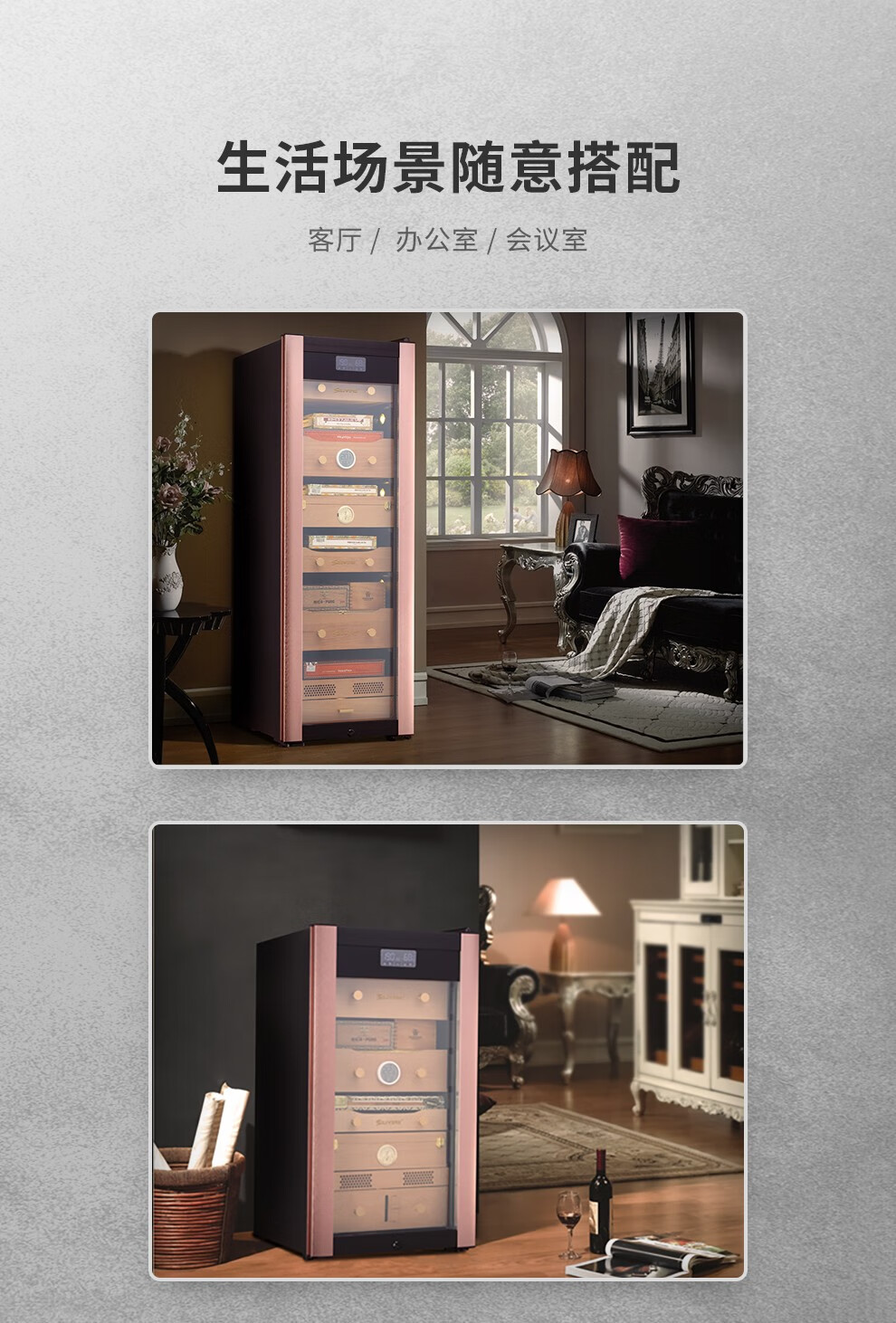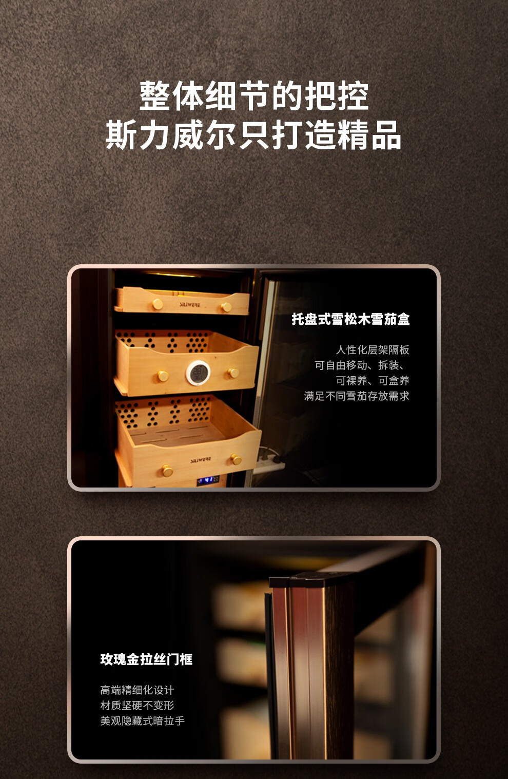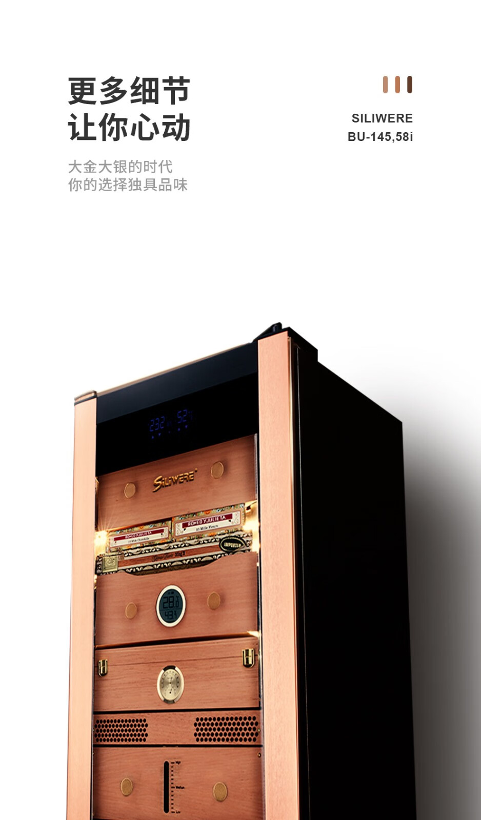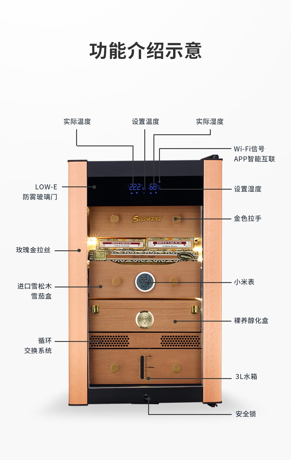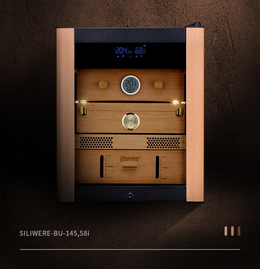 SILIWERE cigar cabinet constant temperature and humidity cigar cabinet custom cigar cabinet 560H high black titanium brushed LCD WiFi alcohol 56L exclusive version