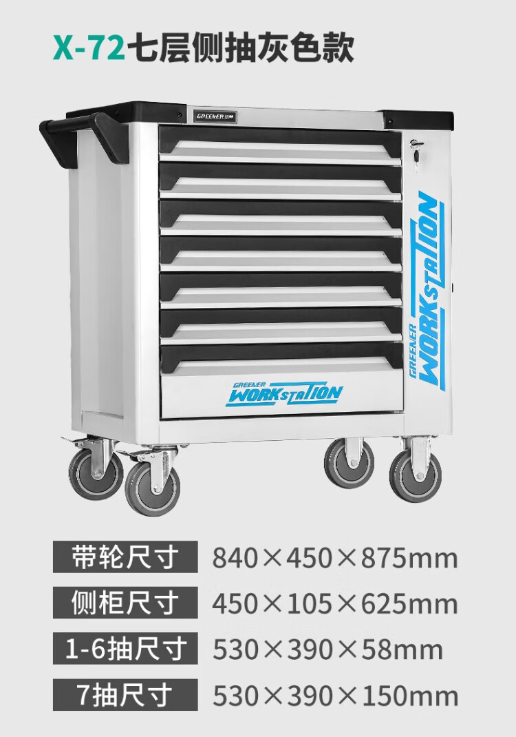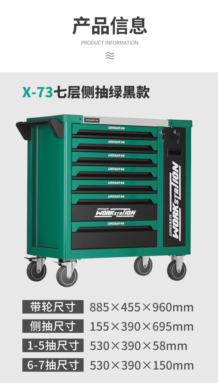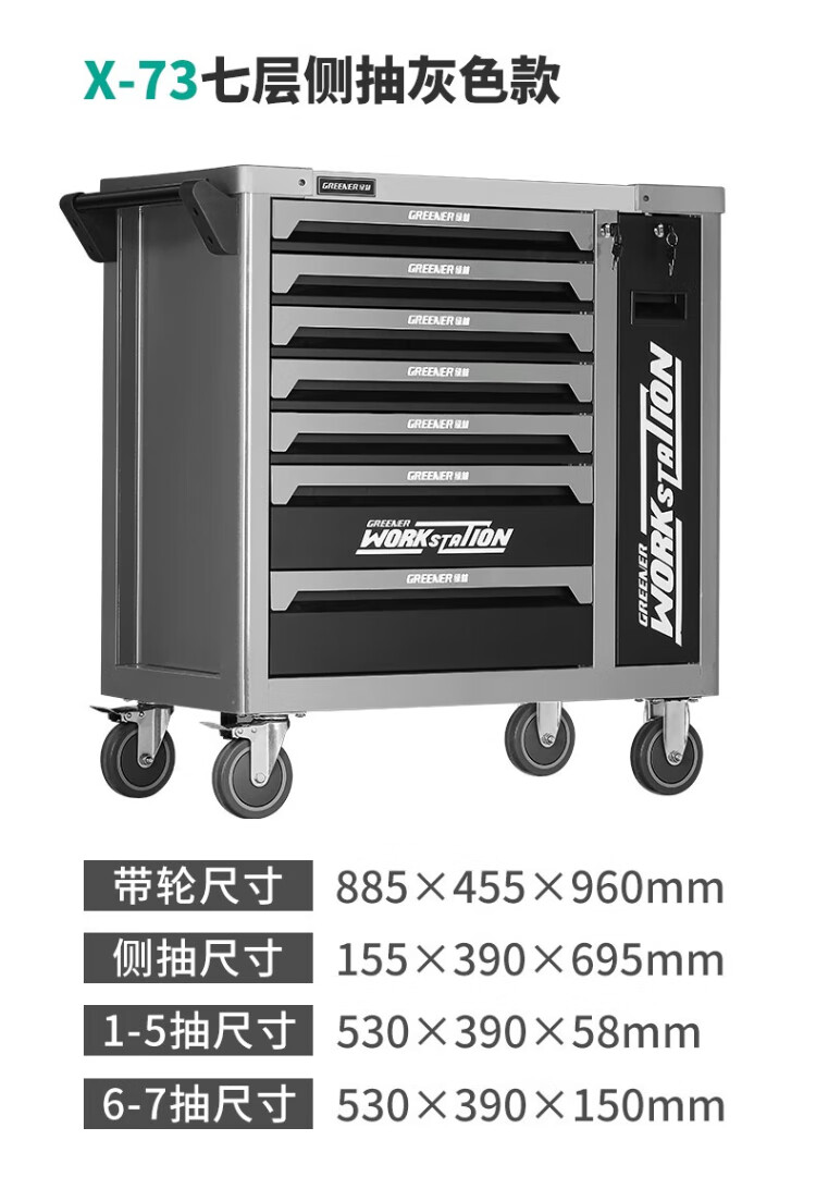 GREENER Auto Repair Tool Cart Heavy-duty Tool Cart Auto Repair Hardware Tool Box Multi-Function Repair Trolley Workshop Tool Cabinet Flagship Model X76 Seven-Layer Auto Repair Set