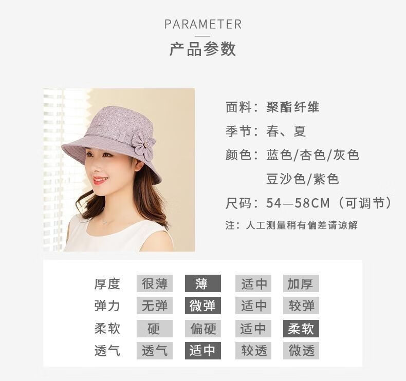 Qiuzengchun autumn hat women middle-aged and elderly women's hat mom sun hat basin hat fisherman hat small brim casual cloth hat elderly hat purple adjustable 54-58
