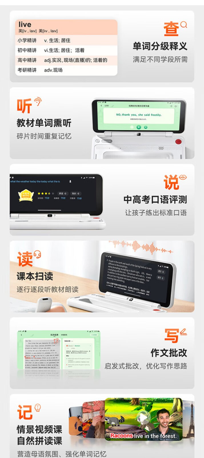 Meow Meow machine AI multifunctional tutoring machine learning machine learning pen dictionary pen three-in-one junior high school and ninth grade teaching materials synchronous learning super large screen reading pen Erudite Edition free wrong question machine + Bluetooth machine 16GB