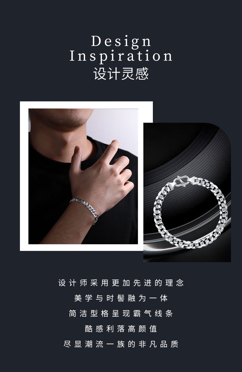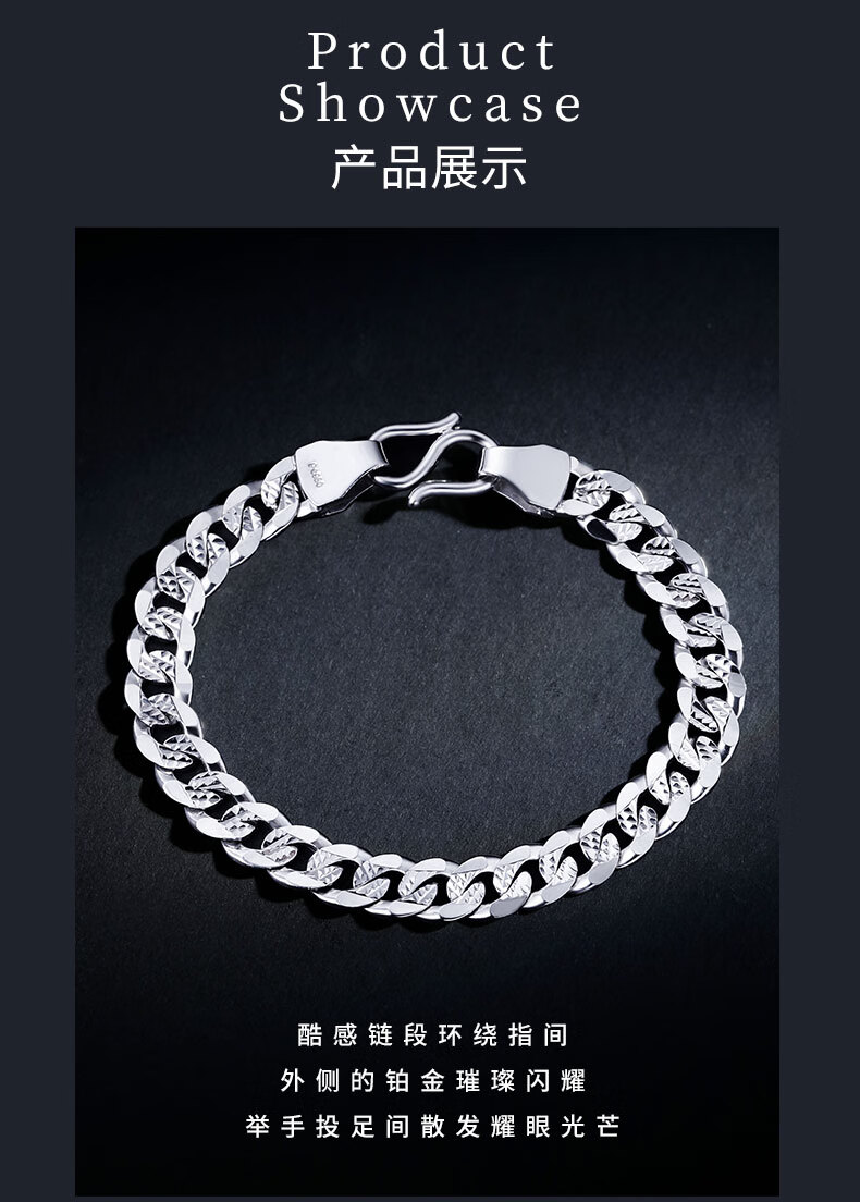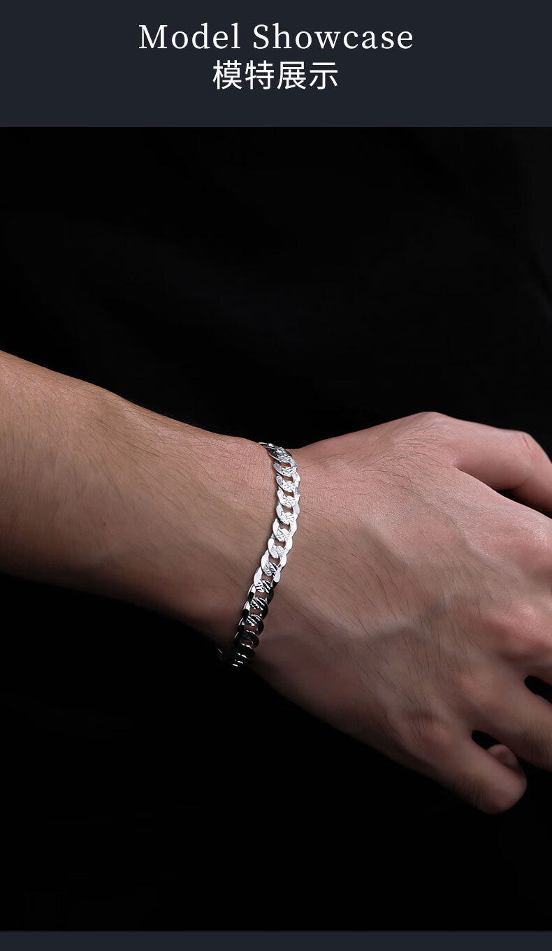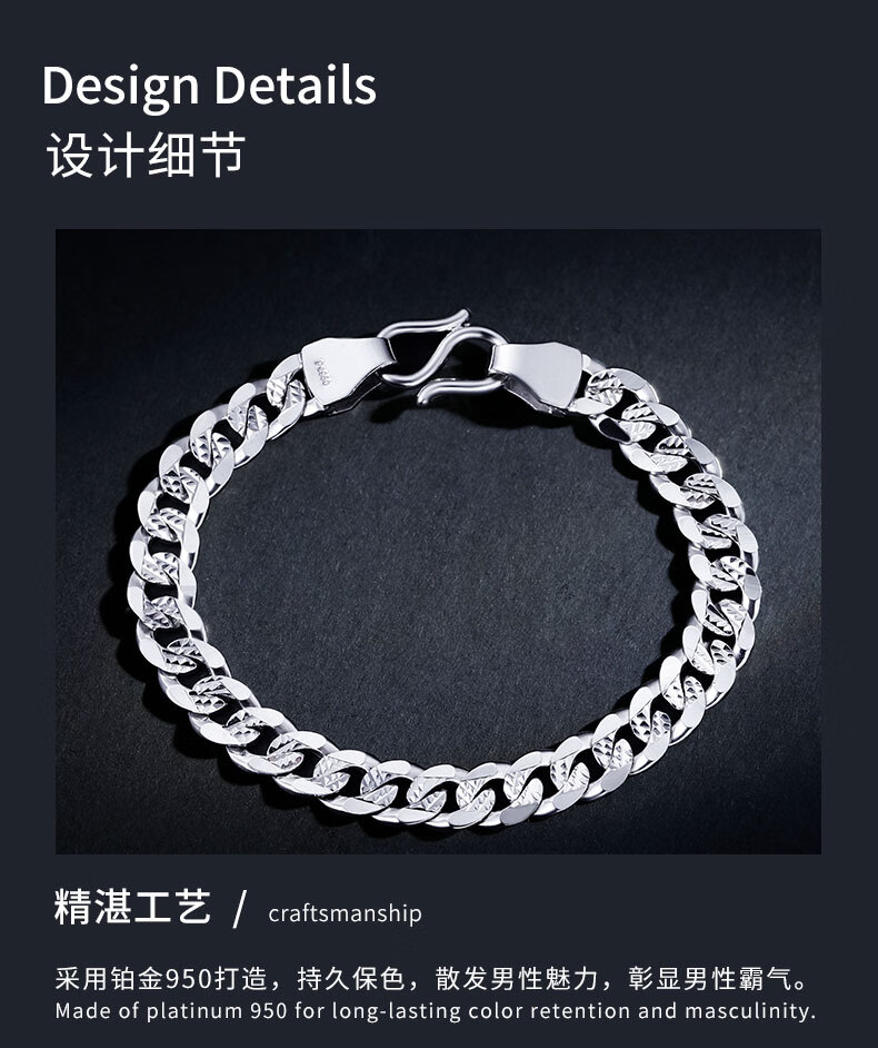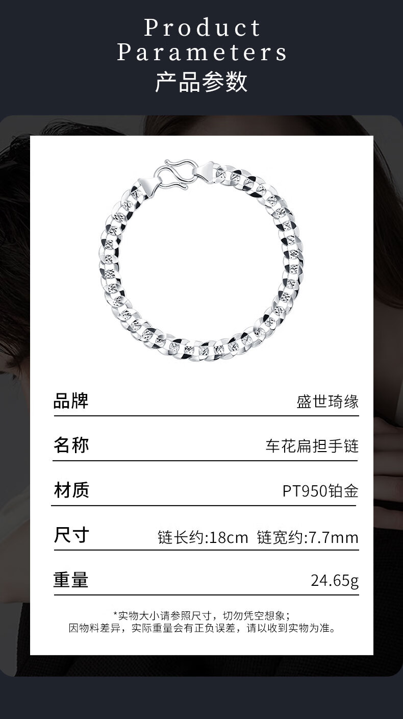 Shengshi Qiyuan platinum bracelet men's pt950 platinum bracelet men's Cuban bracelet men's trendy thick style high-end sense 18.5 cm 22.51 g width 6.6mm