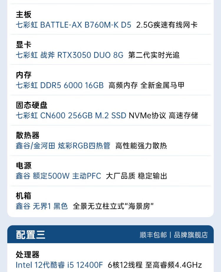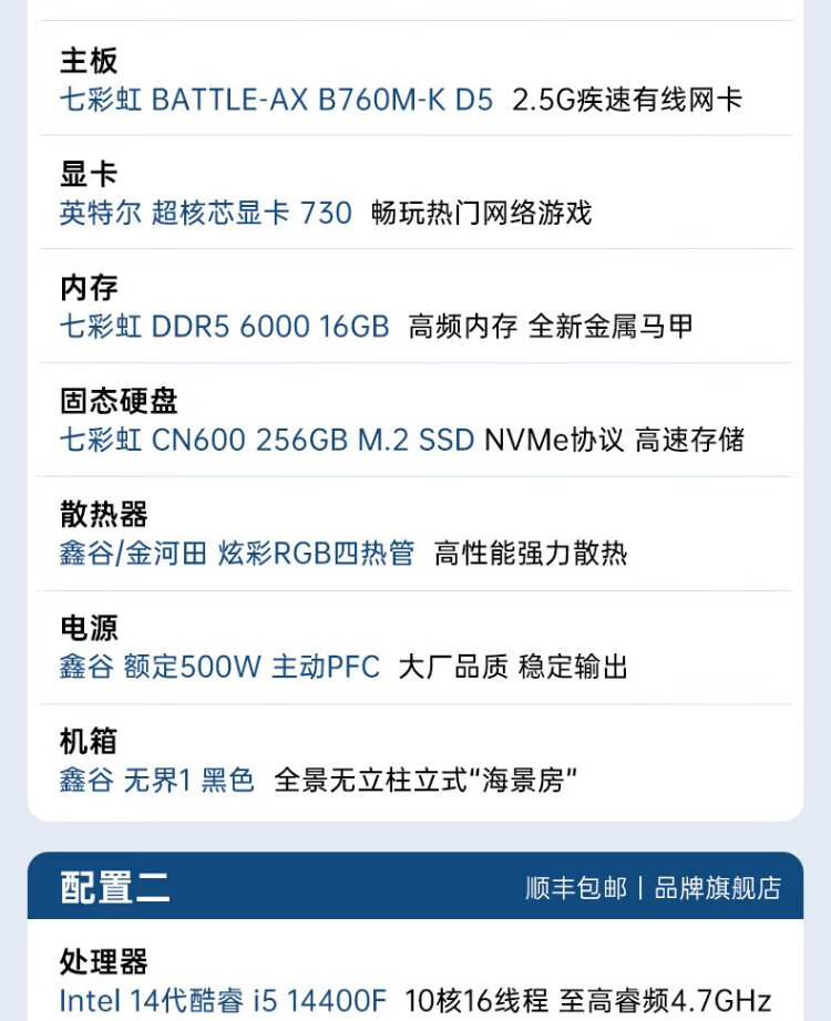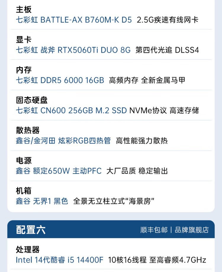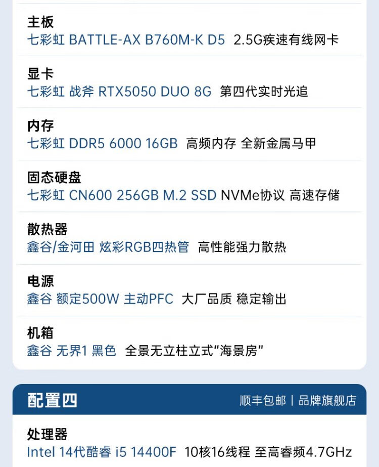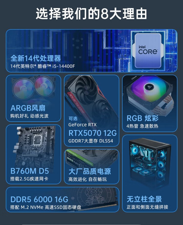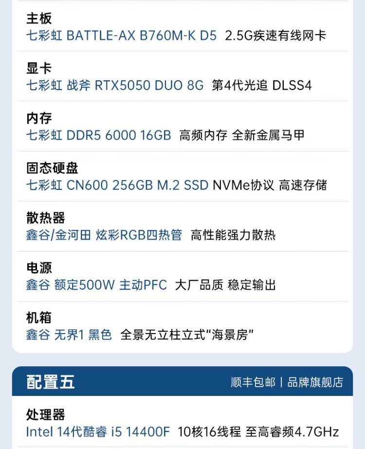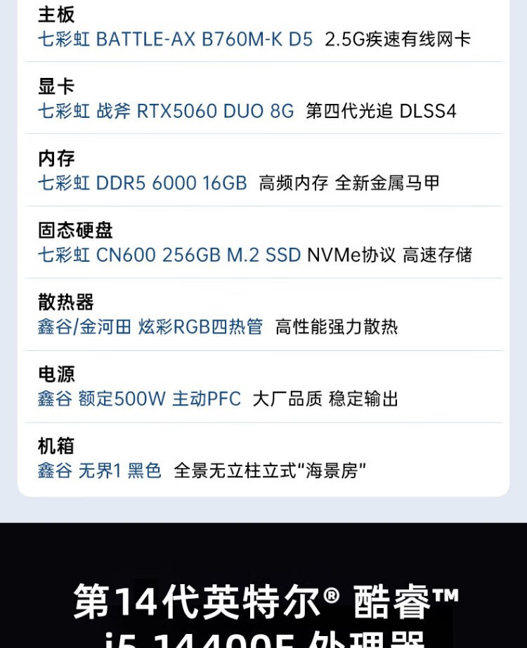 Colorful DDR5 computer host i5 14400F/RTX5070 RTX5060Ti 4060Ti live broadcast e-sports chicken game desktop DIY assembly computer complete machine with two丨i5 14400F丨RTX3050 8G
