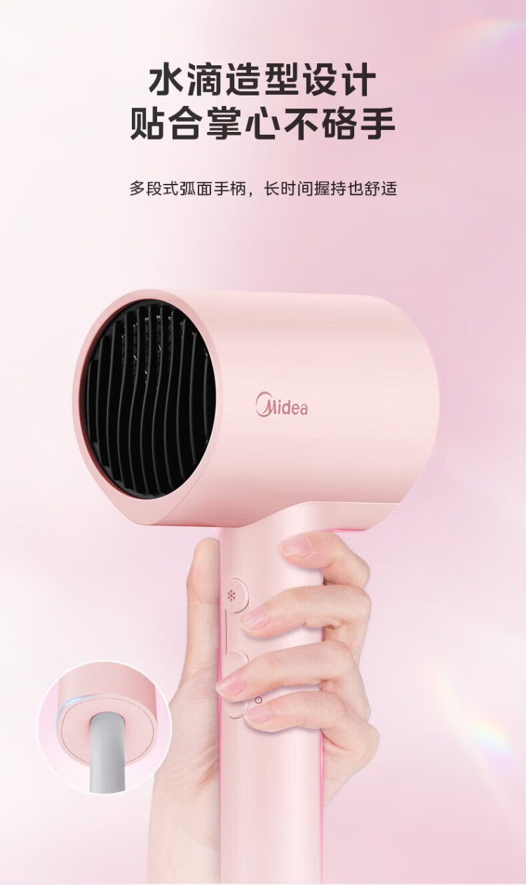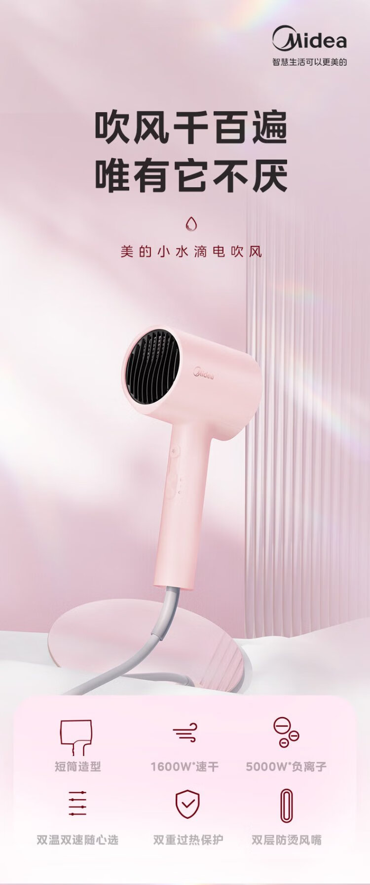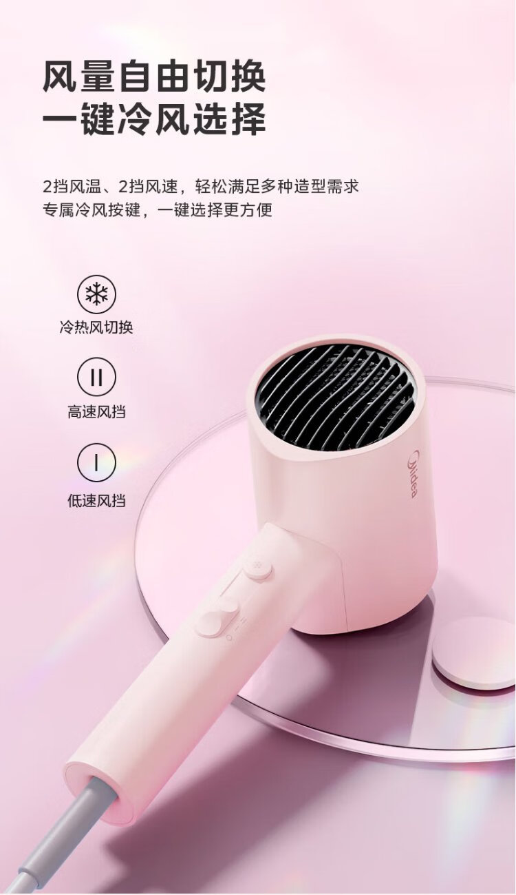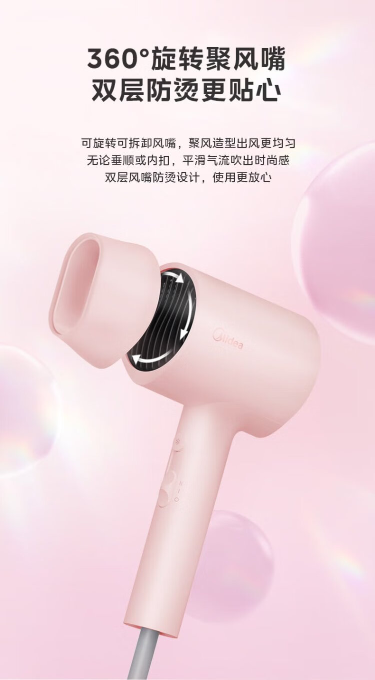 Midea Hair Dryer Home Portable Hair Dryer High Power Negative Ion Constant Temperature Hair Care Does Not Hurt Hair Hair Dryer Student Dormitory Hotel Available Holiday Birthday Gift 1600W Quick Drying 50 Million Negative Ions - Xiwu Powder