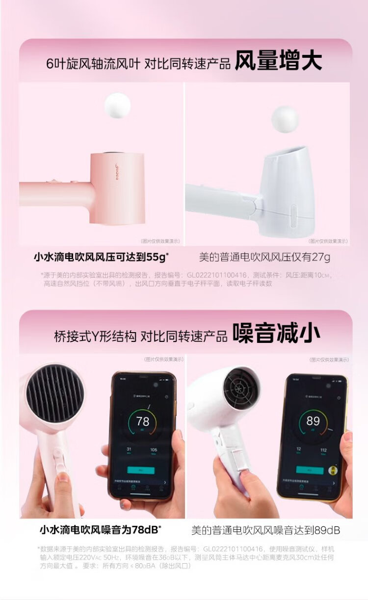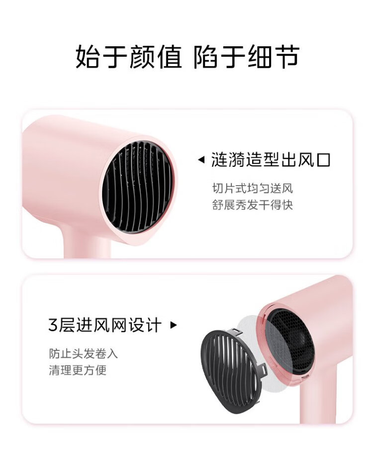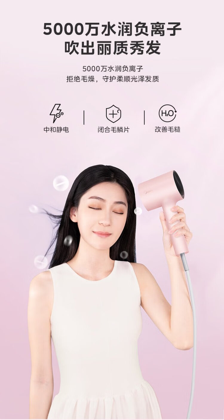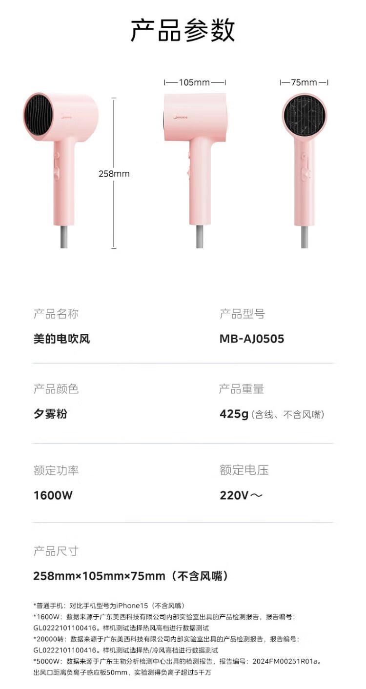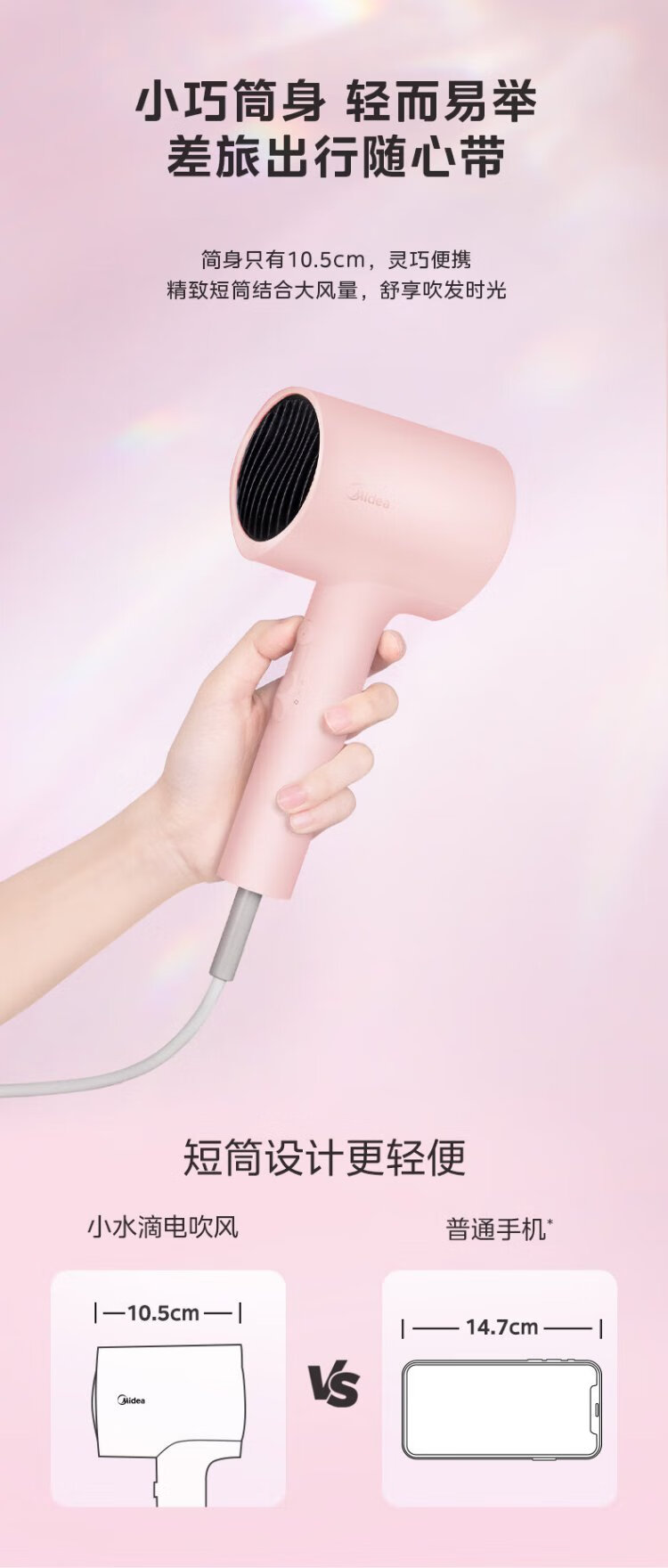 Midea Hair Dryer Home Portable Hair Dryer High Power Negative Ion Constant Temperature Hair Care Does Not Hurt Hair Hair Dryer Student Dormitory Hotel Available Holiday Birthday Gift 1600W Quick Drying 50 Million Negative Ions - Xiwu Powder