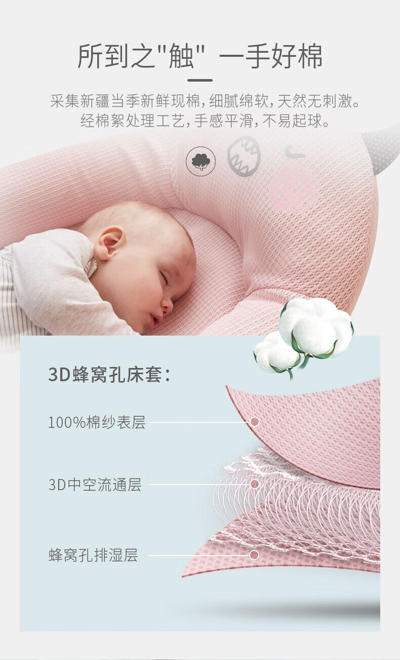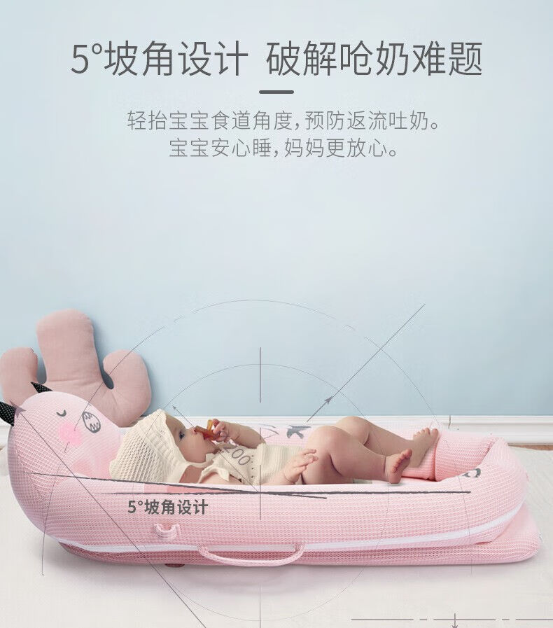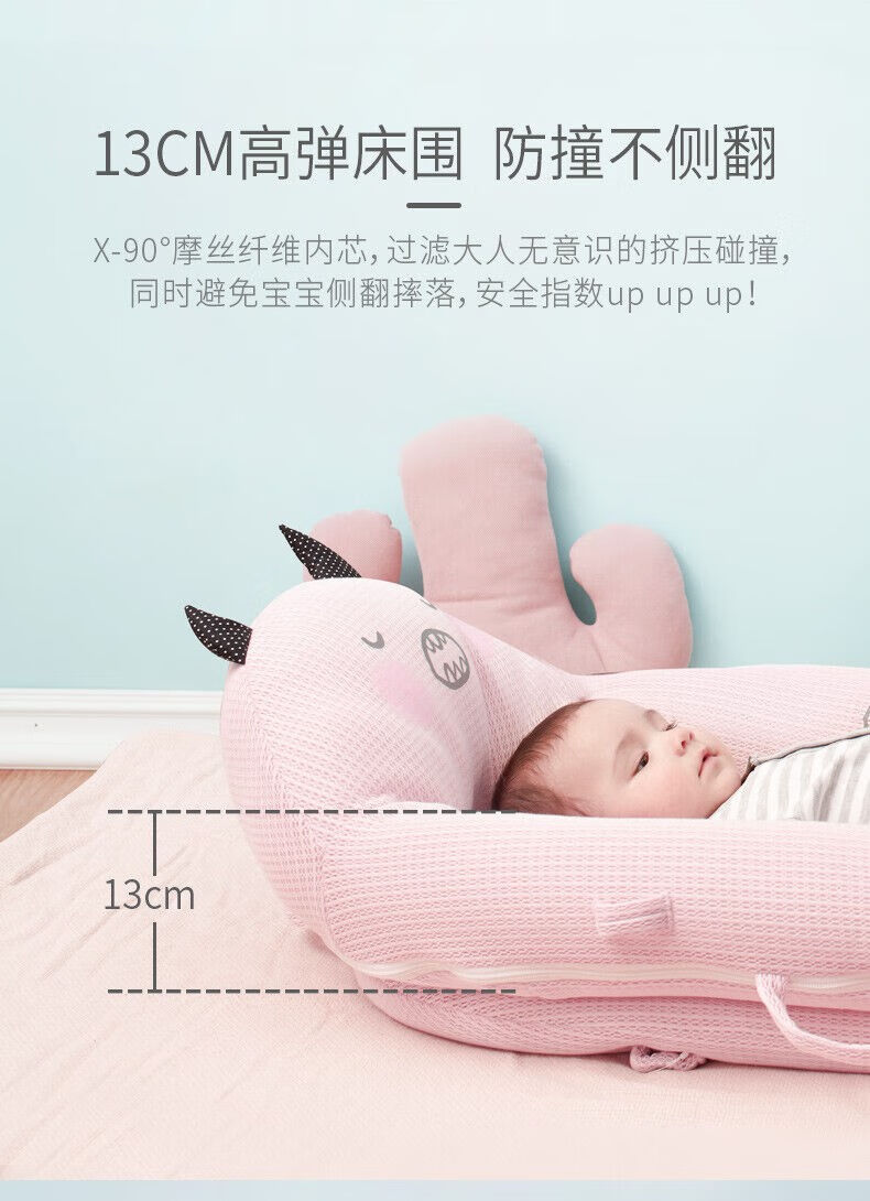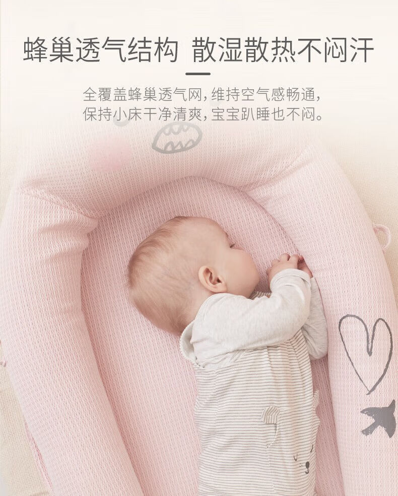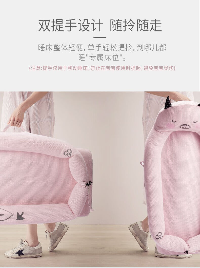 Hug bear crib mid-bed baby newborn portable anti-jump bionic bed bb sleeping anti-pressure bed light cherry powder