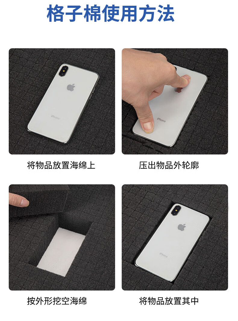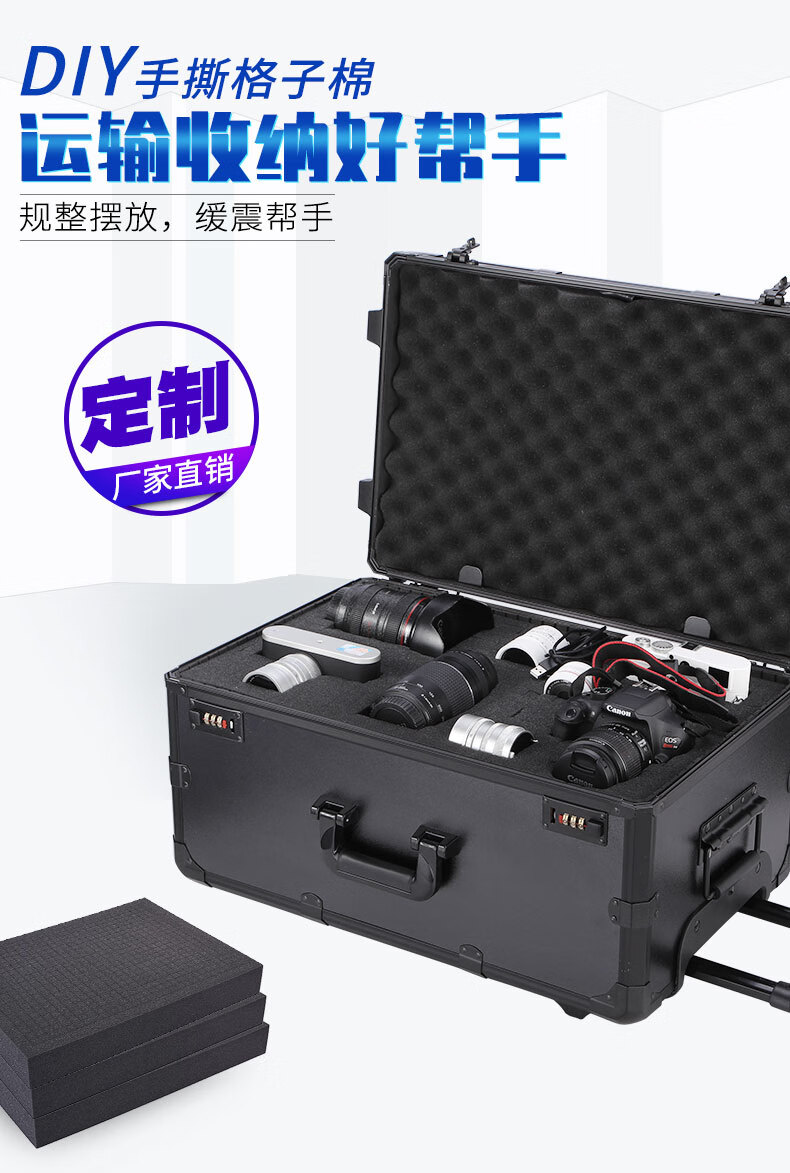 Huachenzhi hand-shred sponge water-absorbent high-density shock-proof plaid cotton tool box hand-shred sponge photography camera lining filled cotton black blasted plaid cotton 465*340*80mm
