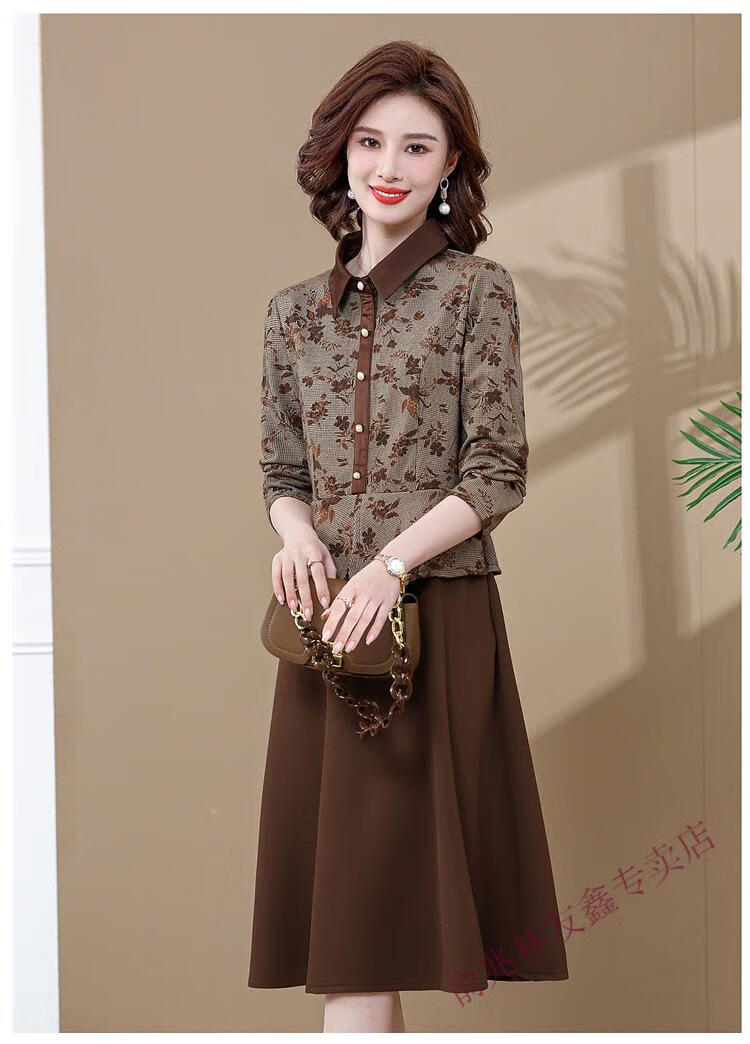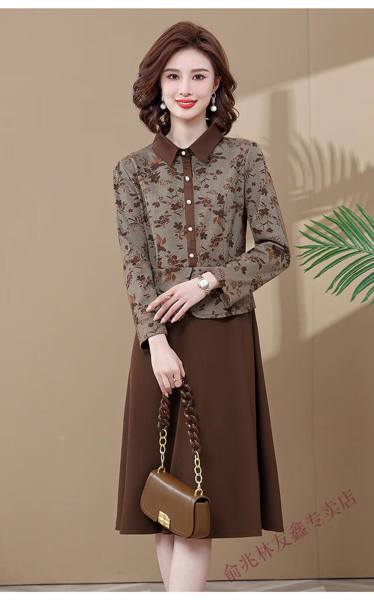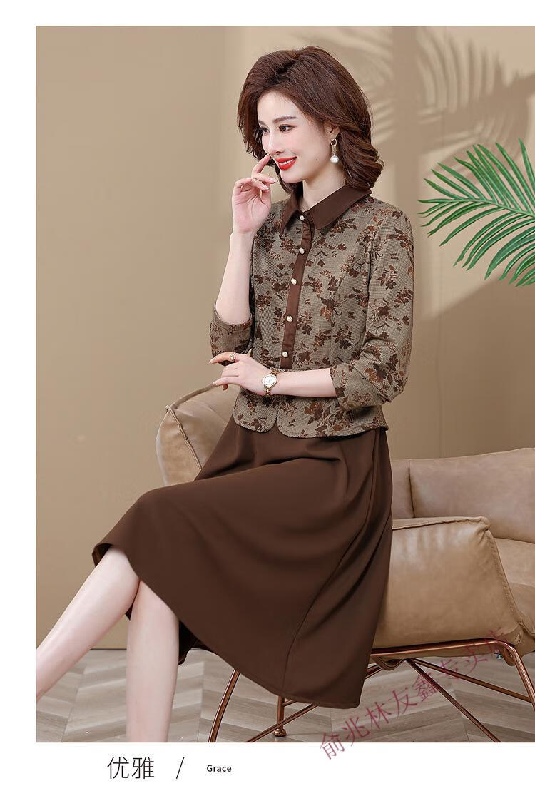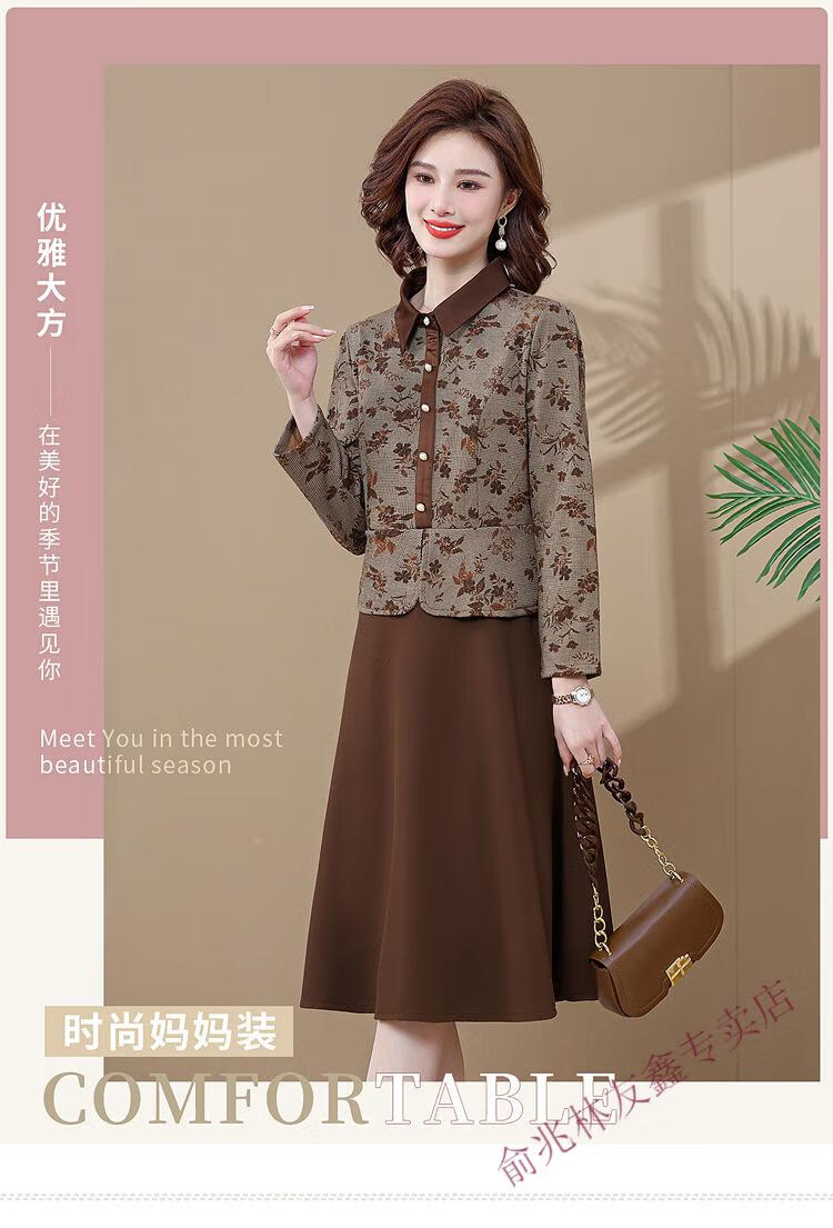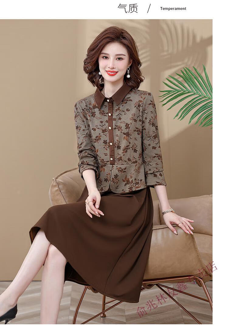 Yu Zhaolin (YUZHAOLIN) brand mother's spring and autumn fake two-piece dress, wide and stylish, new middle-aged and elderly women's long-sleeved shirt collar, coffee color XXL recommended 105-122 Jin Jin equals 0.5 kg