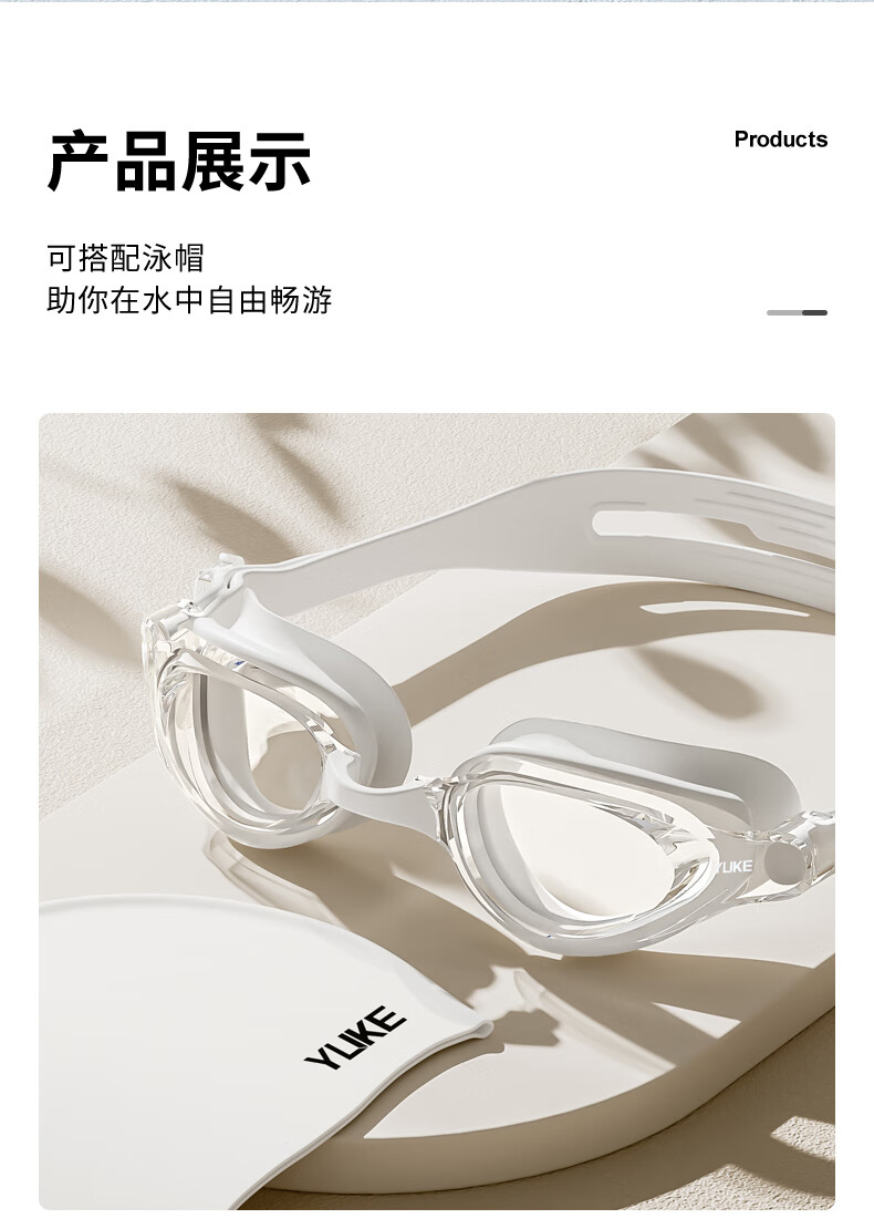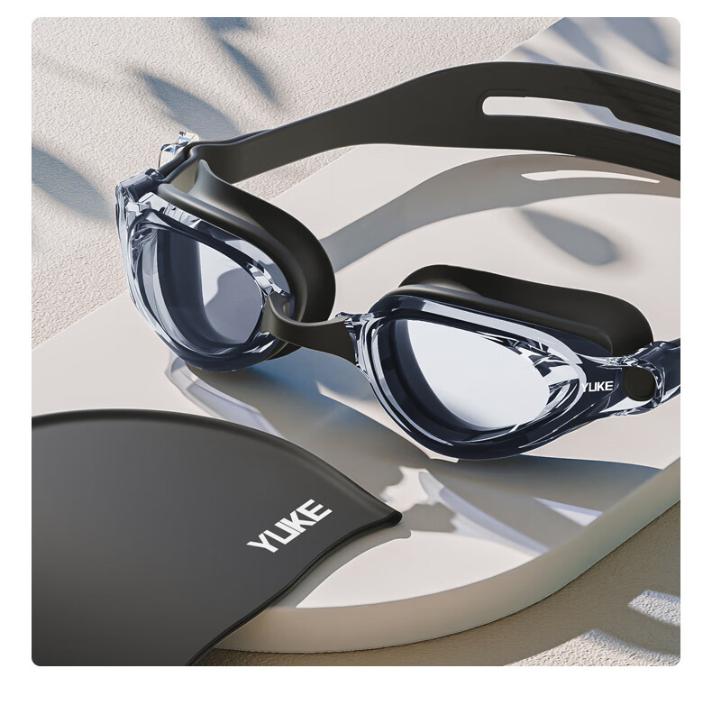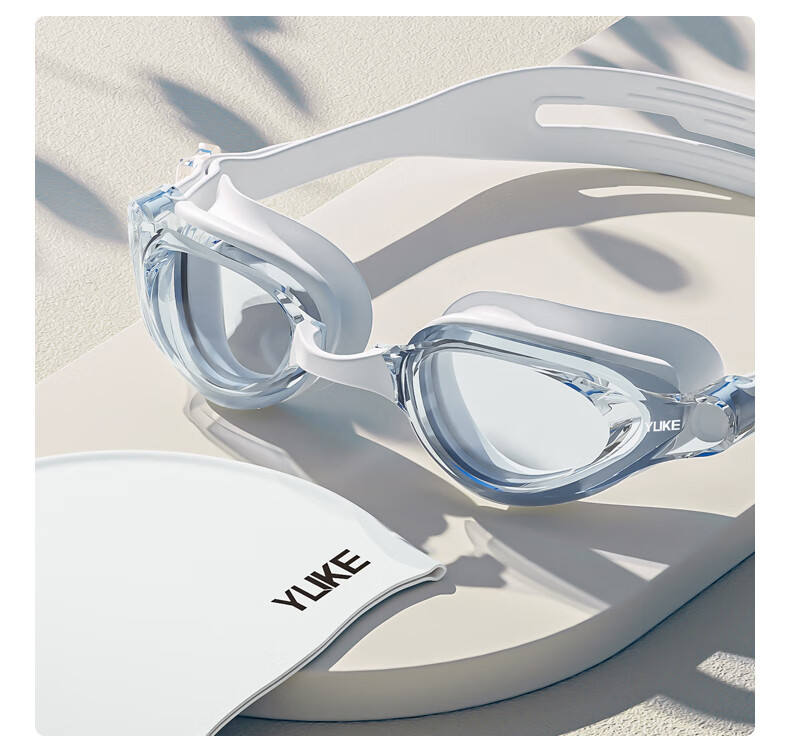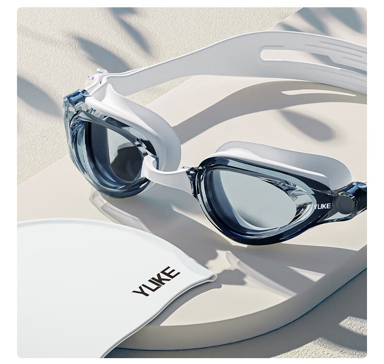 Yuke swimming goggles high-definition anti-fog waterproof myopia degree men and women professional swimming goggles diving equipment swimming goggles and swimming cap set light blue and white with nose clip earplugs myopia 300 degrees