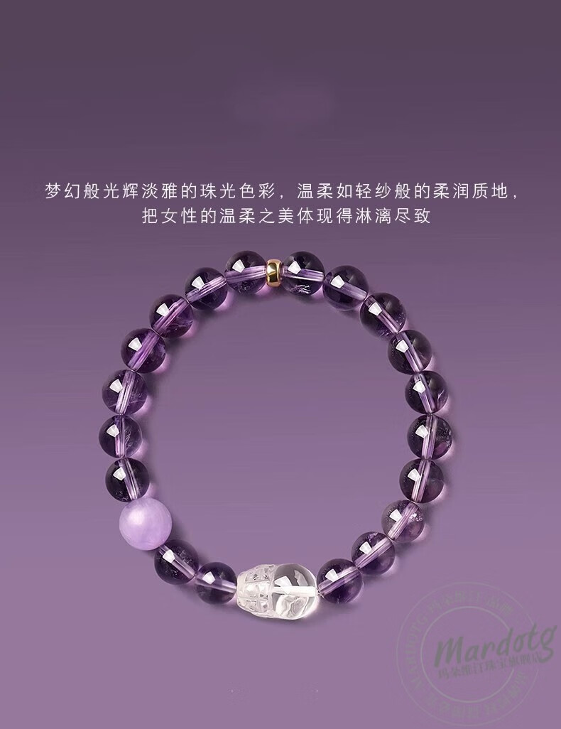 MARDOTG Brazilian Amethyst Bracelet Women's White Crystal Pixiu Bracelet Jewelry Gift for Girlfriend 8mm Amethyst + White Crystal Pixiu